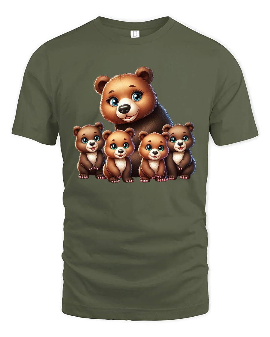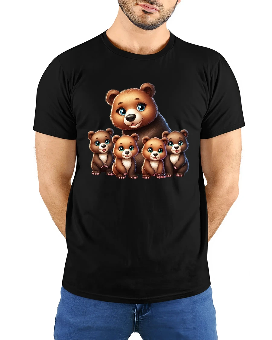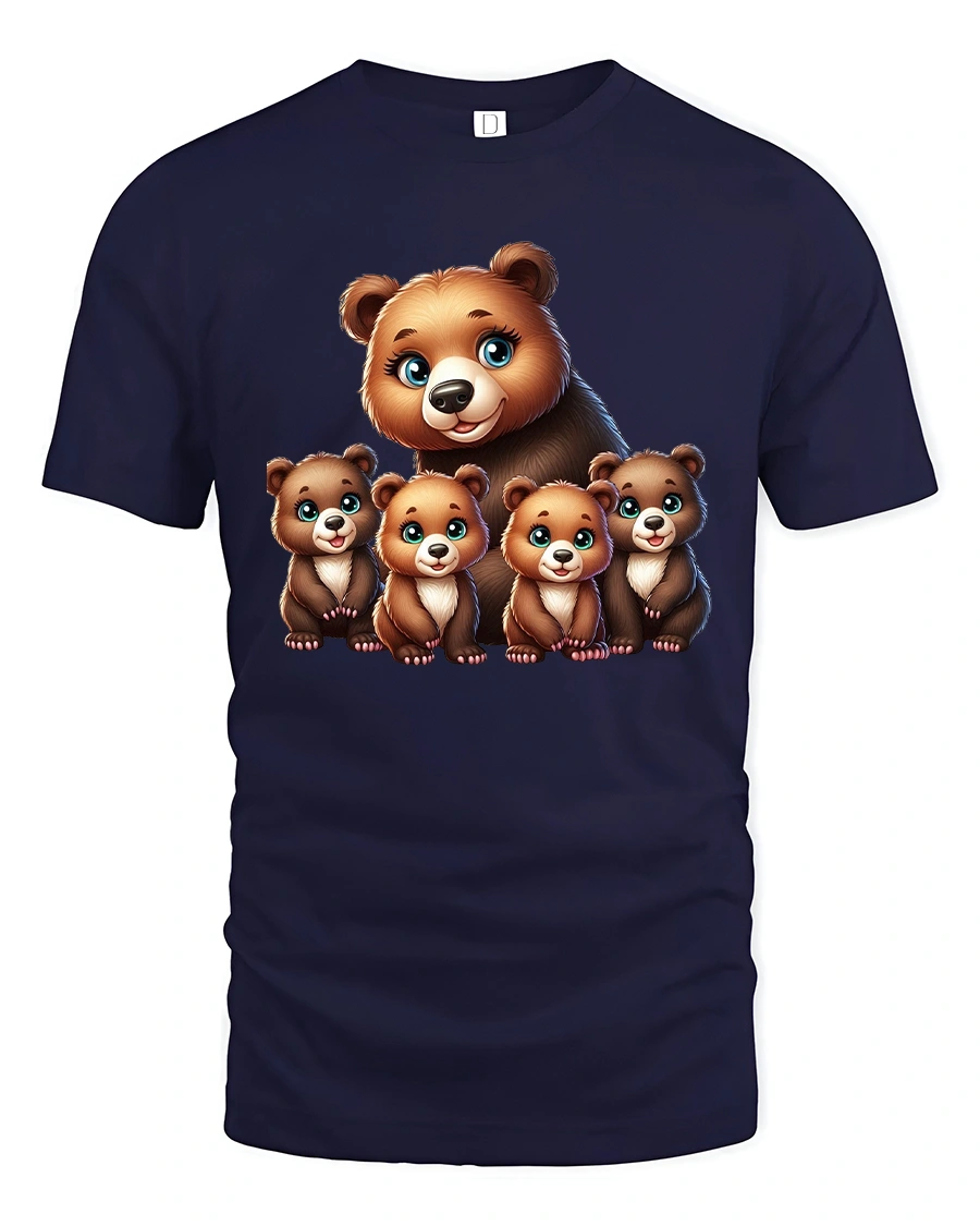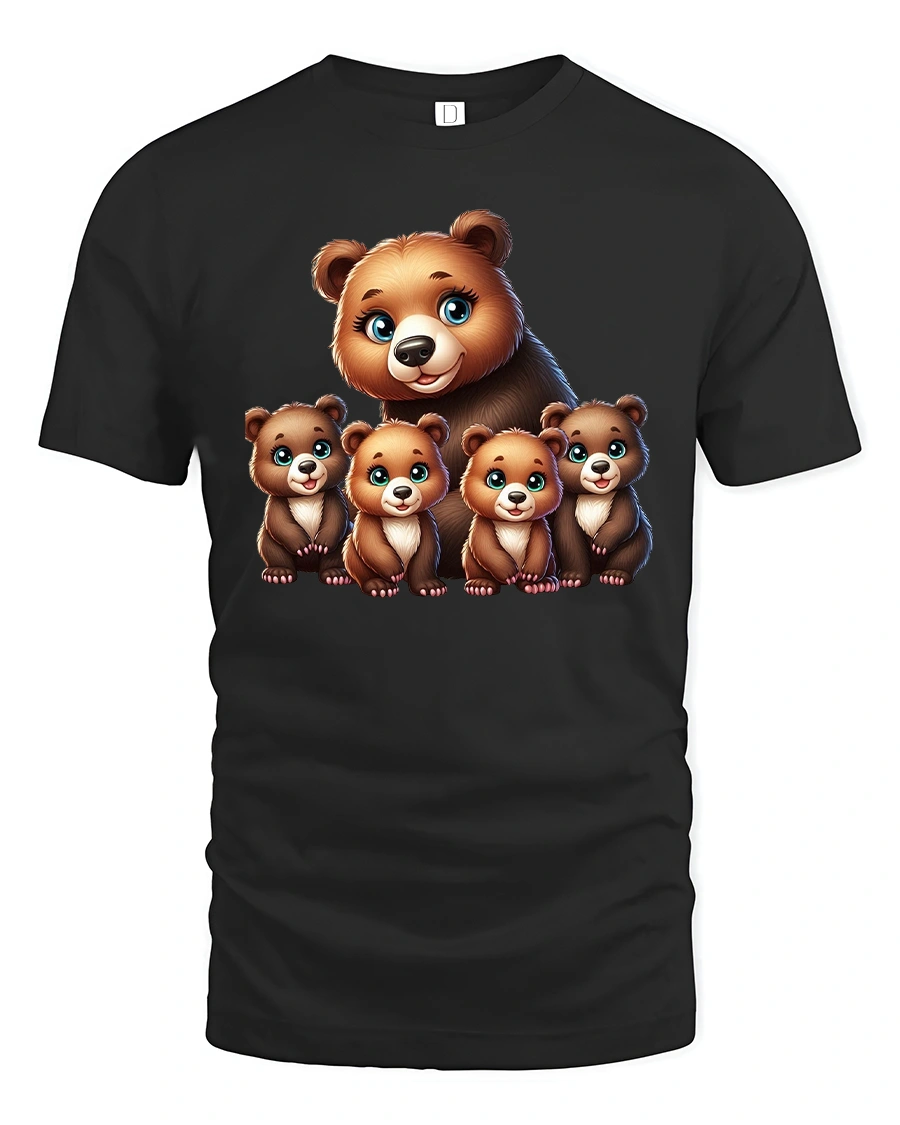 Cute Bear Family Illustration Graphic T Shirt showcases a heartwarming bear parent surrounded by adorable baby cubs in a charming cartoon style.