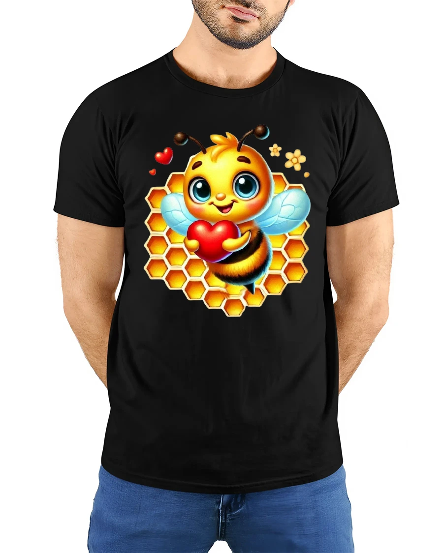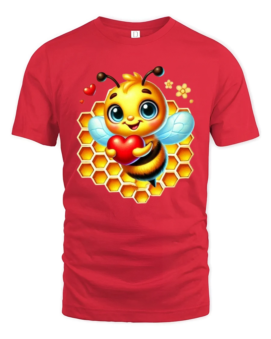 Made from soft, breathable cotton, this t-shirt offers comfort and style for any occasion. The vivid, high-quality print ensures the colors stay bright and beautiful through many washes, keeping your lovable bee as happy as day one. Perfect for casual outings, Valentine’s Day, or everyday wear when you want to spread joy.