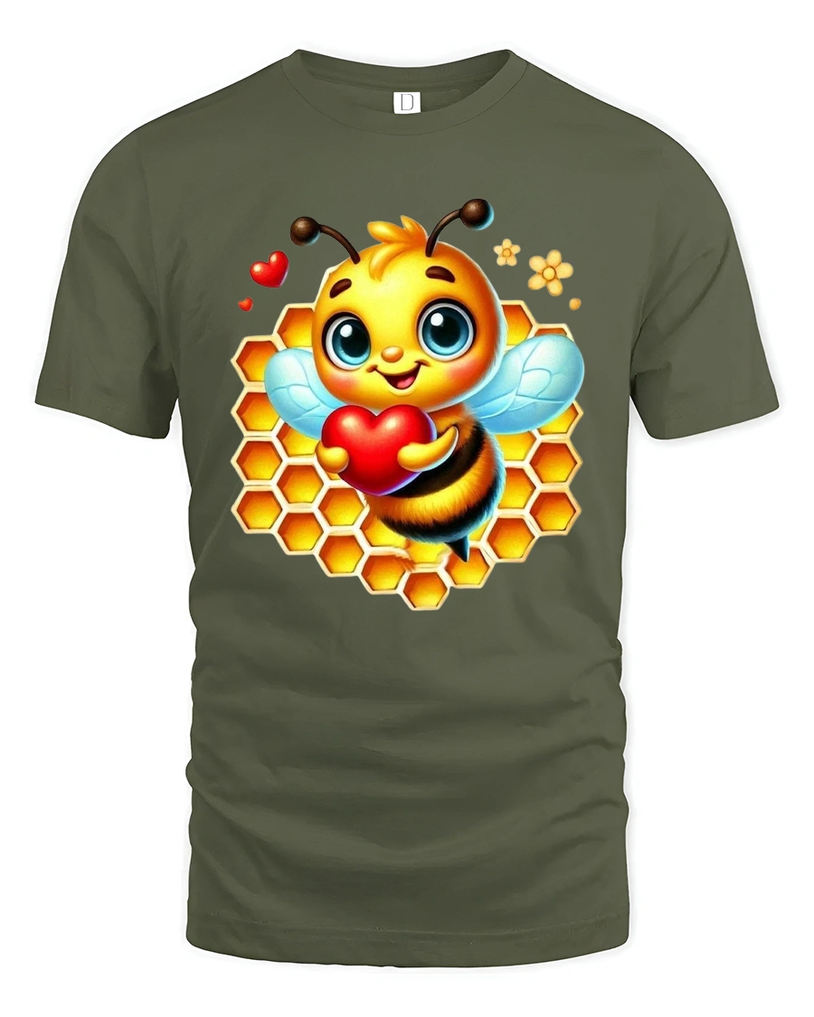 Cute Bee Holding Heart Honeycomb Love Graphic T-Shirt is the perfect blend of sweetness and charm. Featuring an adorable bee with bright wings holding a red heart against a golden honeycomb background, this cheerful design celebrates love, positivity, and good vibes. It’s the ideal tee for bee lovers, romantics, or anyone who enjoys cute and colorful art.