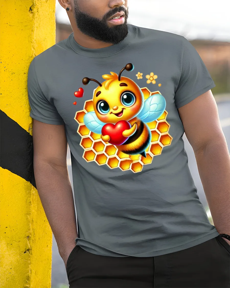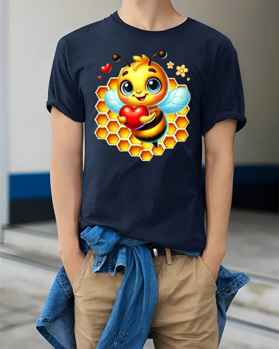 The Cute Bee Holding Heart Honeycomb Love Graphic T-Shirt makes a thoughtful gift for friends, couples, or anyone who loves nature and adorable designs. Pair it with jeans, shorts, or a jacket for a warm and playful look that truly buzzes with love.