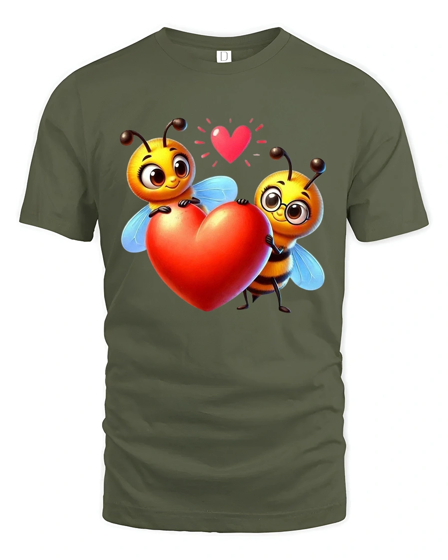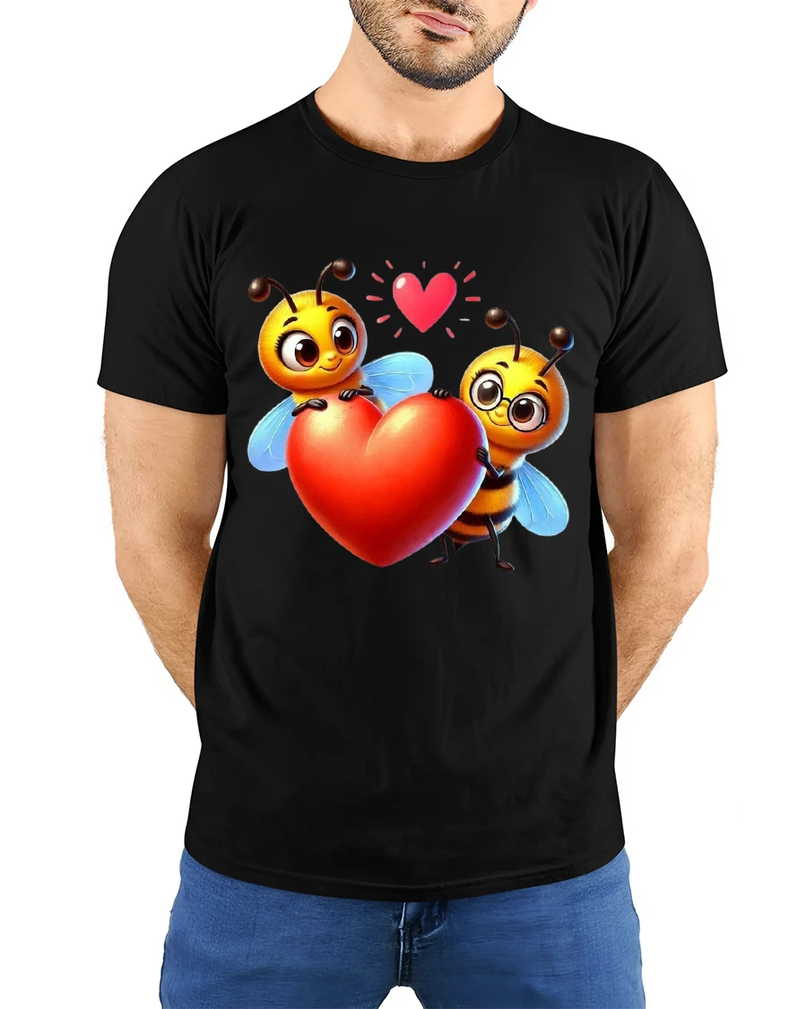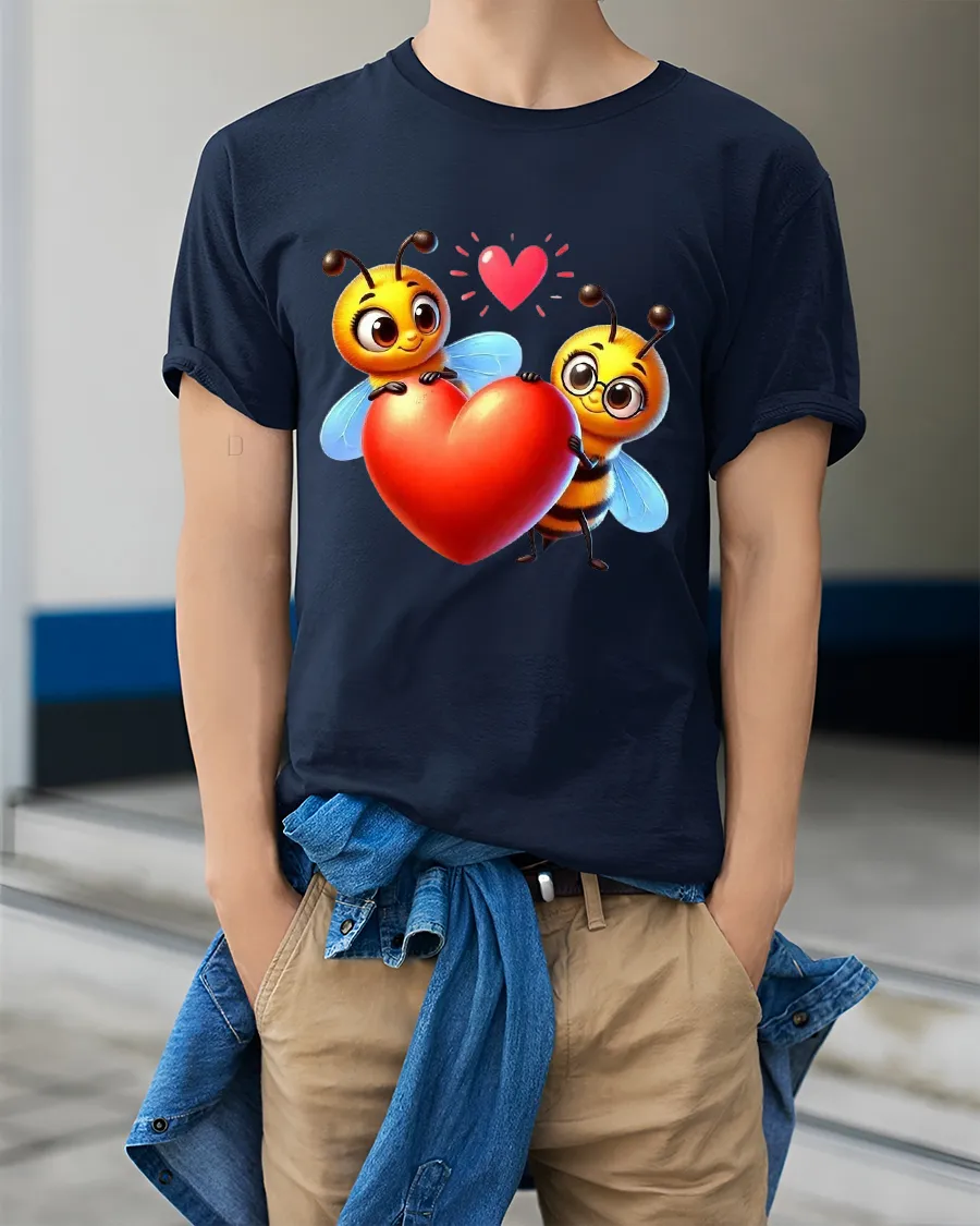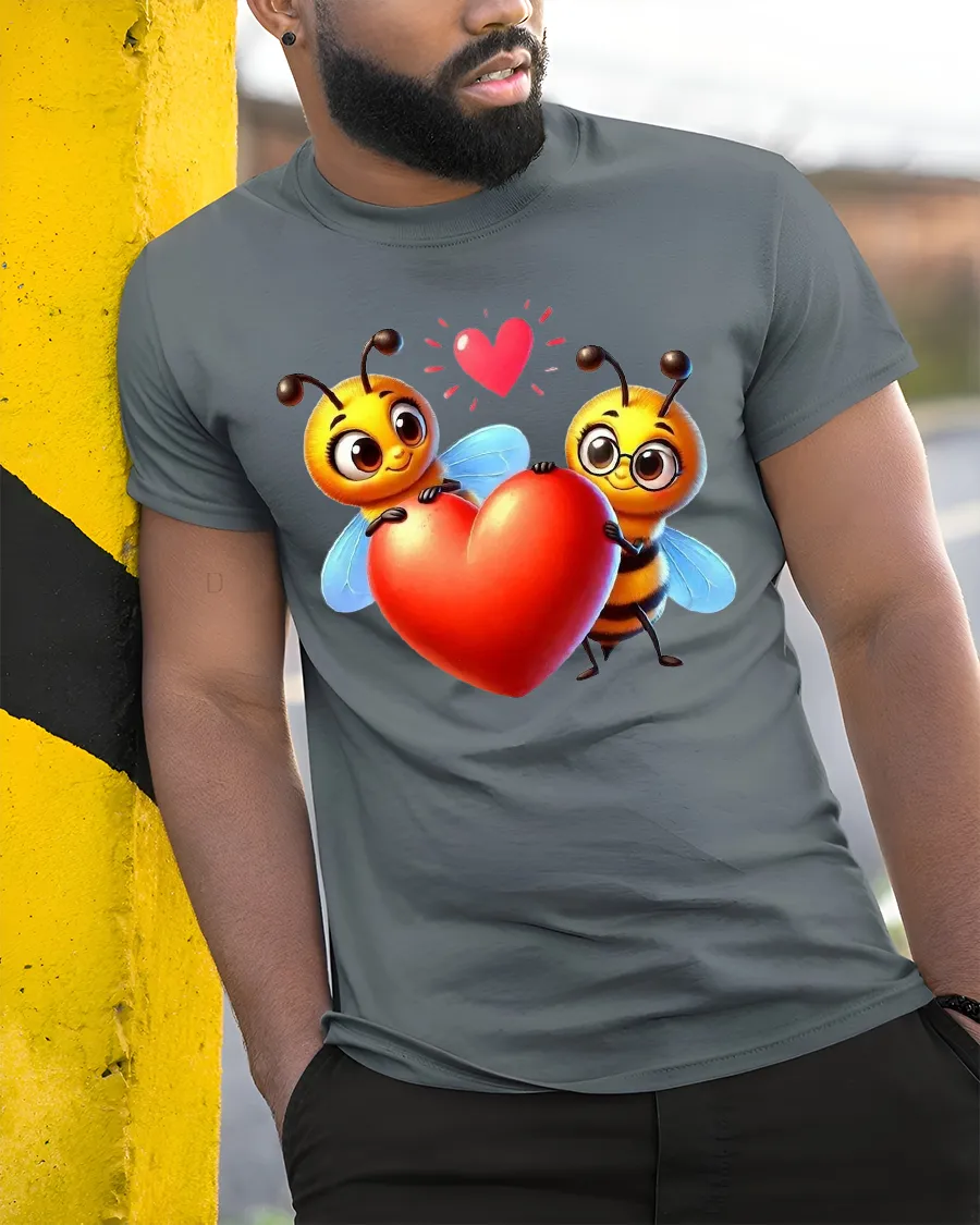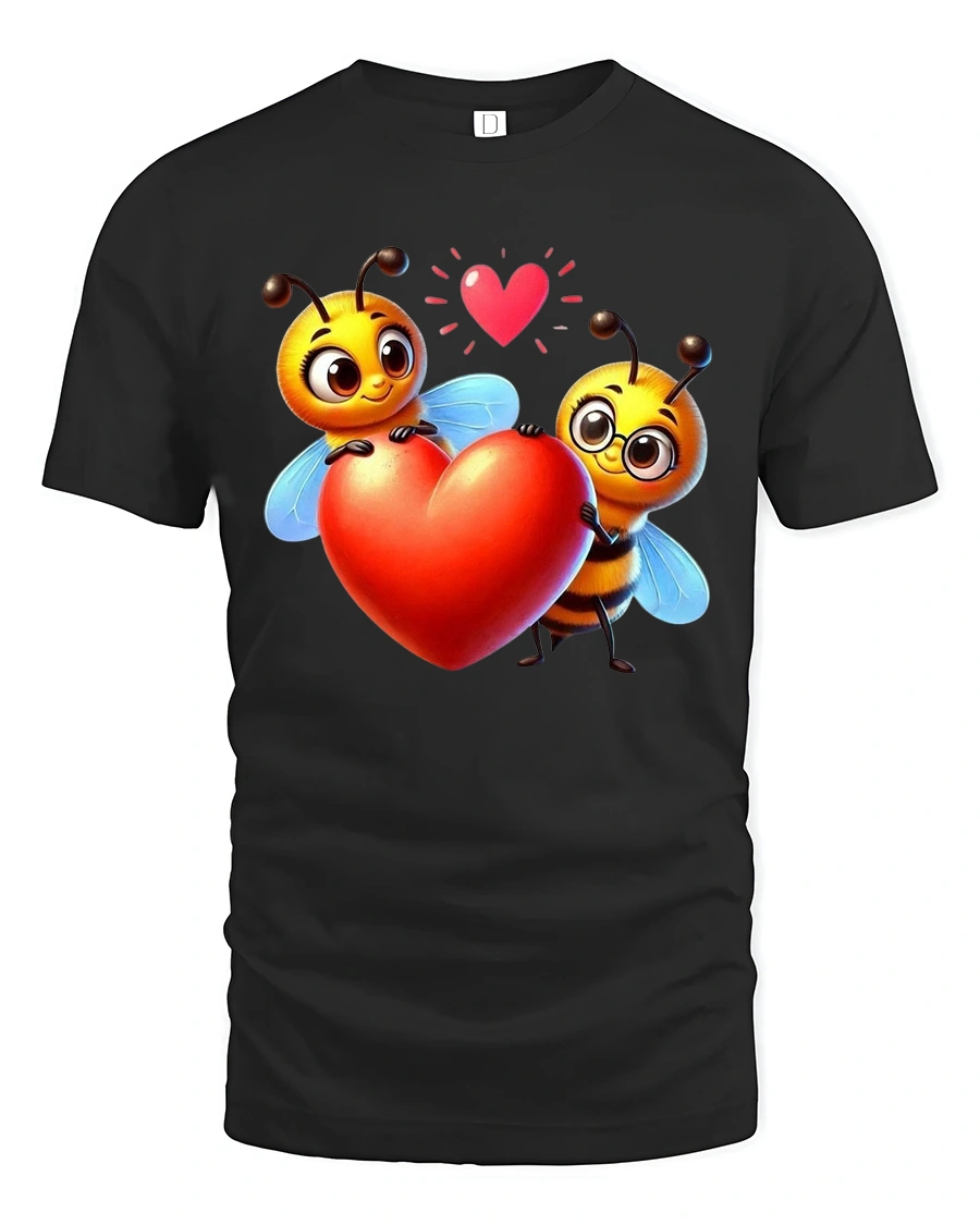 Cute Bee Love Tshirt With Heart Holding Cartoon Illustration brings warmth happiness and playful romance into a charming wearable design.