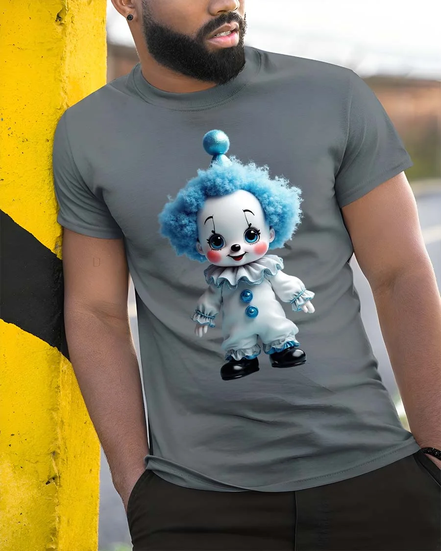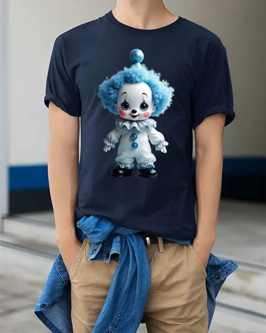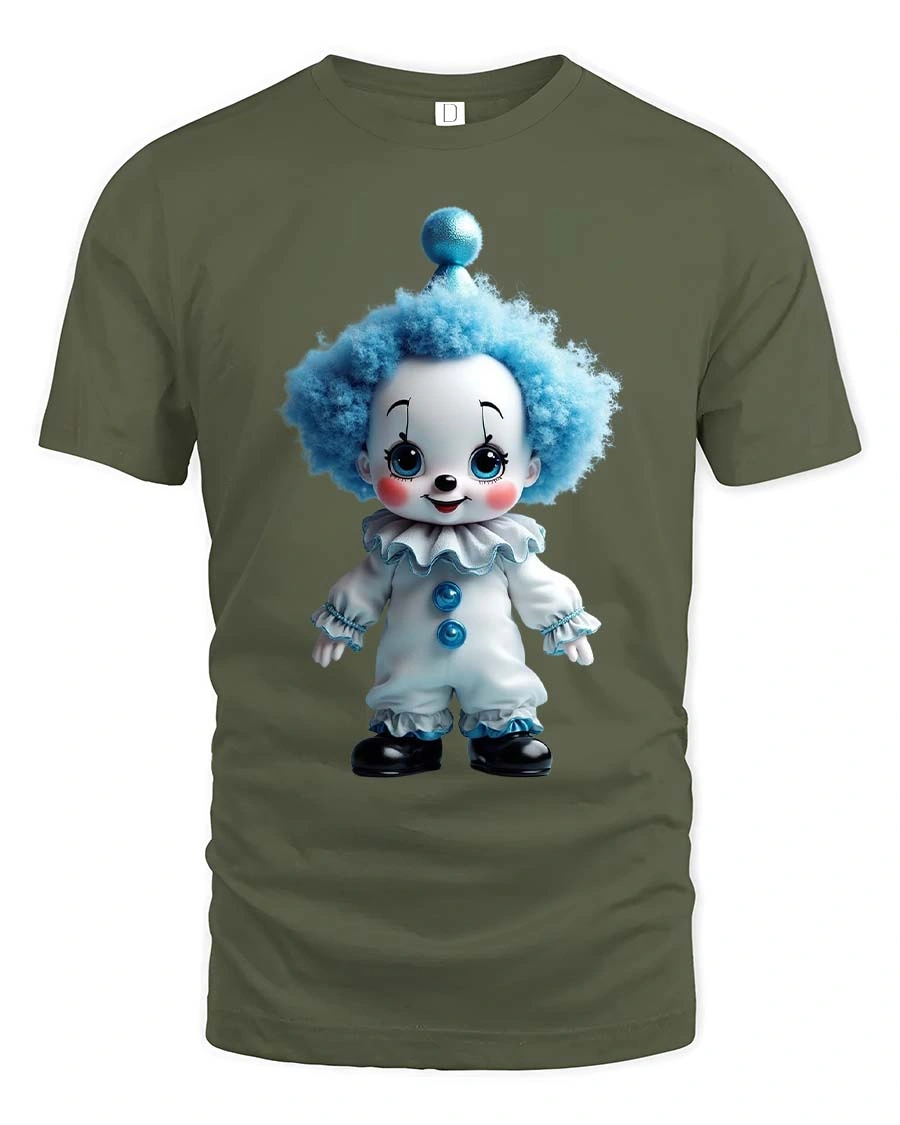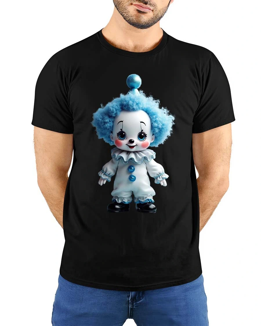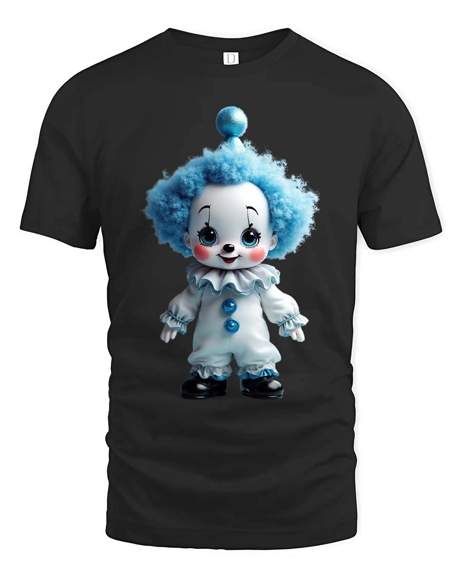 Cute Blue Clown Doll Adorable Cartoon Style Graphic Tshirt features a charming character design filled with playful personality and delightful artistic detail.