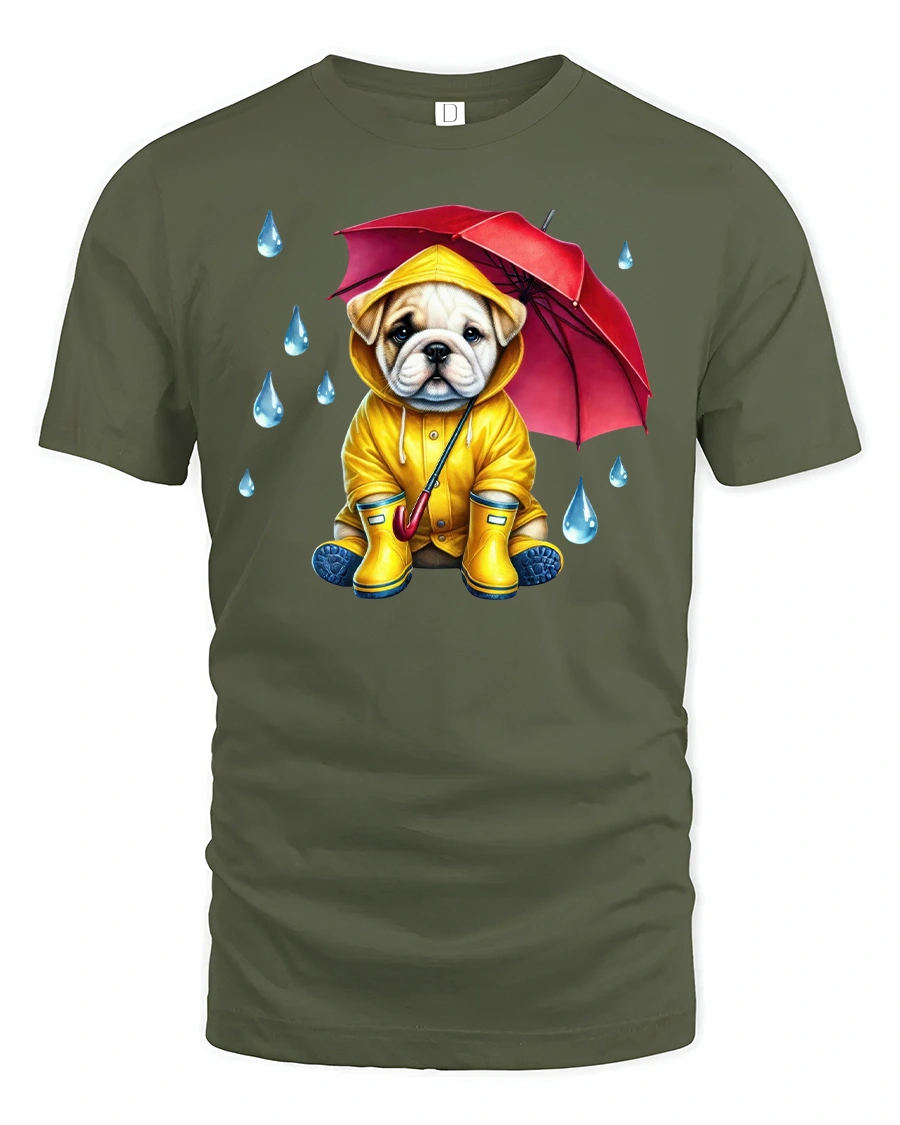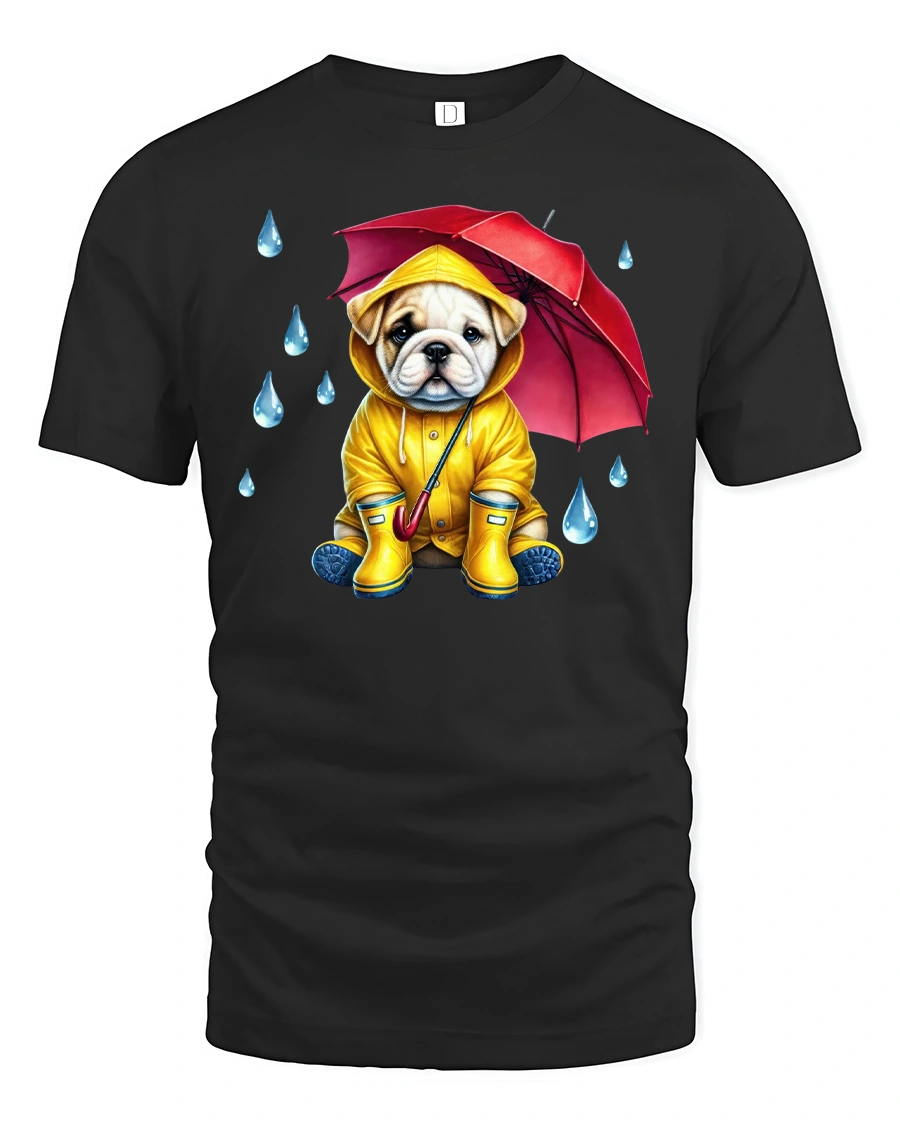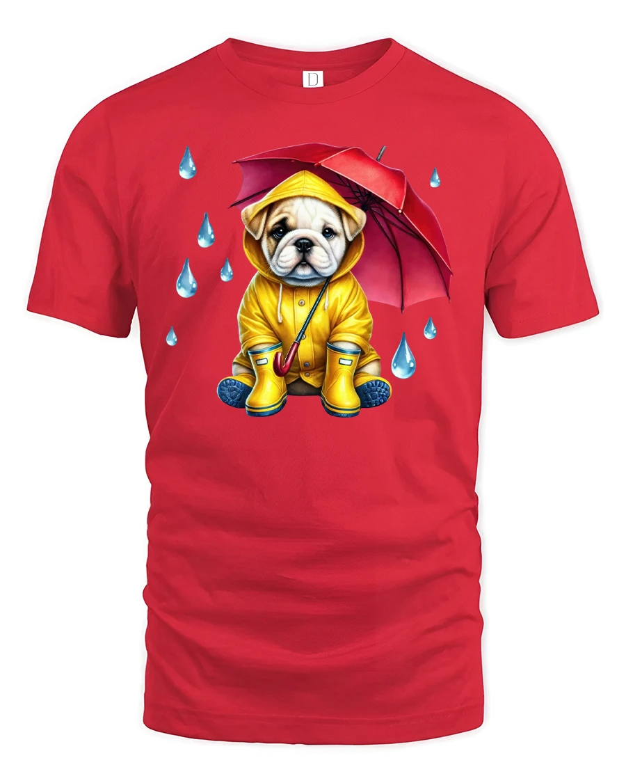 Cute Bulldog Raincoat Umbrella Printed Tee For Dog Fans is the perfect choice for anyone who adores puppies and loves fun, eye-catching fashion. Featuring a sweet bulldog dressed in a bright yellow raincoat with a red umbrella, this design is both charming and playful, making it a great conversation starter.