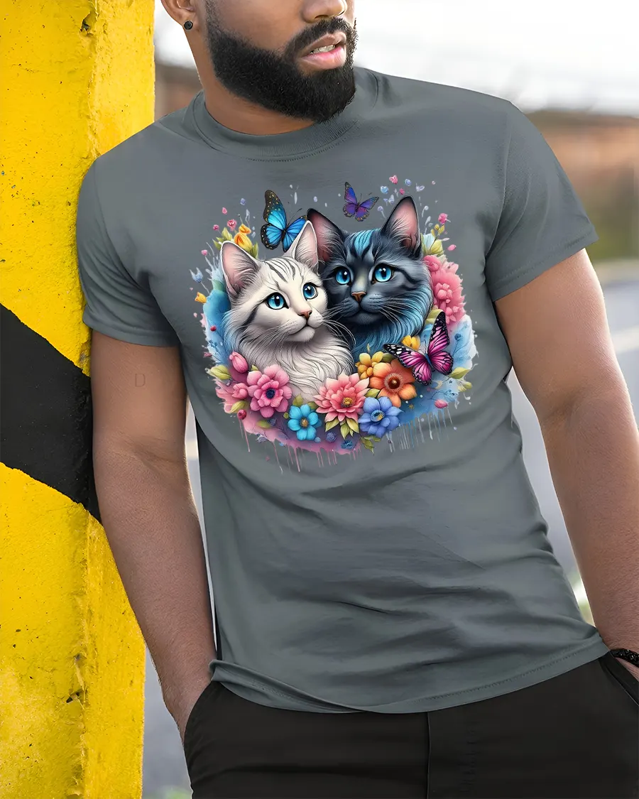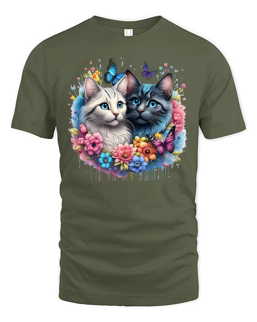 Celebrate your love for furry friends with the Cute Cat Lovers Tee with Flowers and Butterfly Art. Featuring two adorable cats surrounded by vibrant flowers and colorful butterflies, this t-shirt captures the beauty and charm of feline companionship. With its bright and cheerful design, it’s the perfect way to show off your love for cats in a stylish and artistic way.