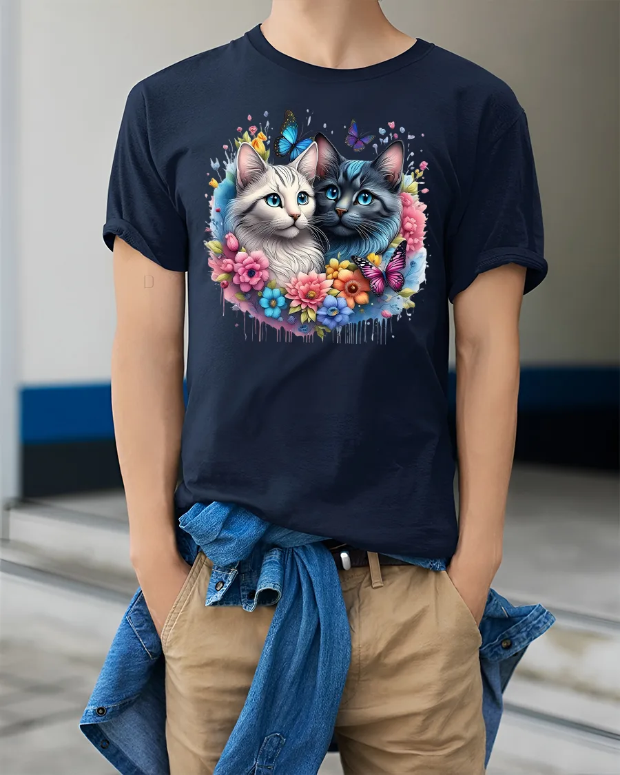 The Cute Cat Lovers Tee with Flowers and Butterfly Art also makes a thoughtful gift for cat moms, pet lovers, or anyone who appreciates cute and colorful designs. Pair it with jeans or shorts for a casual look that spreads positivity and love wherever you go.