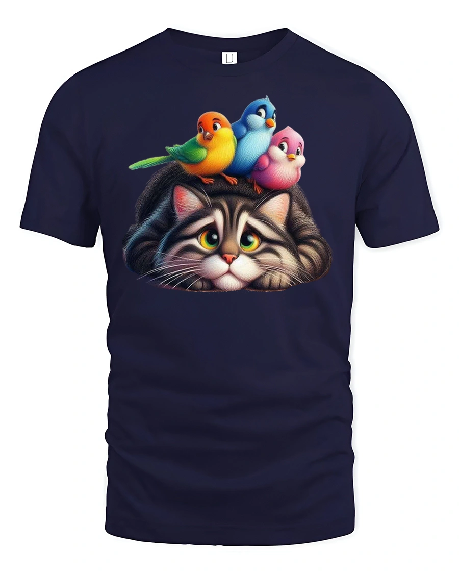 Cute Cat With Colorful Birds On Head Cartoon Graphic Tee also makes a thoughtful gift choice for animal lovers.