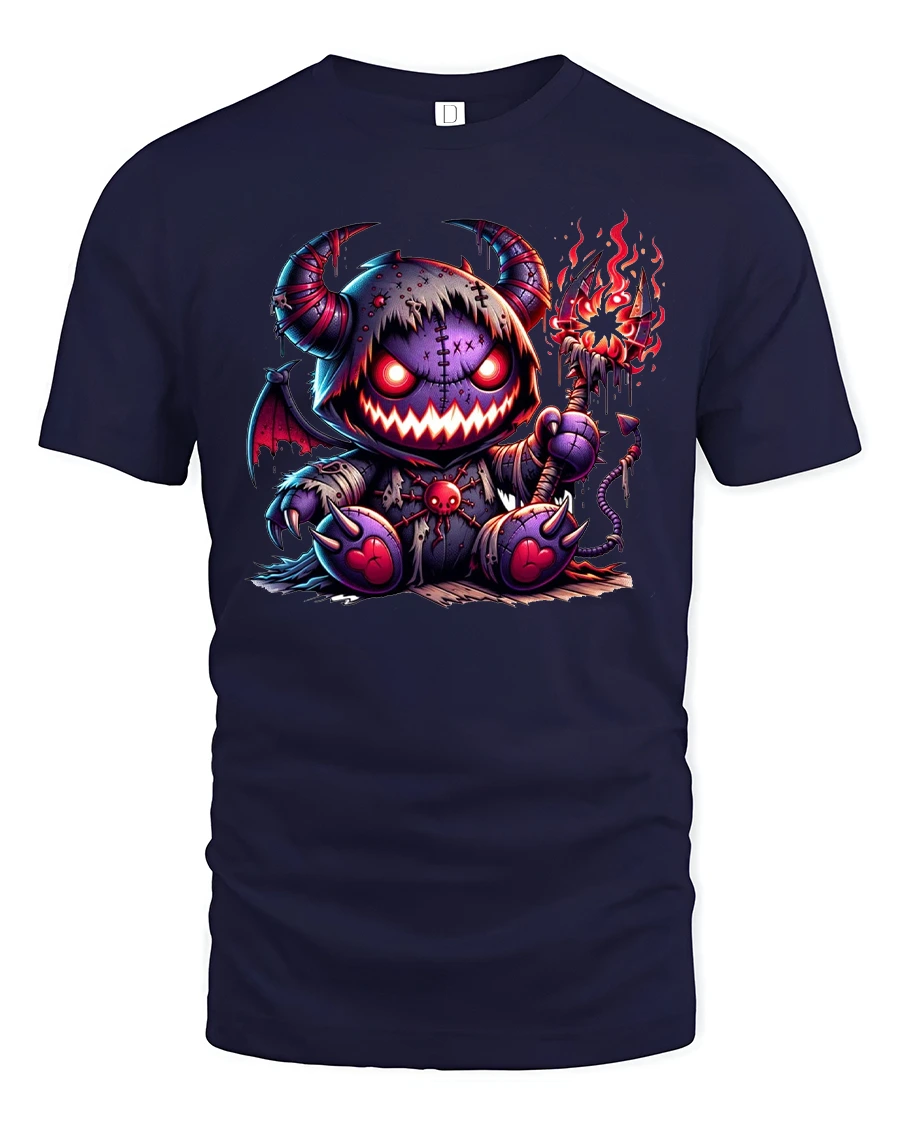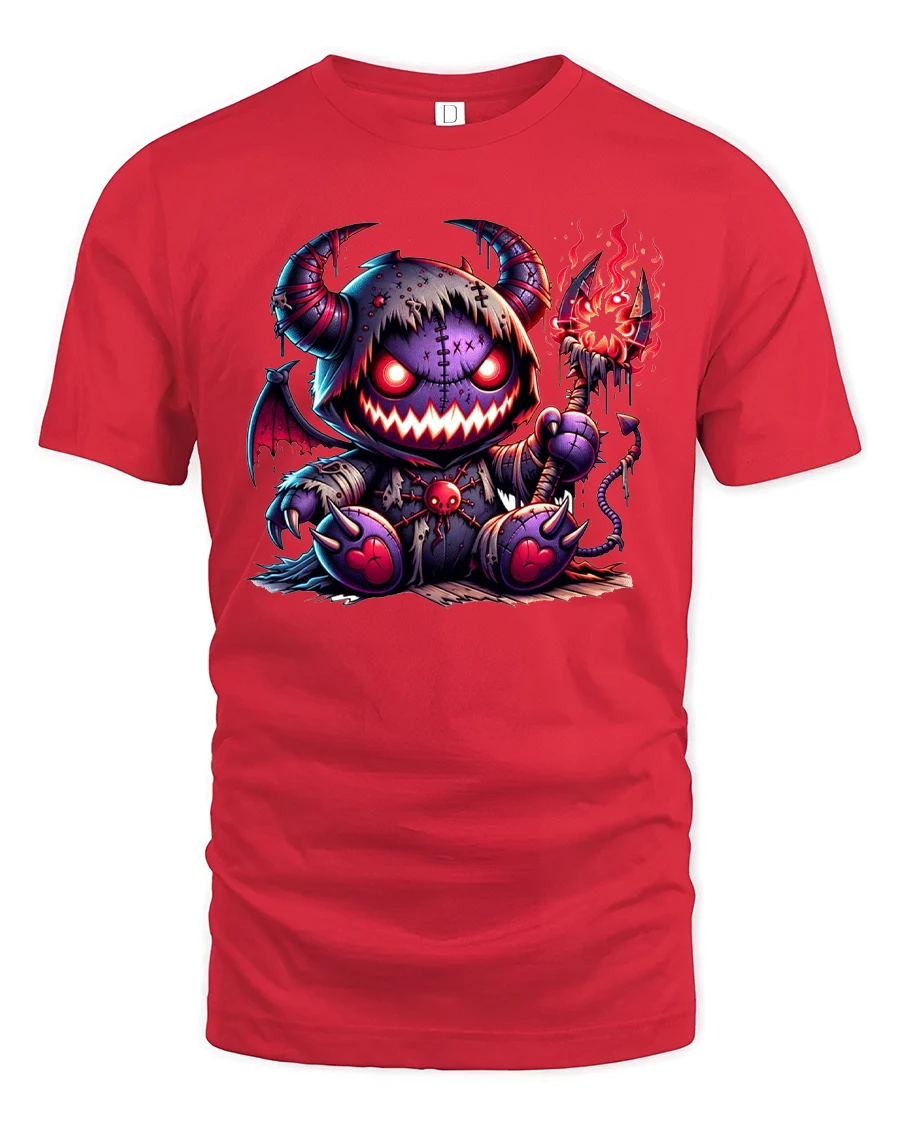Cute Demon Plush Toy Scary Funny Art T-Shirt blends dark humor and adorable chaos in one unique design.