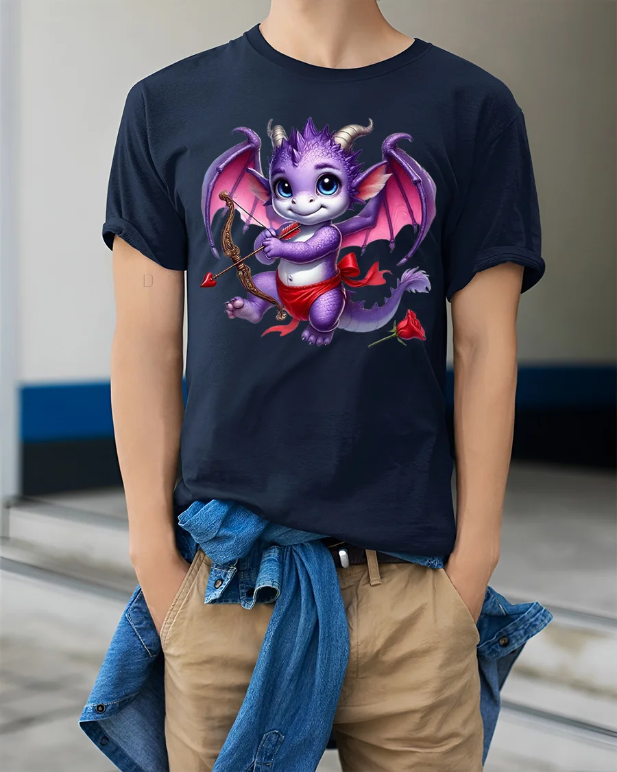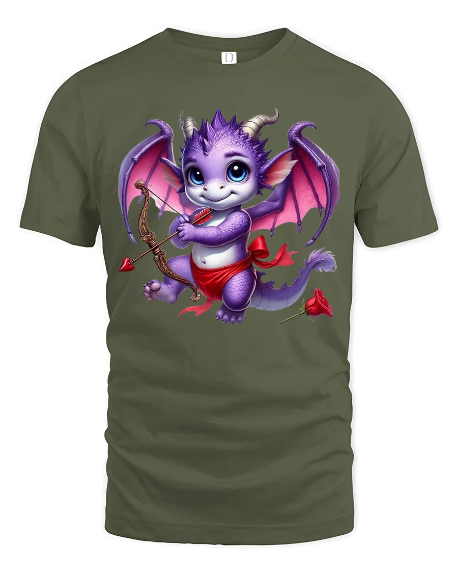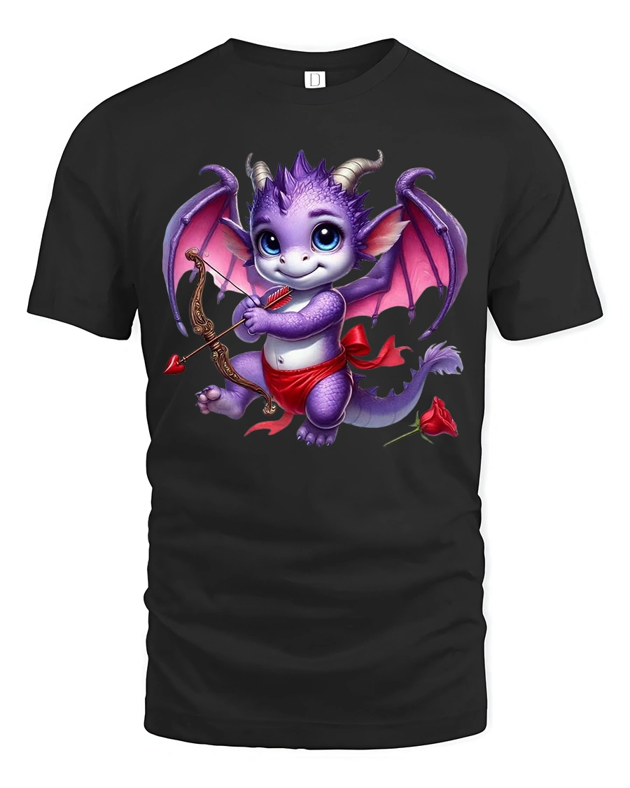 Featuring an adorable purple baby dragon dressed as Cupid, complete with a bow, arrow, and little red outfit, this tee is perfect for Valentine’s Day or anyone who loves cute mythical creatures.