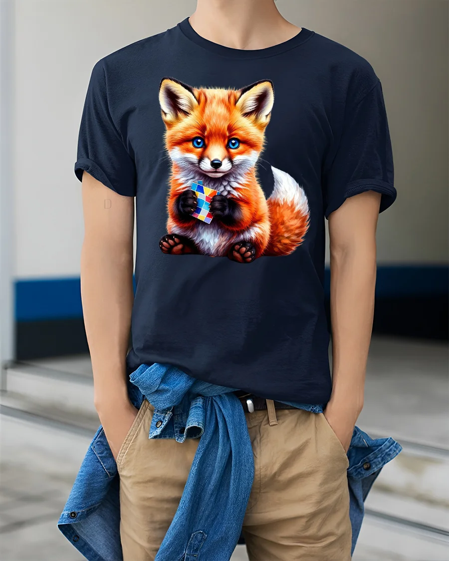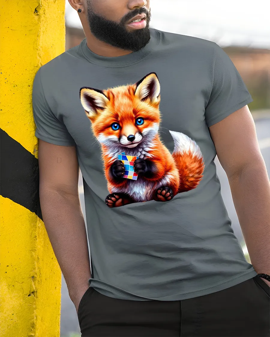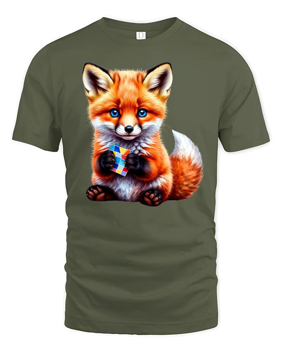 Bring smiles everywhere you go with the Cute Fox T-Shirt with Puzzle Toy Fun Graphic Tee. This adorable design features a bright-eyed baby fox holding a colorful puzzle cube, making it the perfect blend of cuteness and playful charm. With its soft, detailed art style and vibrant colors, this tee is sure to turn heads and warm hearts.