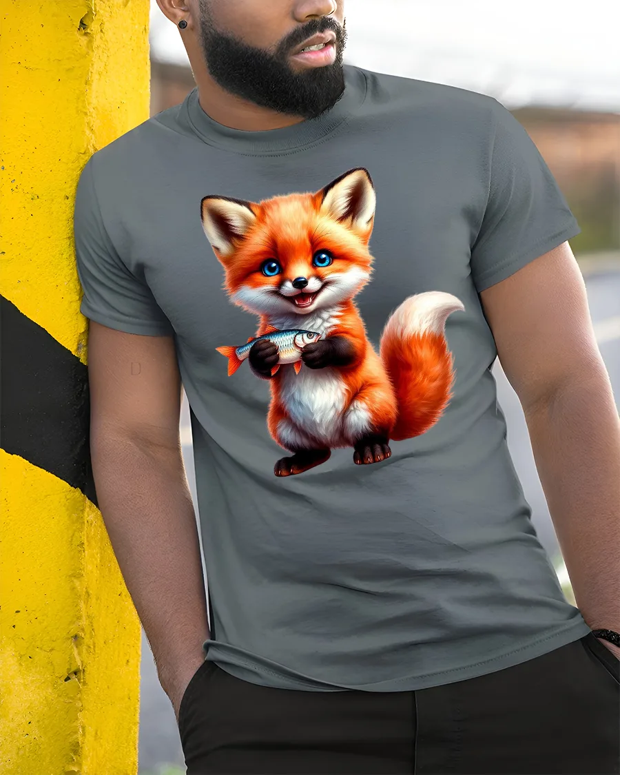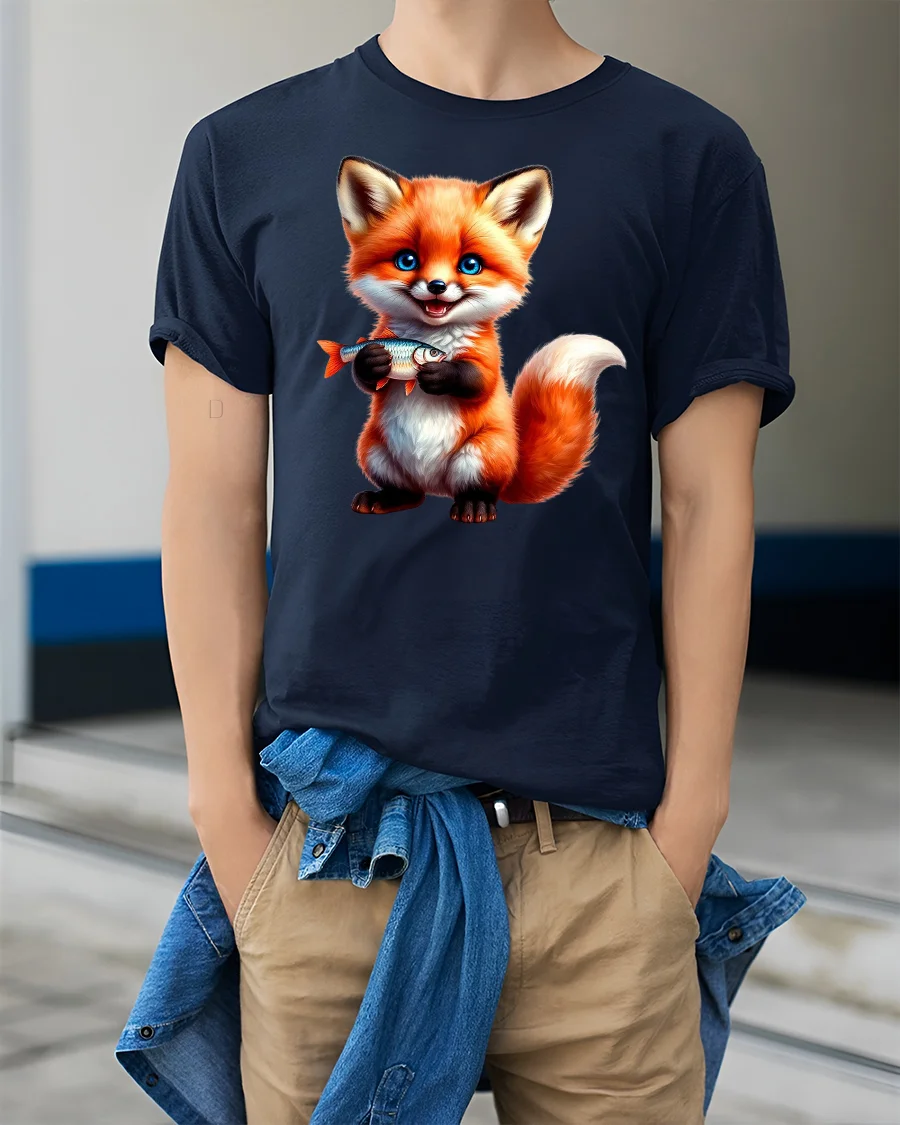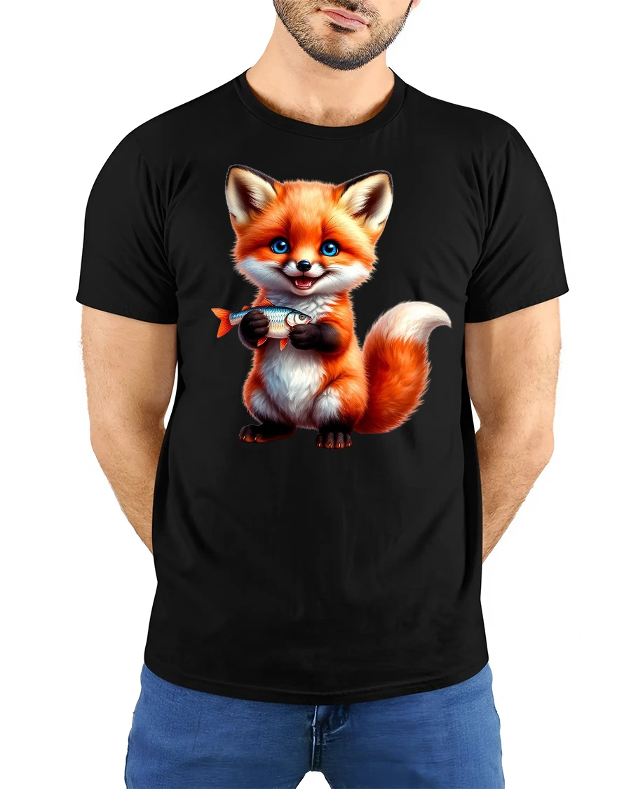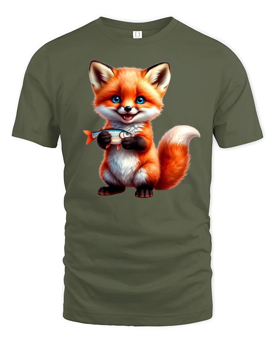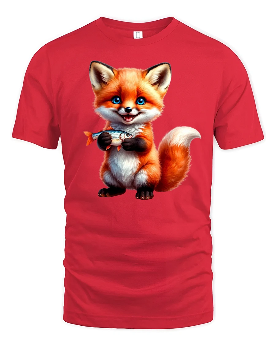 Cute Fox With Fish Funny Cartoon Art T-Shirt is a perfect blend of charm, humor, and adorable design.