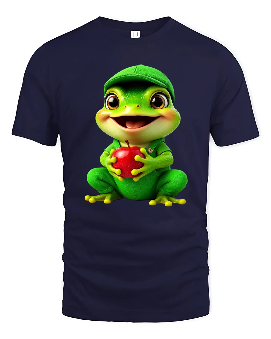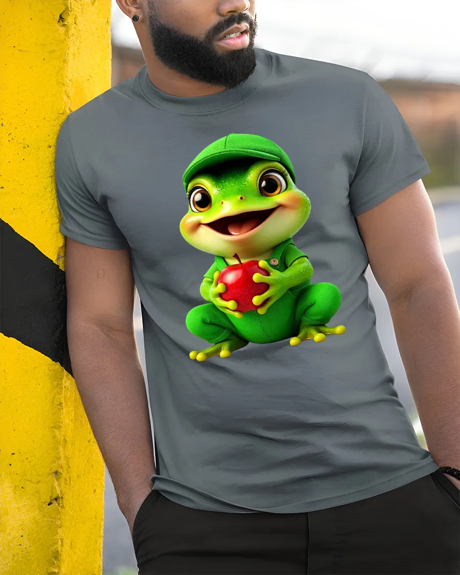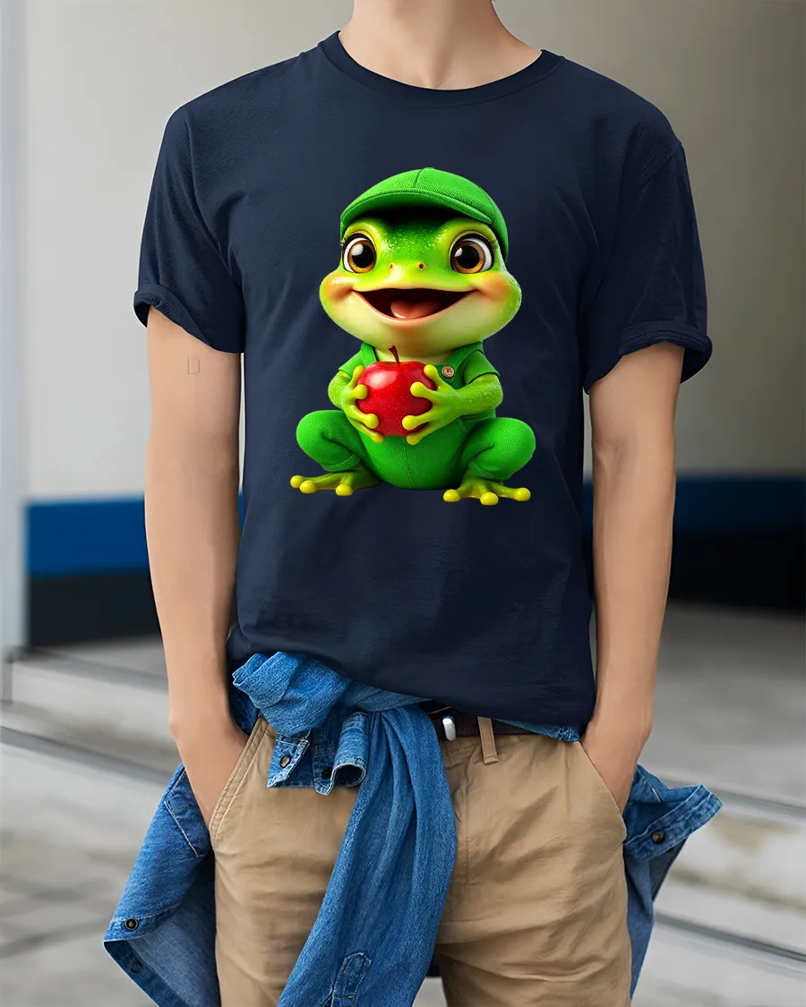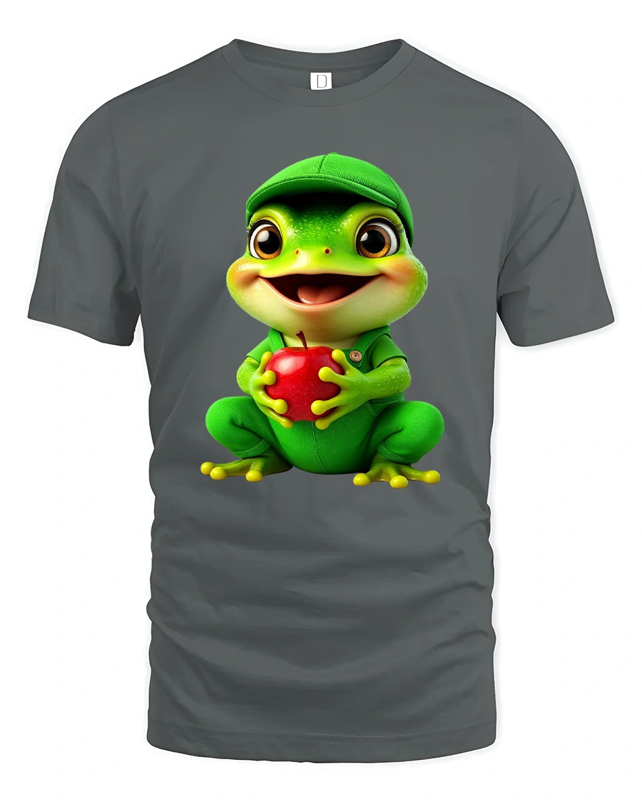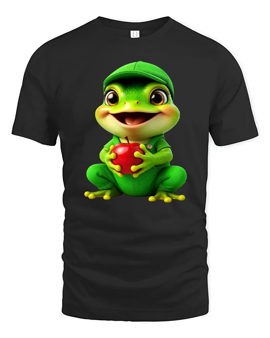 Cute Frog Holding Apple Cartoon Graphic T Shirt Tee brings joy and positivity with a lovable cartoon design that instantly makes people smile.