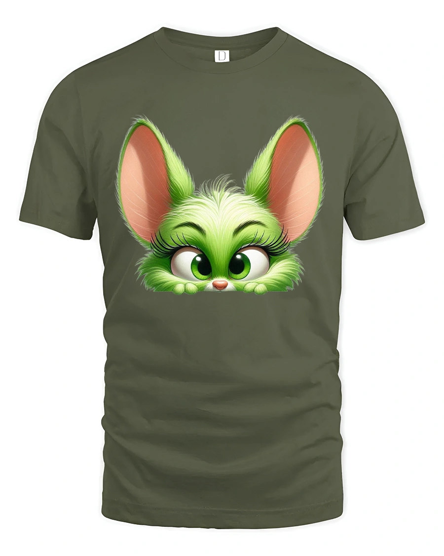 Featuring an adorable green-furred bunny with huge expressive ears and curious eyes, this design captures pure cuteness in one glance.