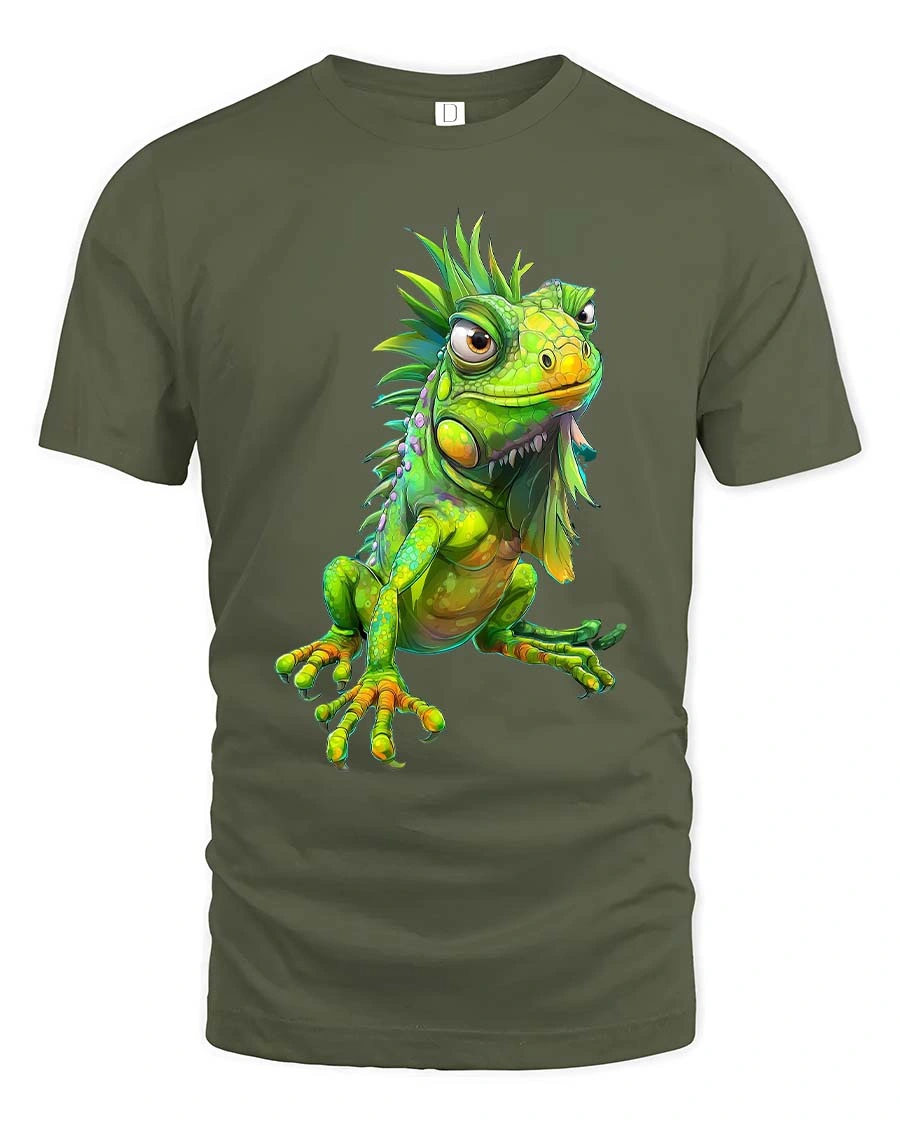 Cute Green Iguana Cartoon Reptile Fun Graphic T Shirt features a playful and eye catching design full of personality.