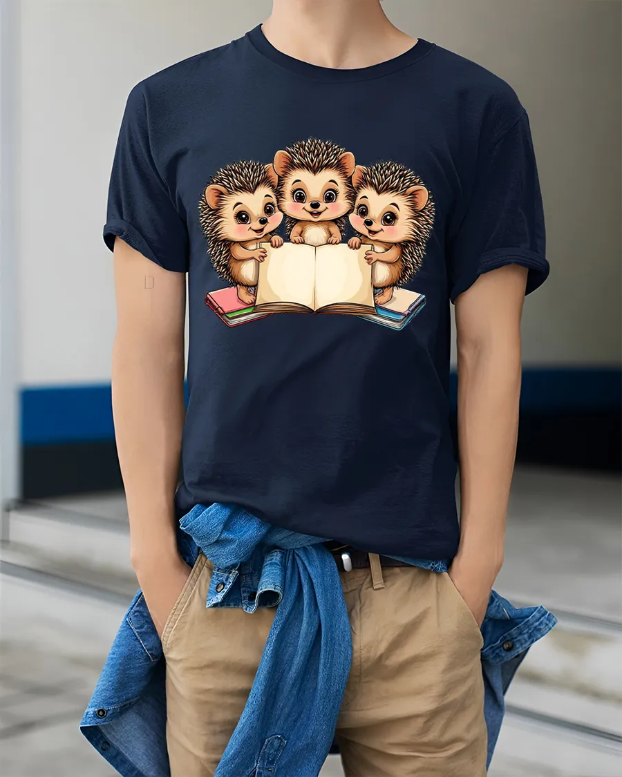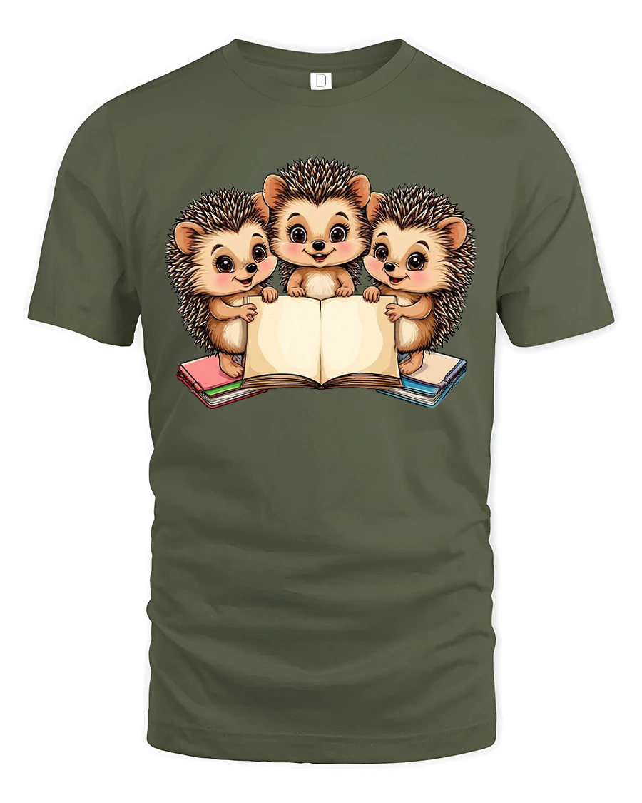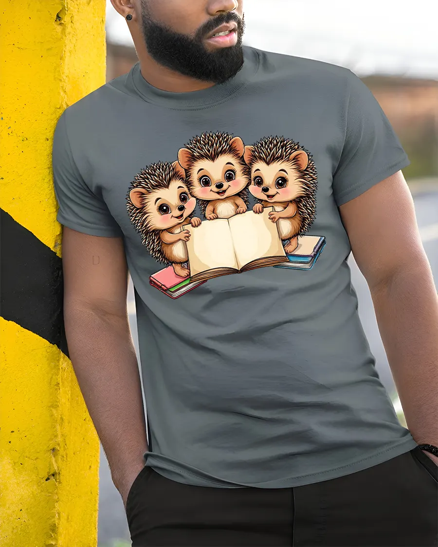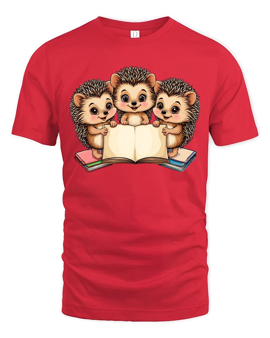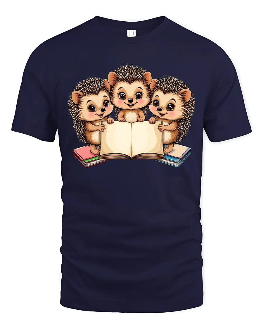 Cute Hedgehog Reading Books Tshirt With Adorable Cartoon Art celebrates curiosity imagination and the joy of reading through a charming animal illustration.