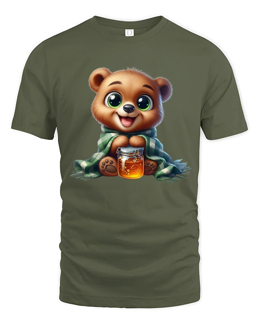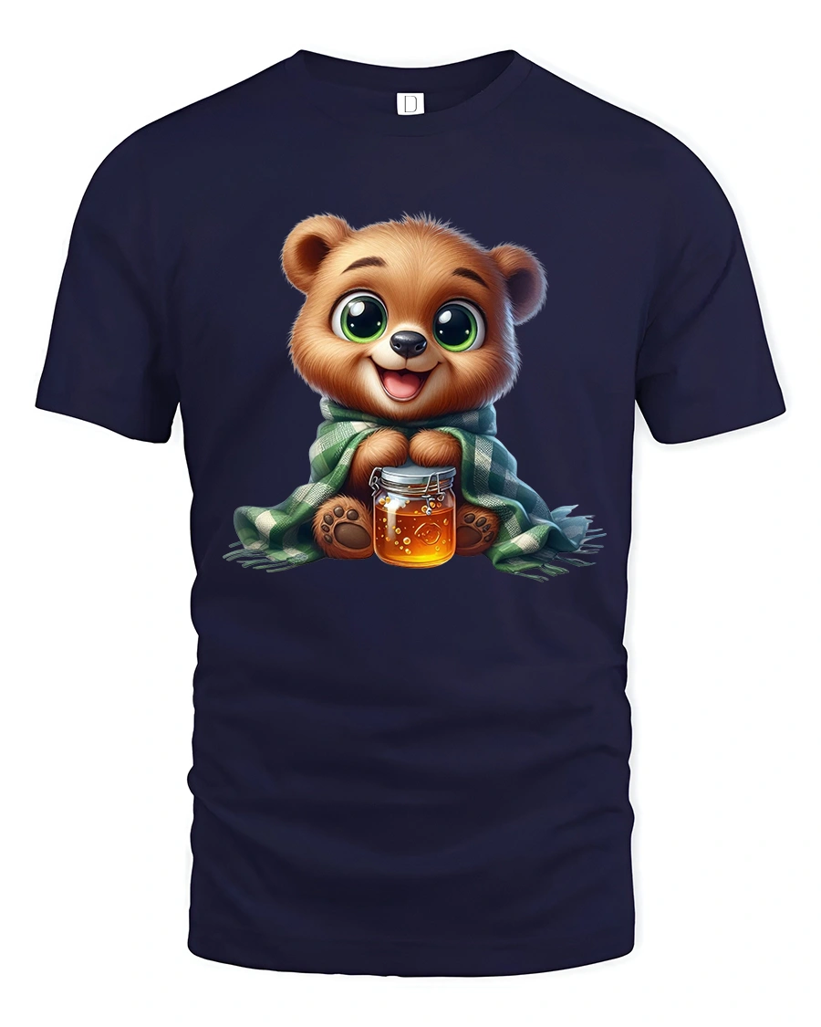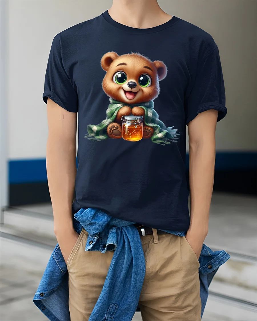 Cute Honey Bear Adorable Cartoon Graphic Art T-Shirt brings sweetness and charm to your everyday style.