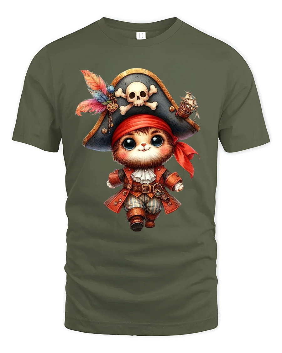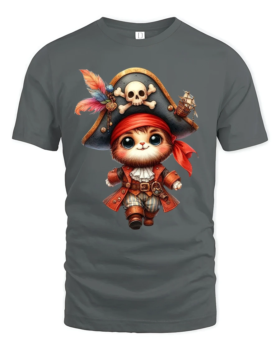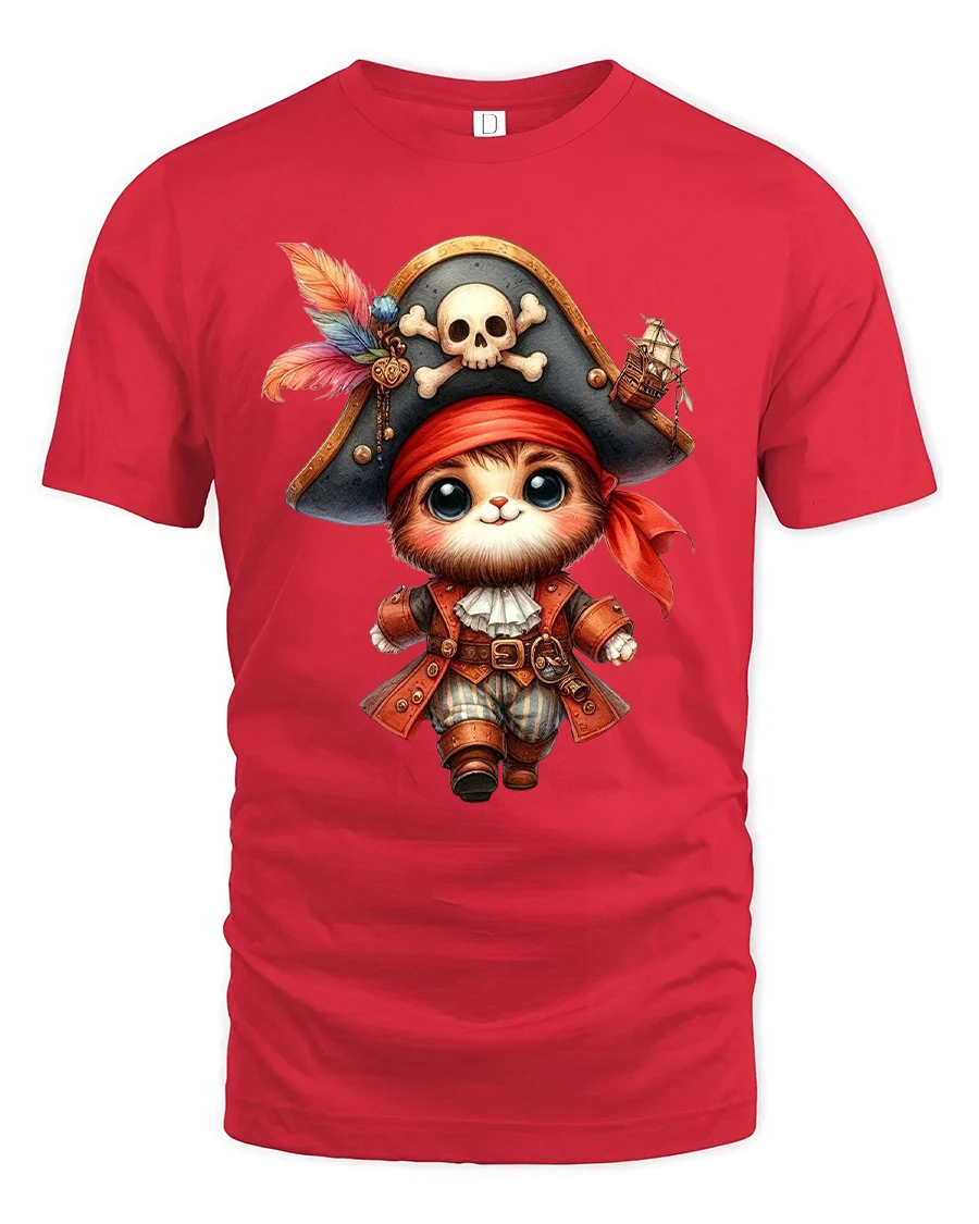 The Pirate Cat T Shirt showcases an irresistibly cute cartoon cat dressed as a tiny pirate captain.