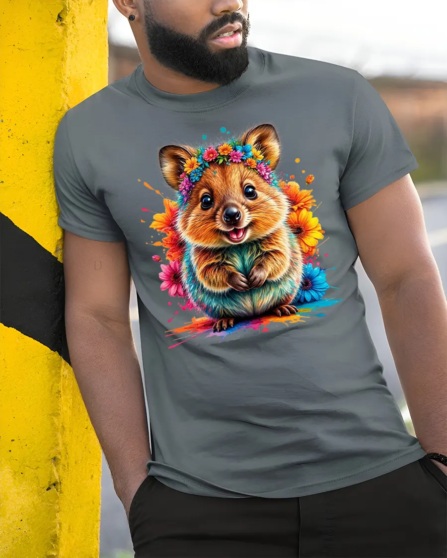 Made with a focus on comfort and style, this quokka t-shirt is perfect for casual outings, weekend hangouts, or simply showing off your love for unique wildlife. Its colorful design brings a playful energy that will brighten up your wardrobe and your day.