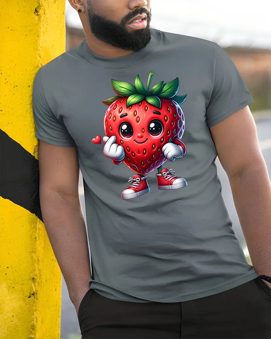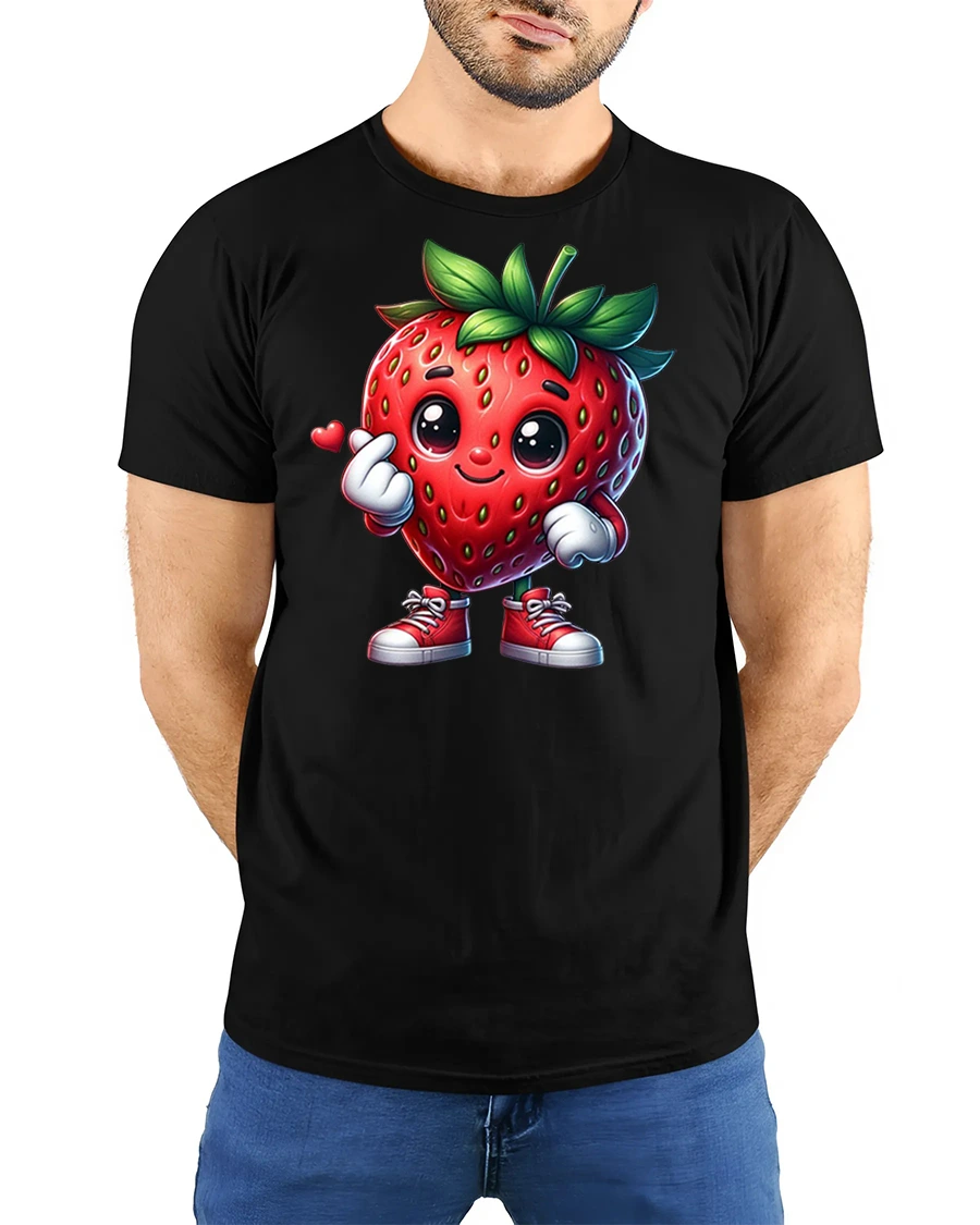Crafted for comfort and durability, this tee feels soft on the skin while keeping its vibrant print wash after wash. Whether you’re heading to a casual hangout, a summer event, or simply want to brighten your day with something sweet, this strawberry character tee is a delightful choice. It pairs effortlessly with jeans, shorts, or cozy loungewear.