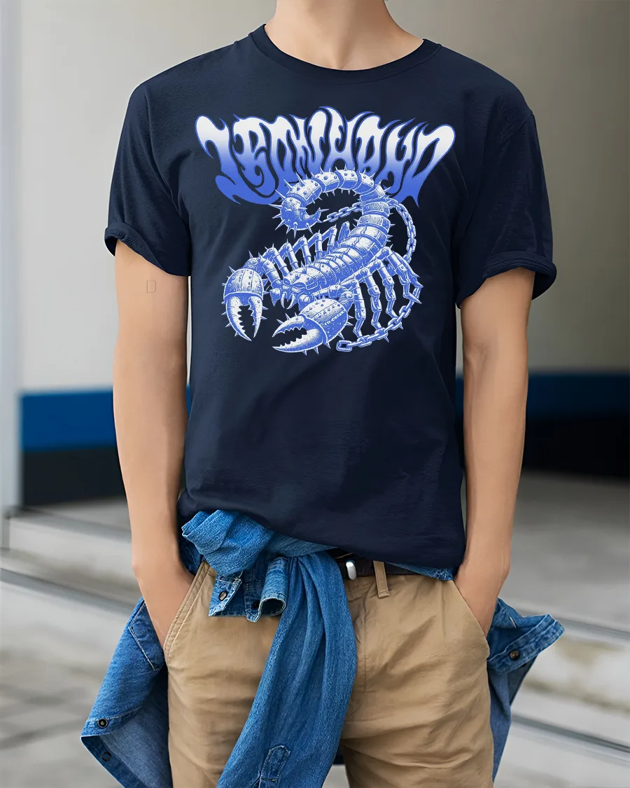 The Cyber Scorpion Battle Armor Graphic Printed T-Shirt is designed for those who love bold, edgy, and futuristic fashion. Featuring a detailed armored scorpion with metallic textures and chain details, this tee creates a powerful look that stands out. Its blue cyberpunk-style design makes it the perfect shirt for fans of sci-fi, fantasy, and gothic-inspired streetwear.