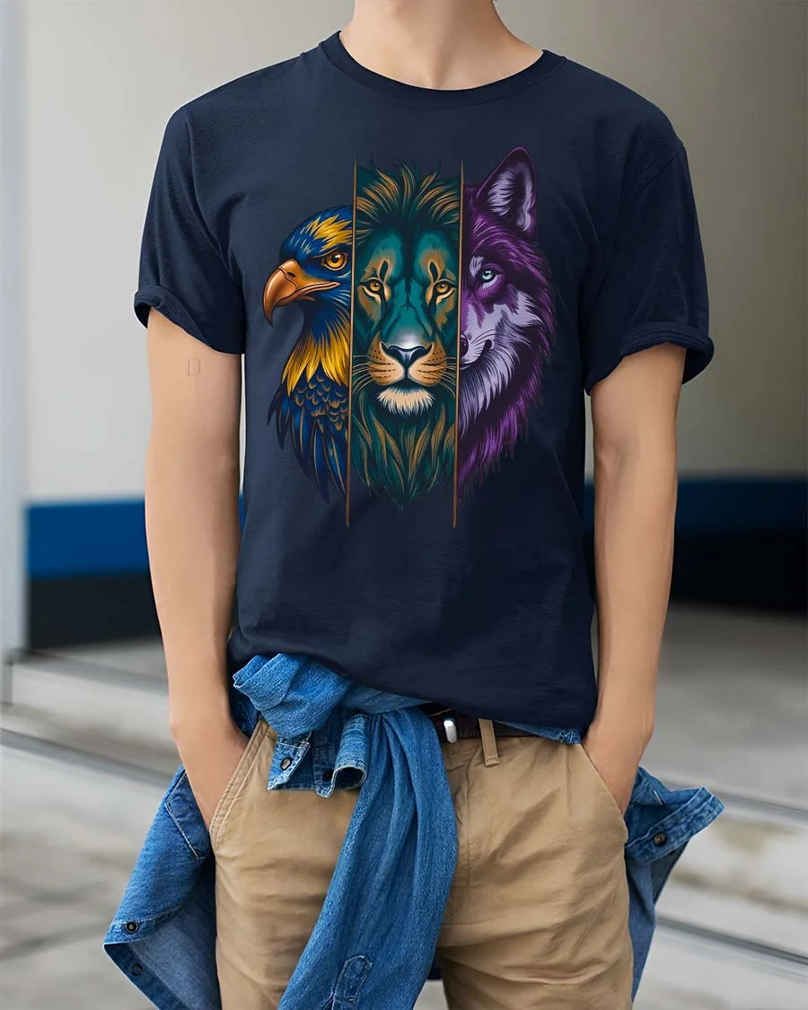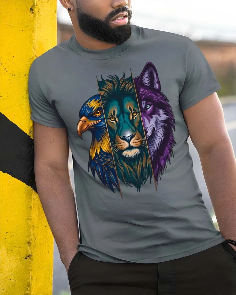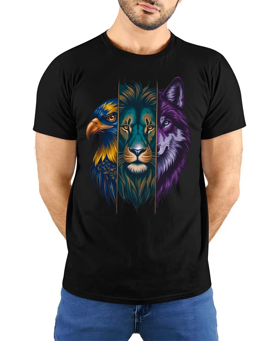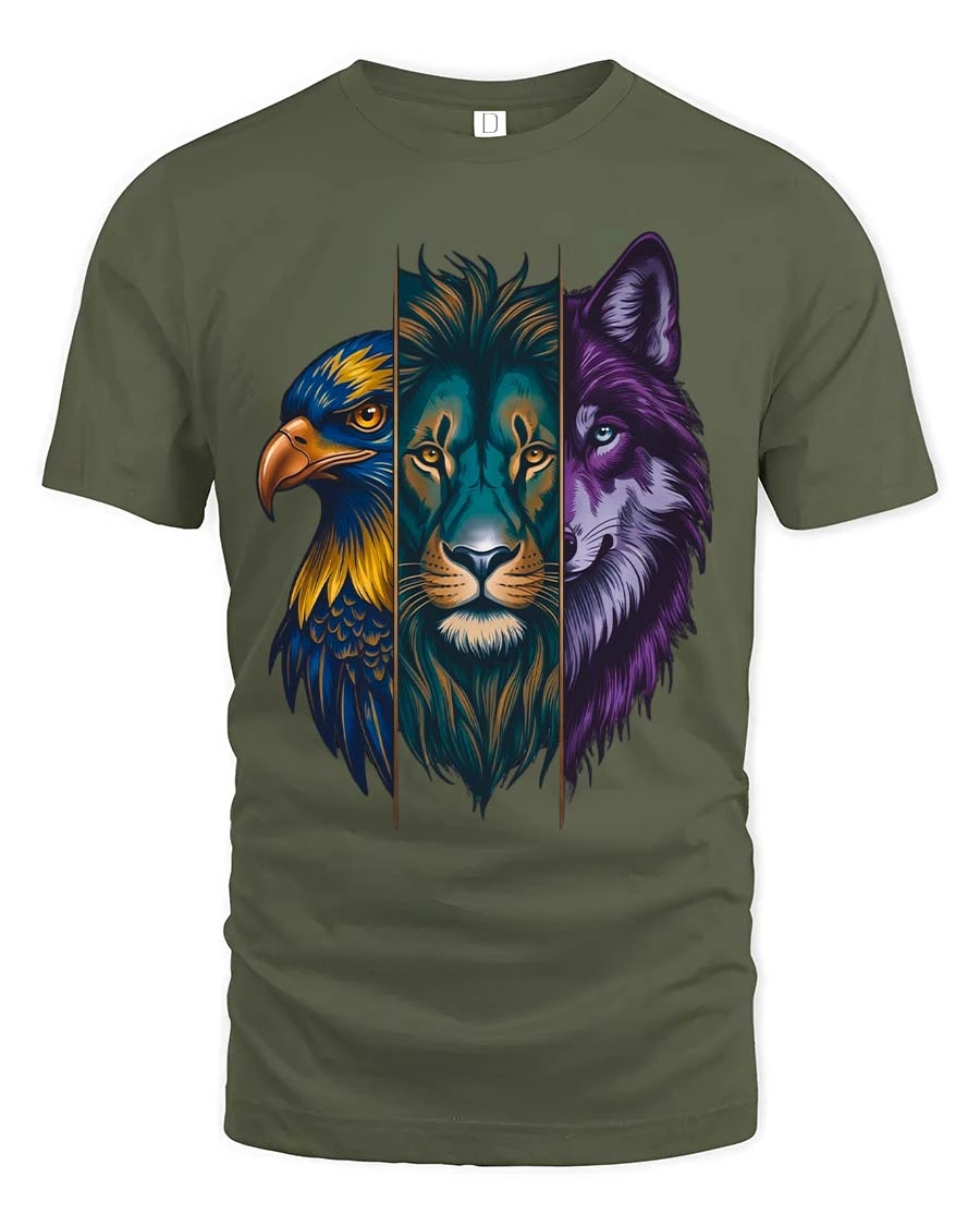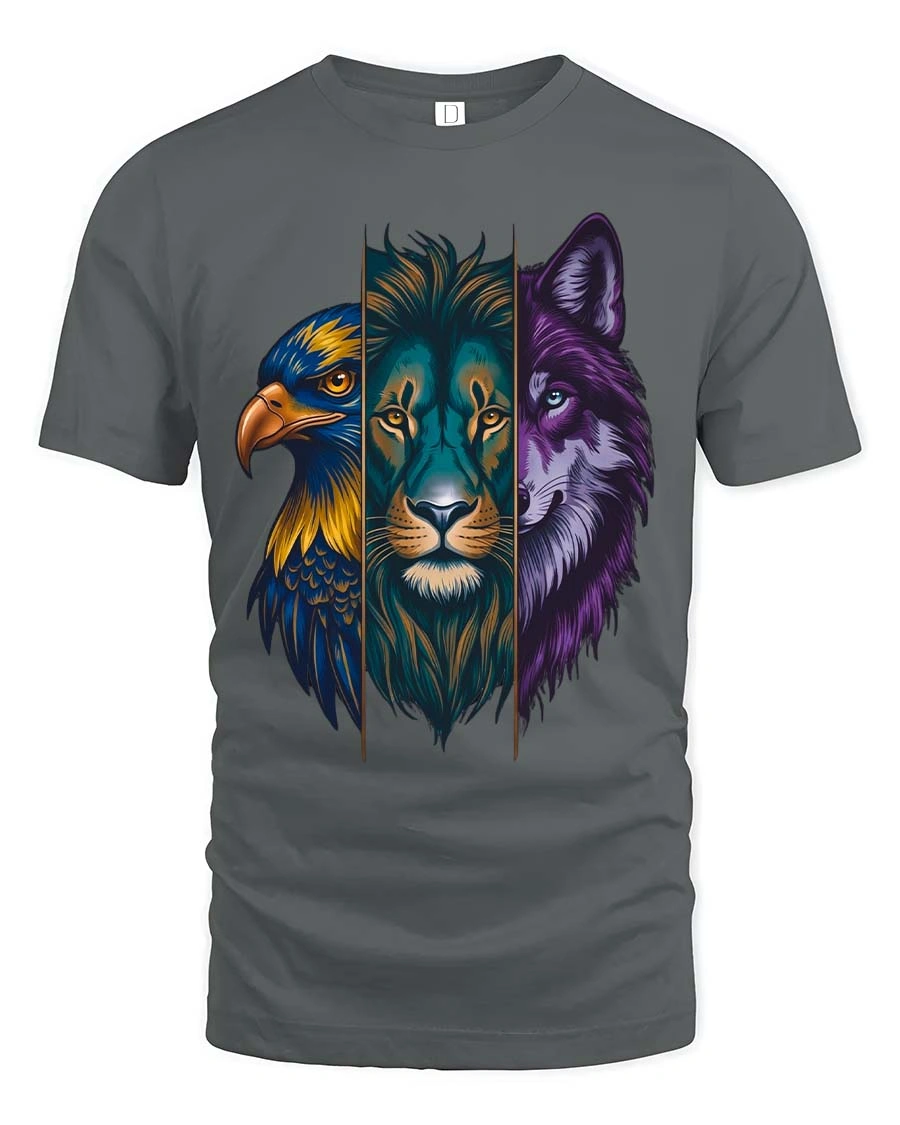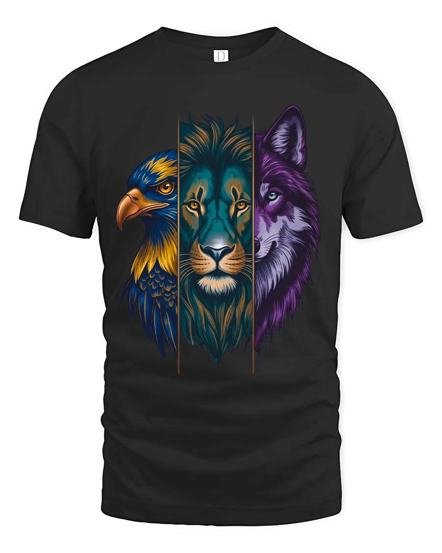 Eagle Lion Wolf Trio Animal Graphic T Shirt Artistic Style
