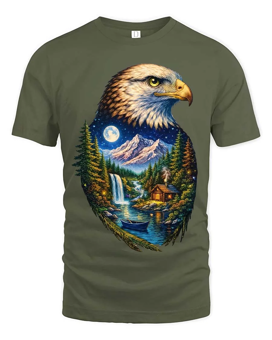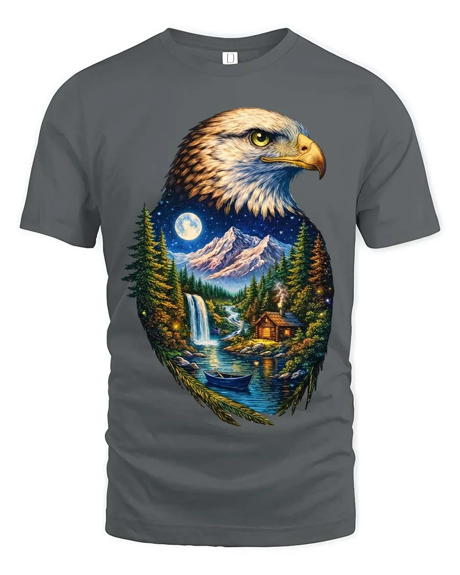 Eagle Nature Landscape T Shirt Mountain Night Scenic Art captures the beauty of the wilderness through a breathtaking artistic composition.