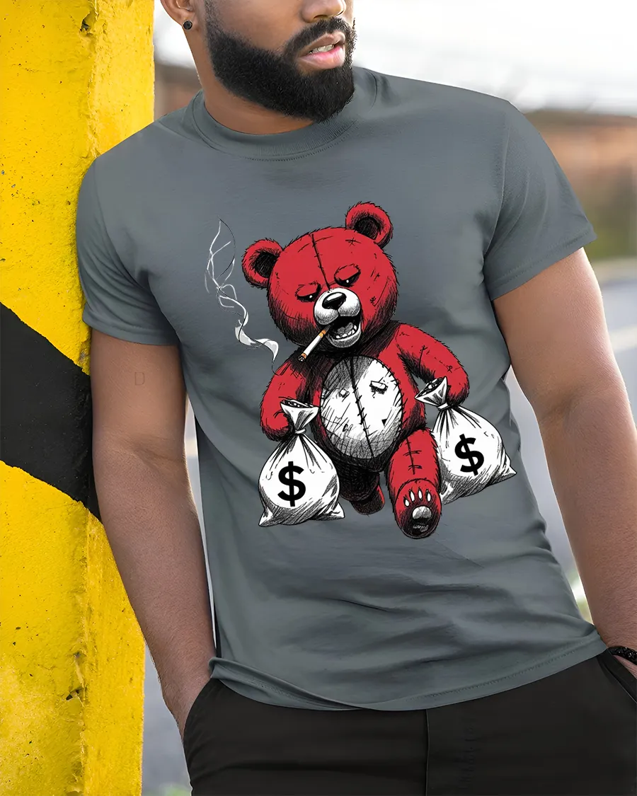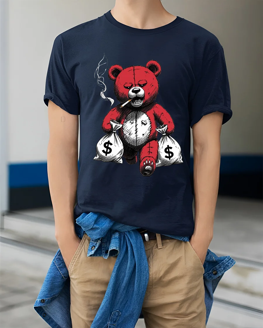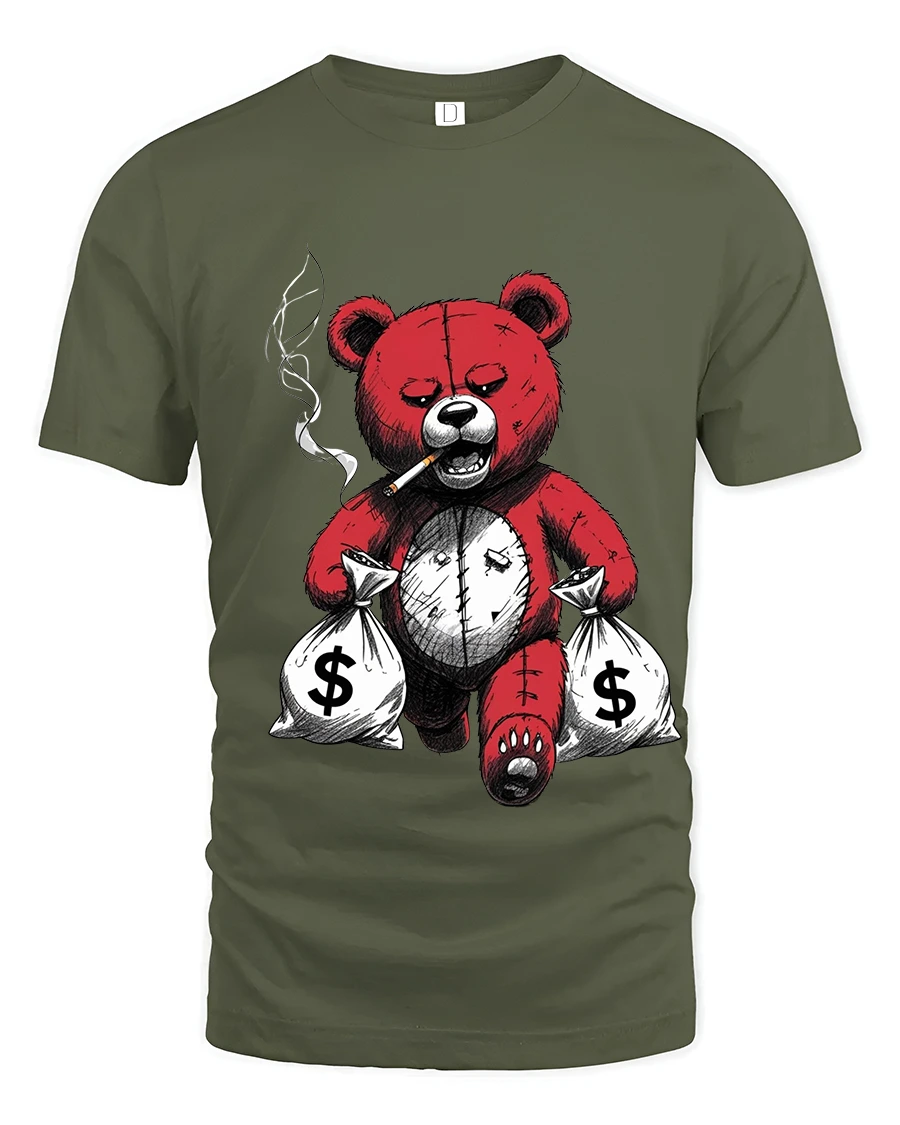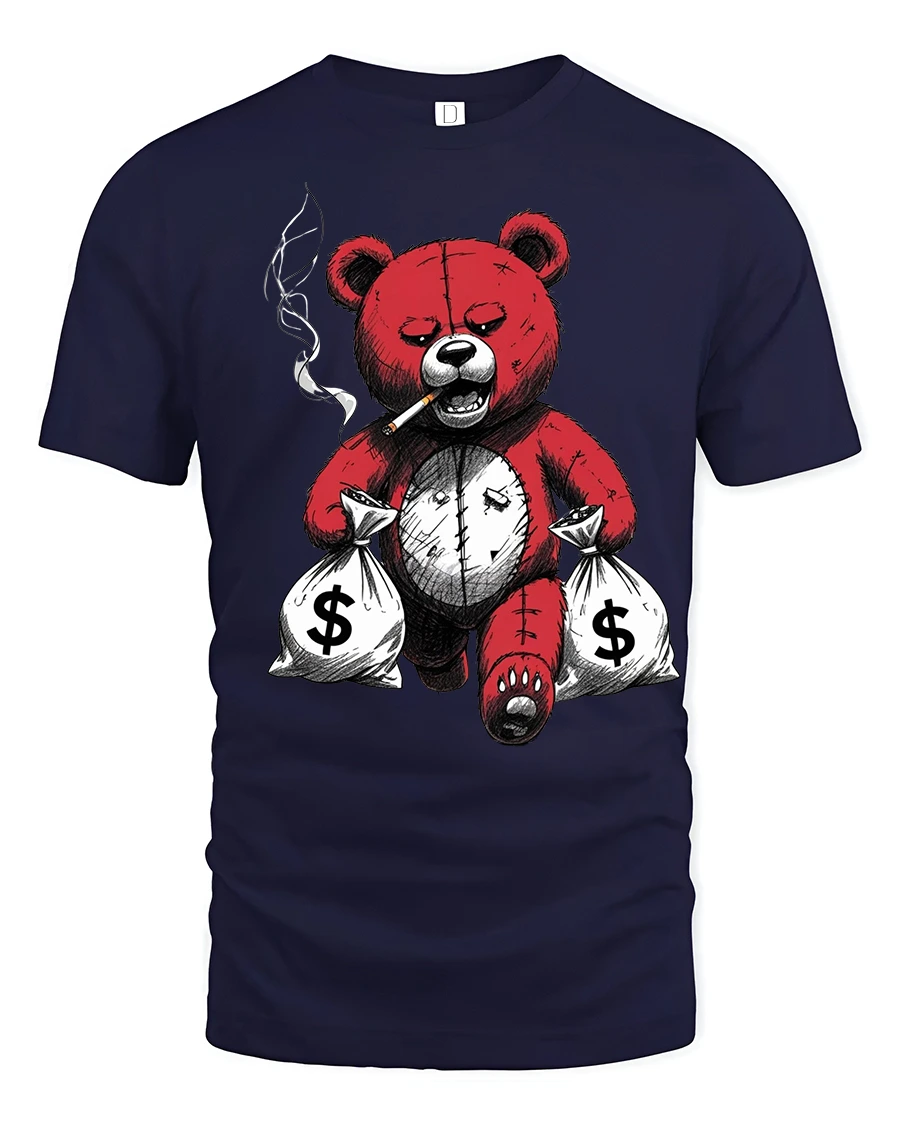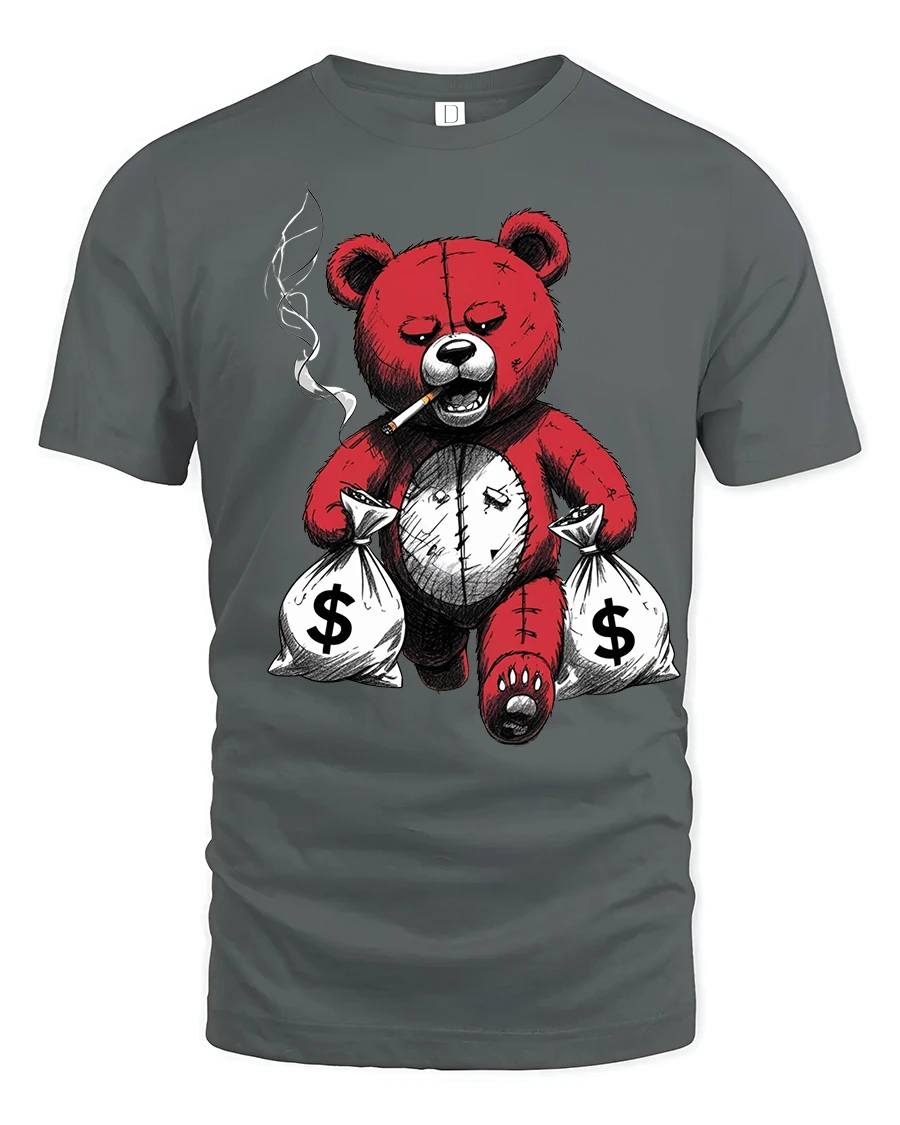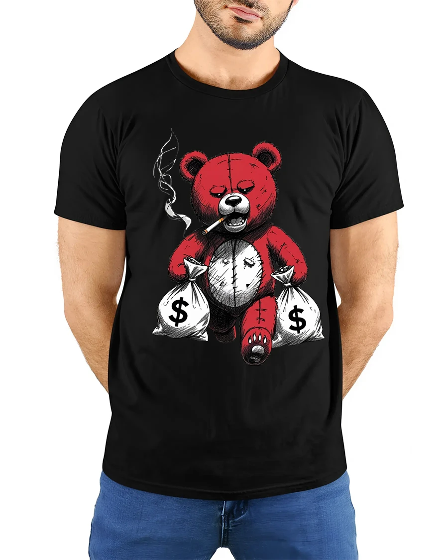 Edgy Money Bear Graphic Tee With Dark Humor Street Art Style is made from soft breathable fabric designed for everyday comfort.