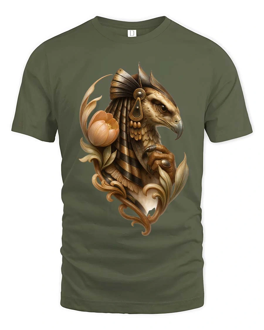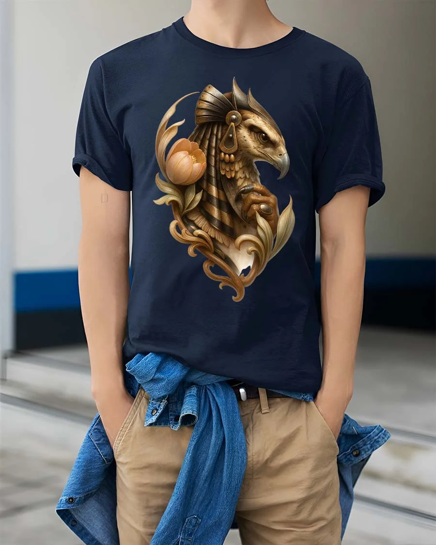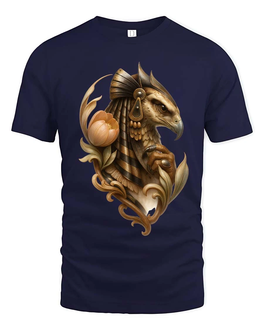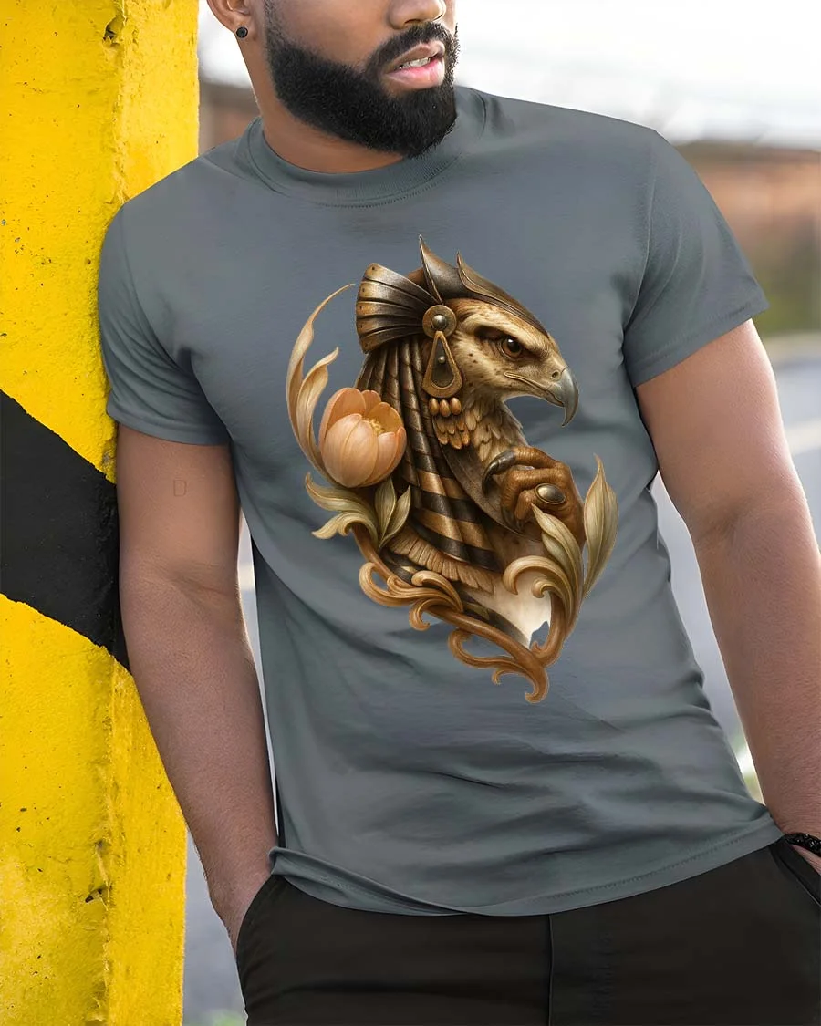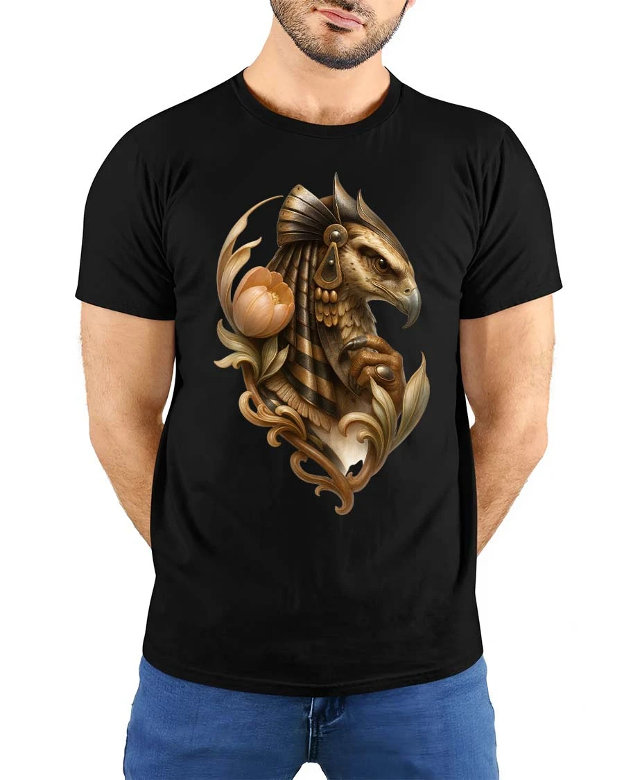 Egyptian Falcon Floral Mythology Artistic Graphic T Shirt presents an elegant illustration inspired by ancient symbolism and refined artistic detail.