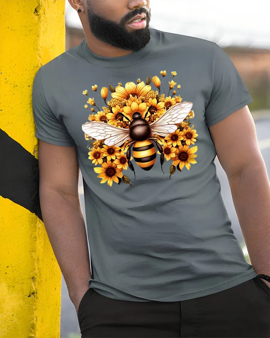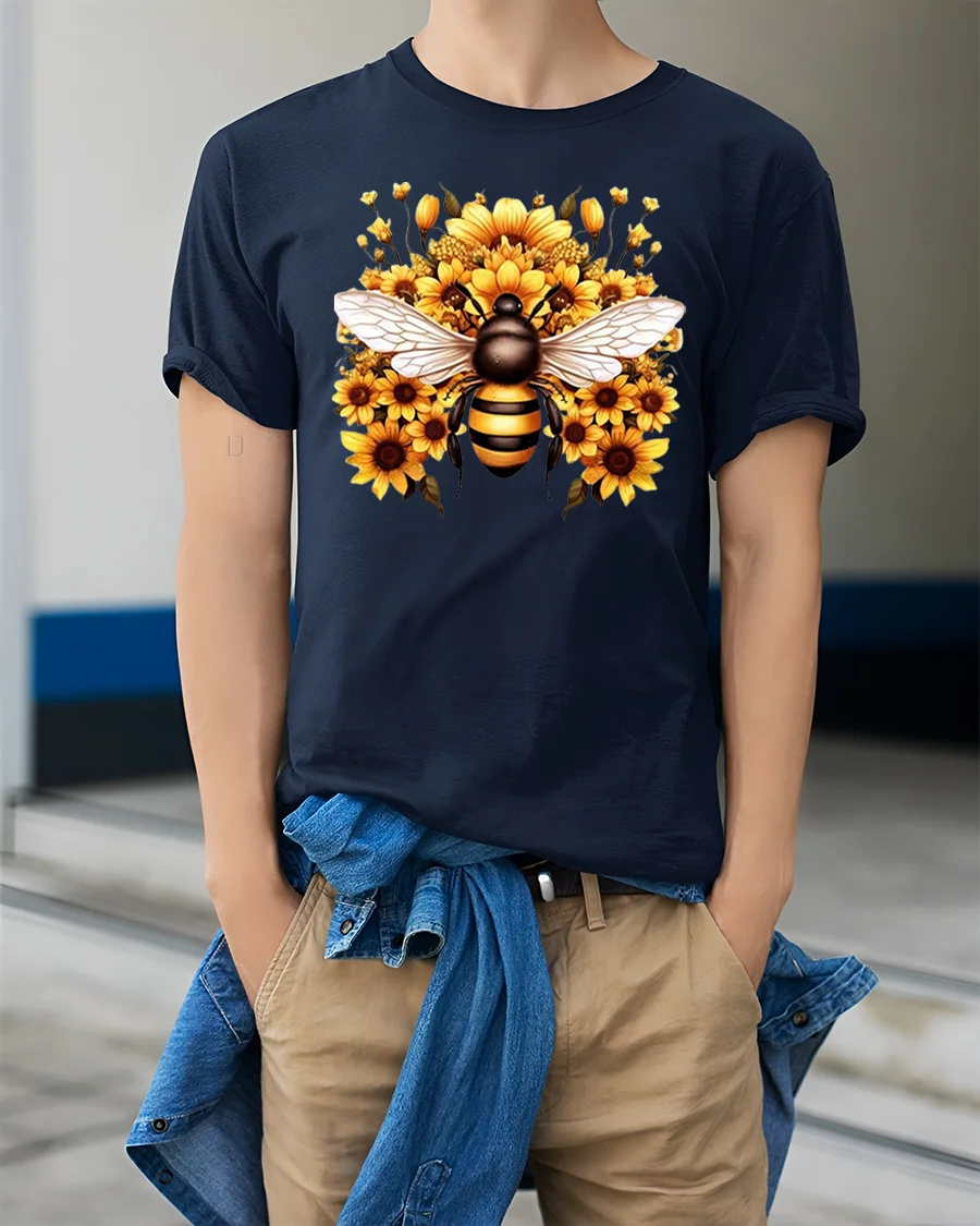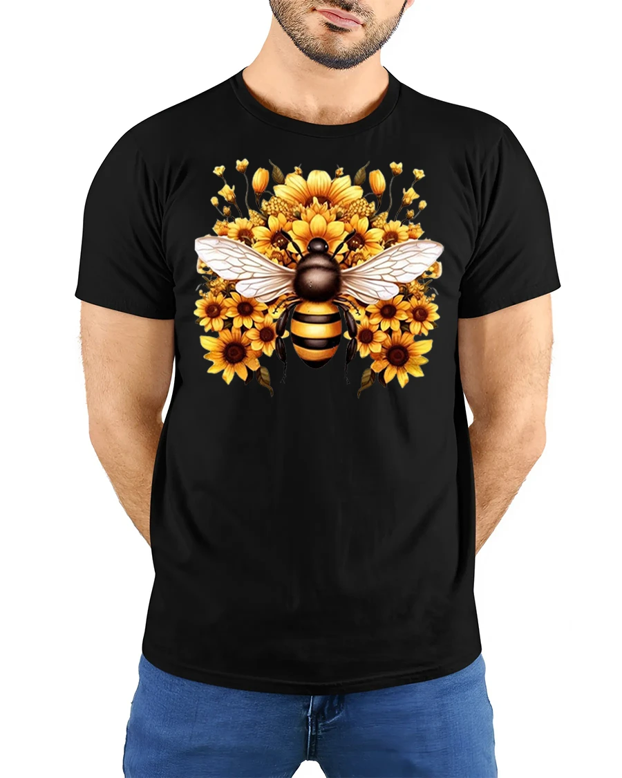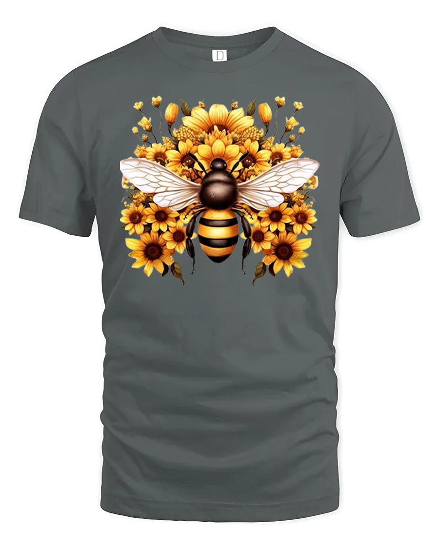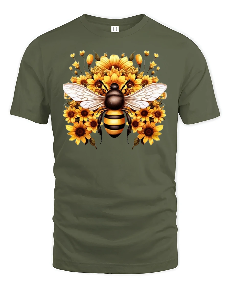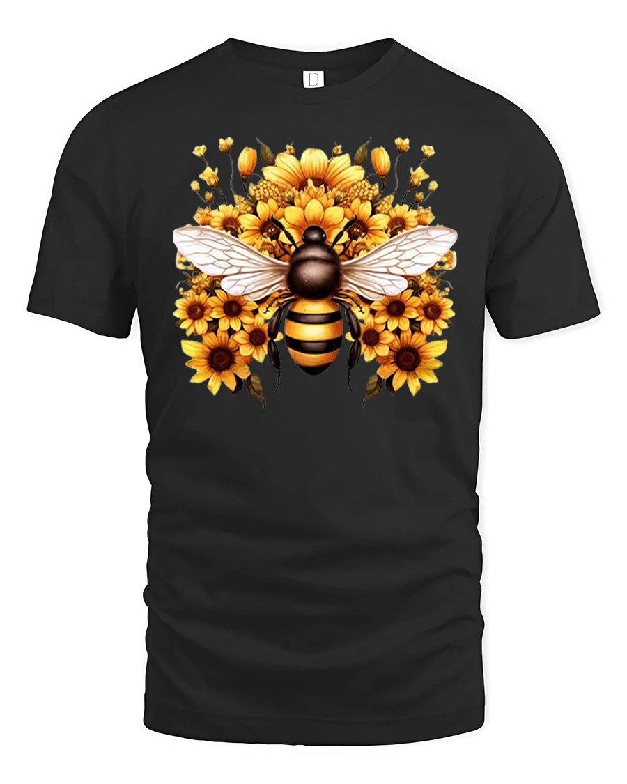 Elegant Honey Bee Sunflower Floral Art Graphic Tshirt Tee is ideal for anyone who loves bees flowers and artistic nature designs.