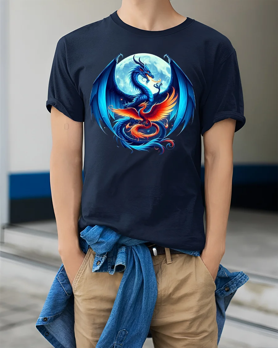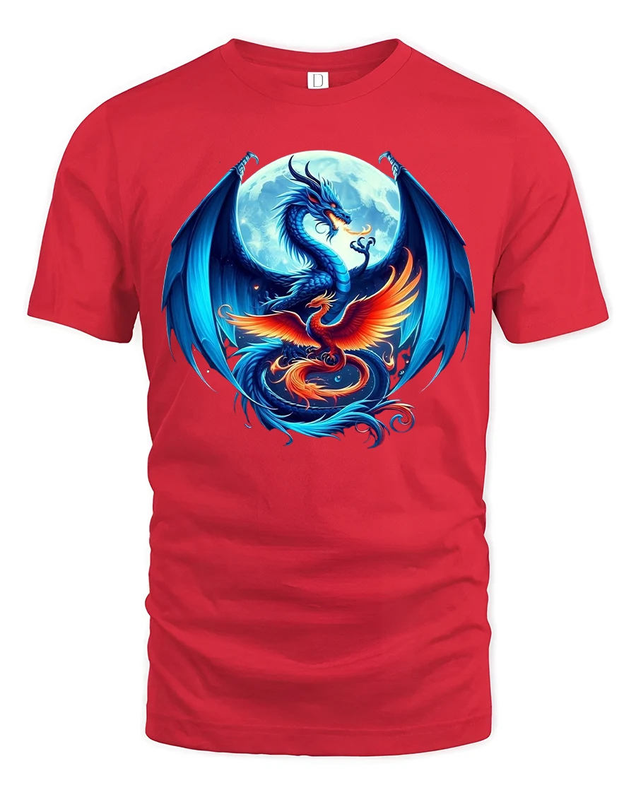 Epic Dragon And Phoenix Moon Fantasy Graphic T Shirt Tee adds powerful energy and artistic expression to any wardrobe.