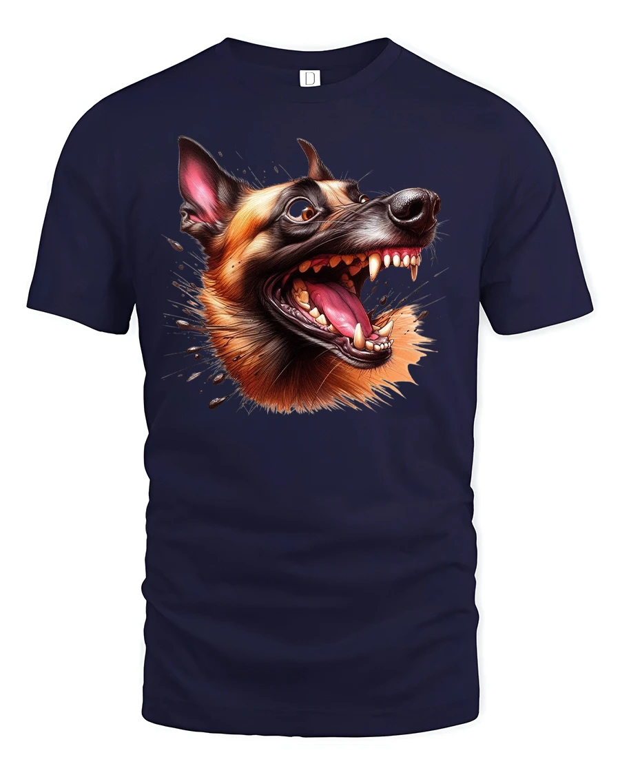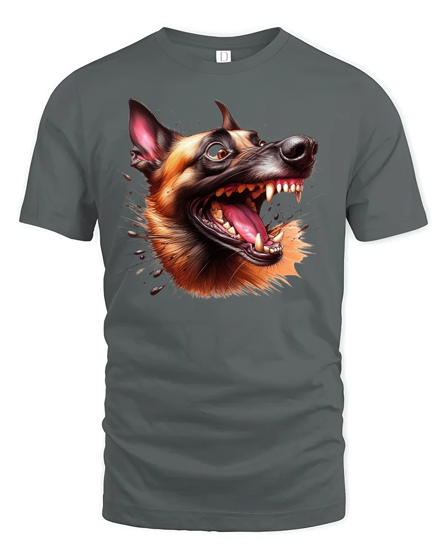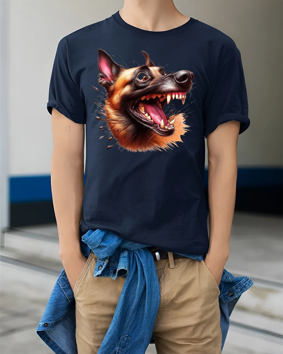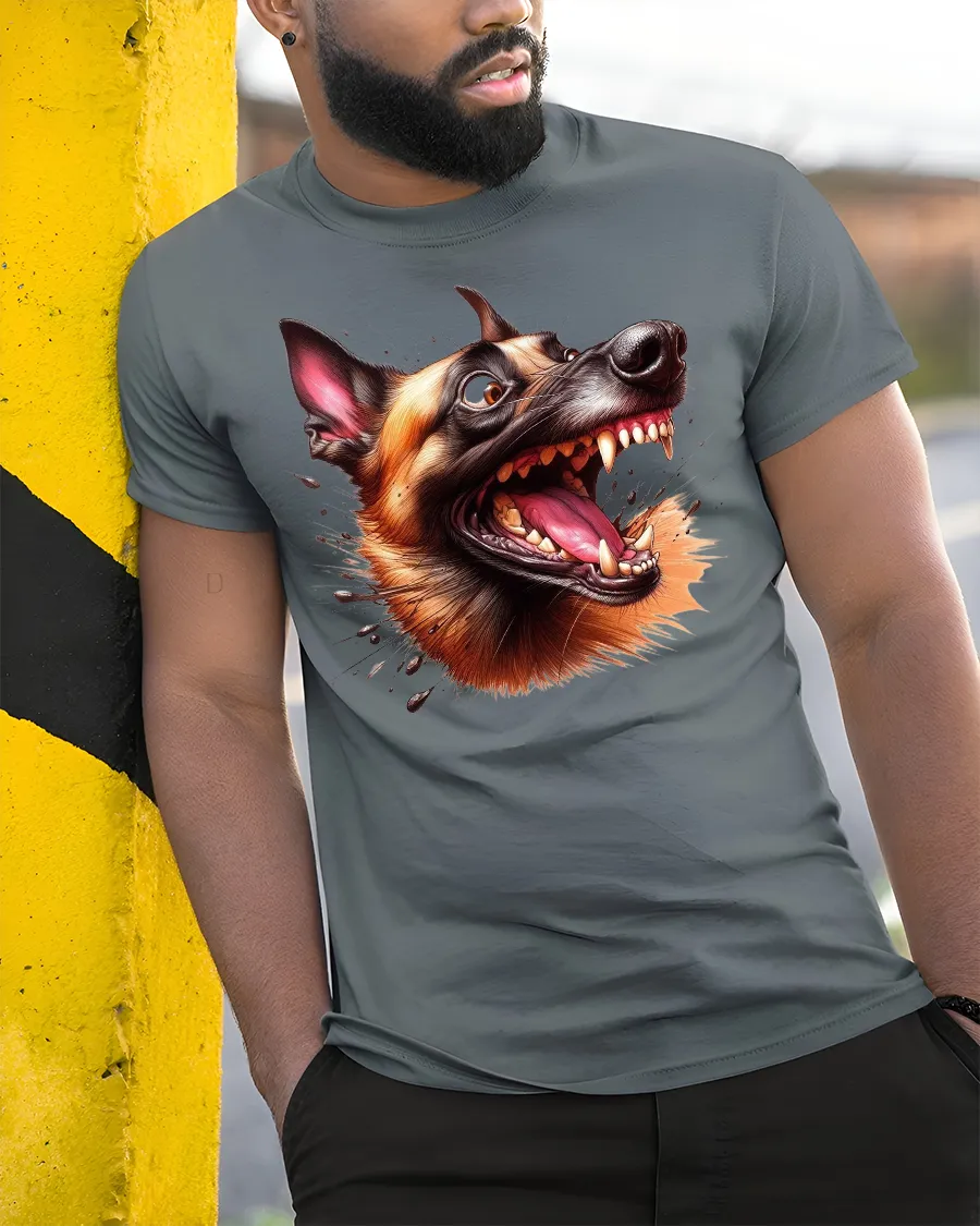 Featuring a realistic growling dog head with an explosive splash effect, this tee captures raw power and confidence in every detail.