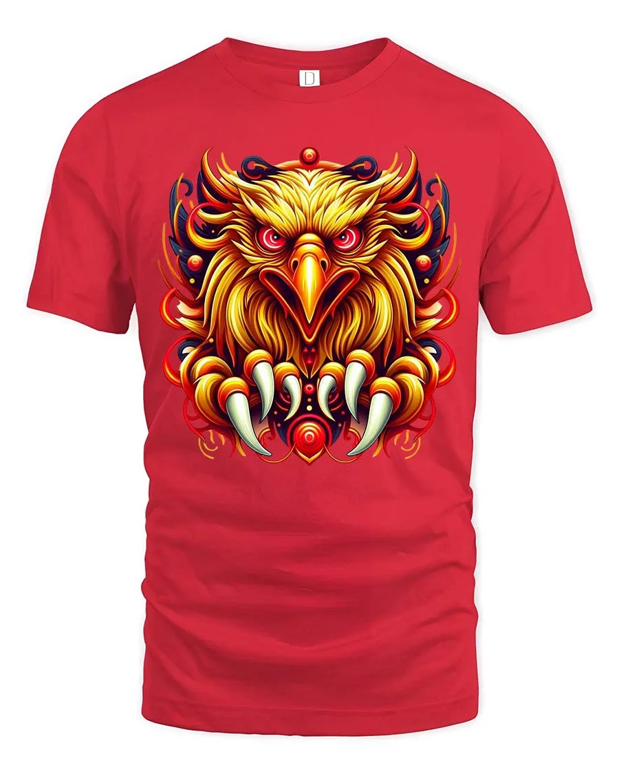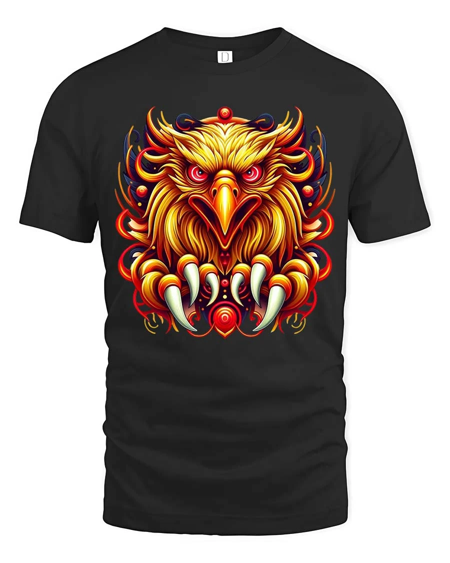 The detailed illustration of a golden eagle with glowing eyes and sharp talons creates a bold and unforgettable visual impact.