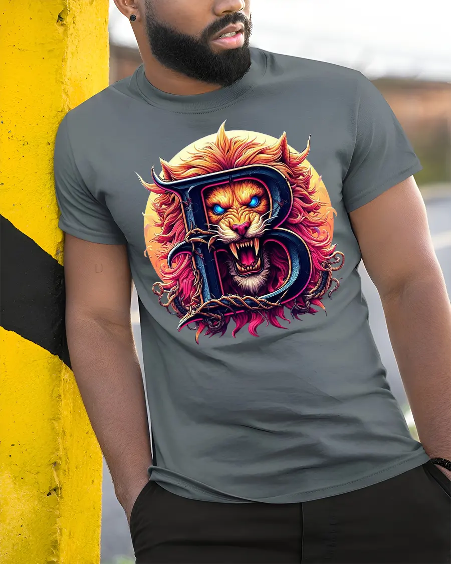 Crafted from high-quality soft cotton, this t-shirt combines comfort with style. The vivid artwork captures attention instantly, making it perfect for casual wear, gym sessions, or street fashion. Whether you’re a lion lover or someone whose name starts with “B,” this tee reflects strength and bold character.