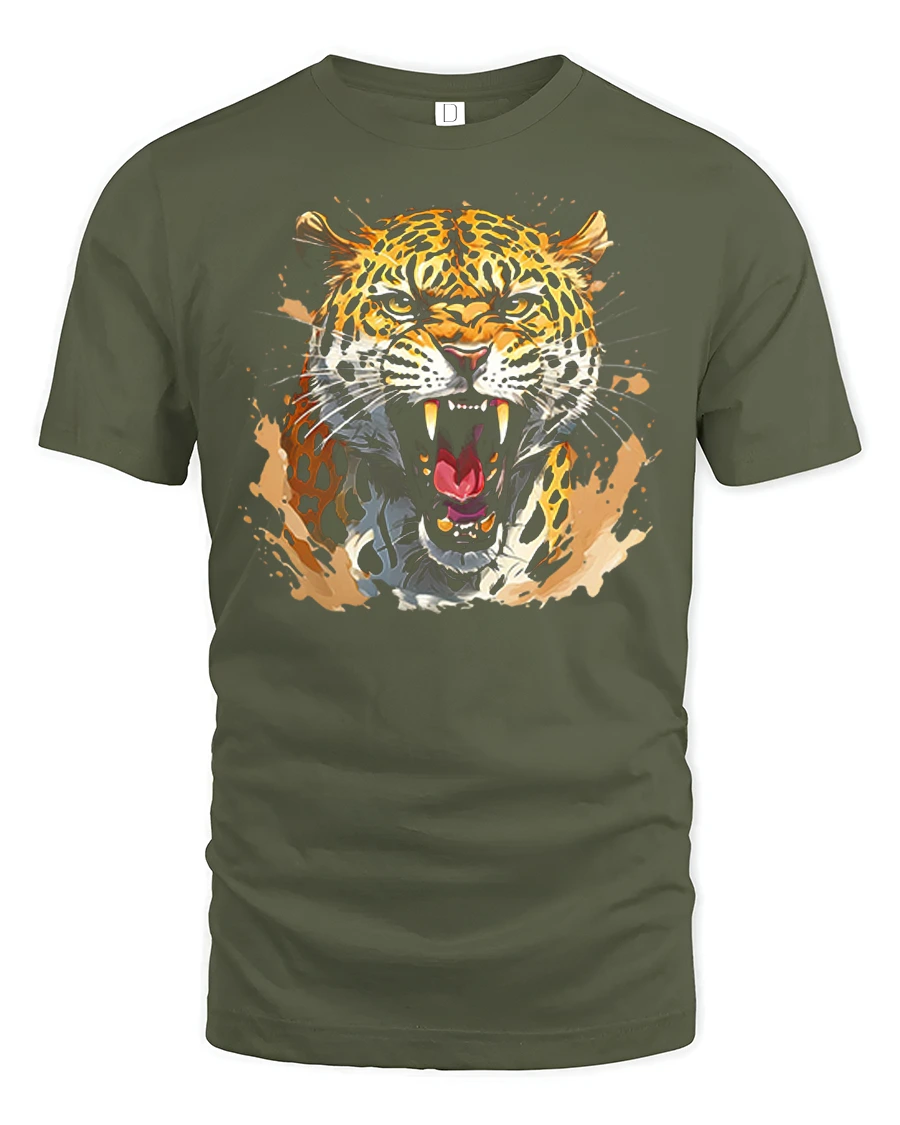 Featuring a roaring leopard with sharp details, intense eyes, and expressive brush splash effects, this design captures the fearless spirit of one of nature’s most iconic predators.
