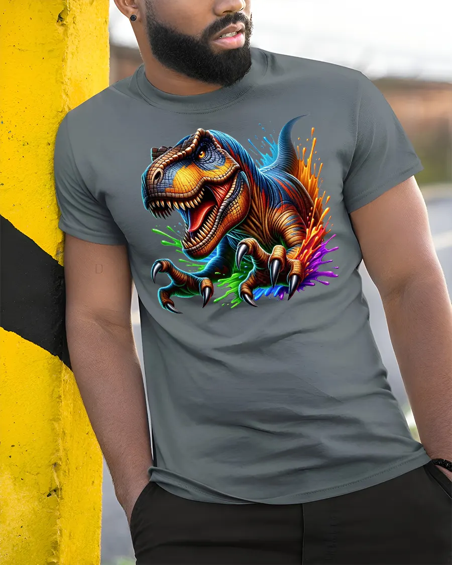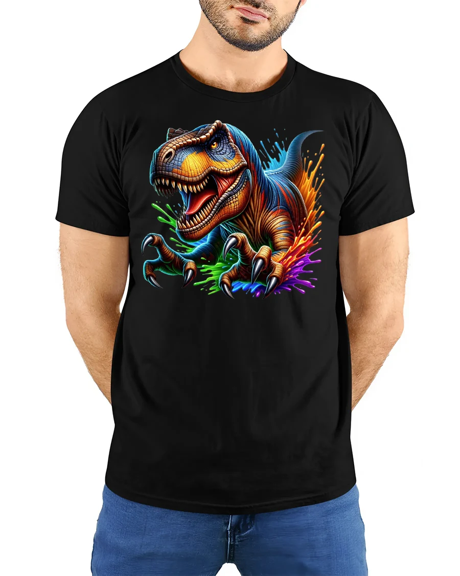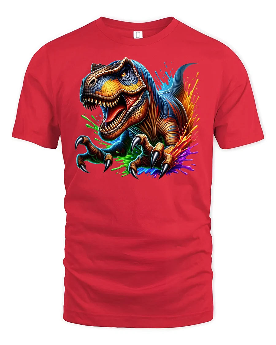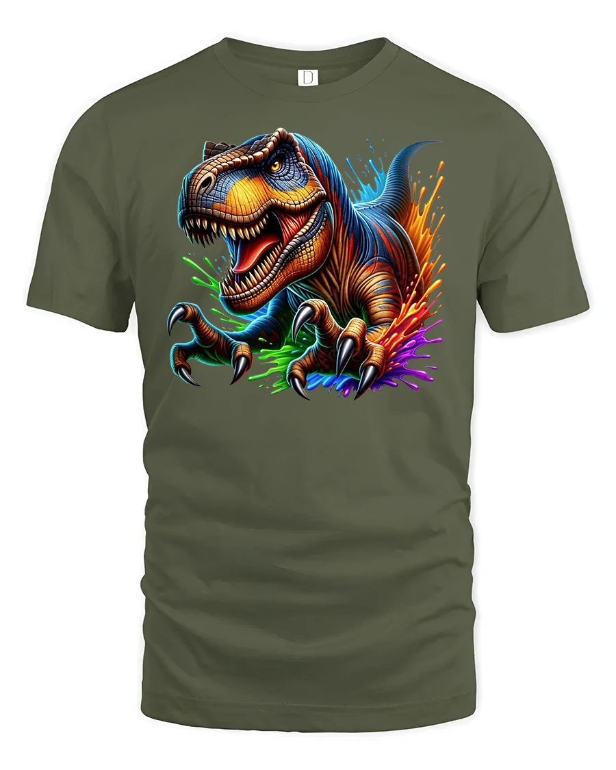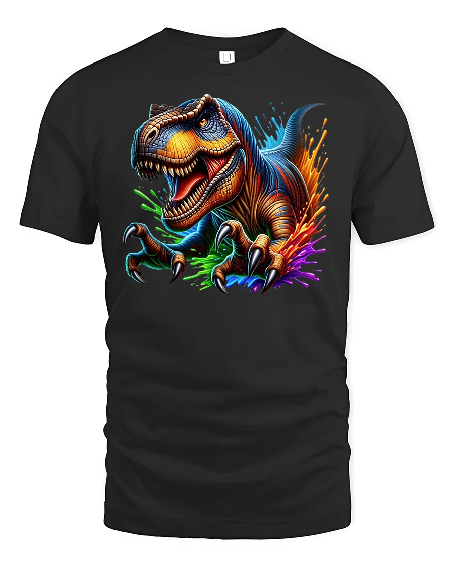 The Fierce T-Rex Dinosaur Graphic Printed T-Shirt brings prehistoric power to your everyday style. Featuring a bold and colorful T-Rex bursting through a rainbow splash, this shirt is perfect for dinosaur lovers, fans of Jurassic adventures, and anyone who wants a statement piece in their wardrobe. Its eye-catching design makes it stand out while showing off a fierce personality.