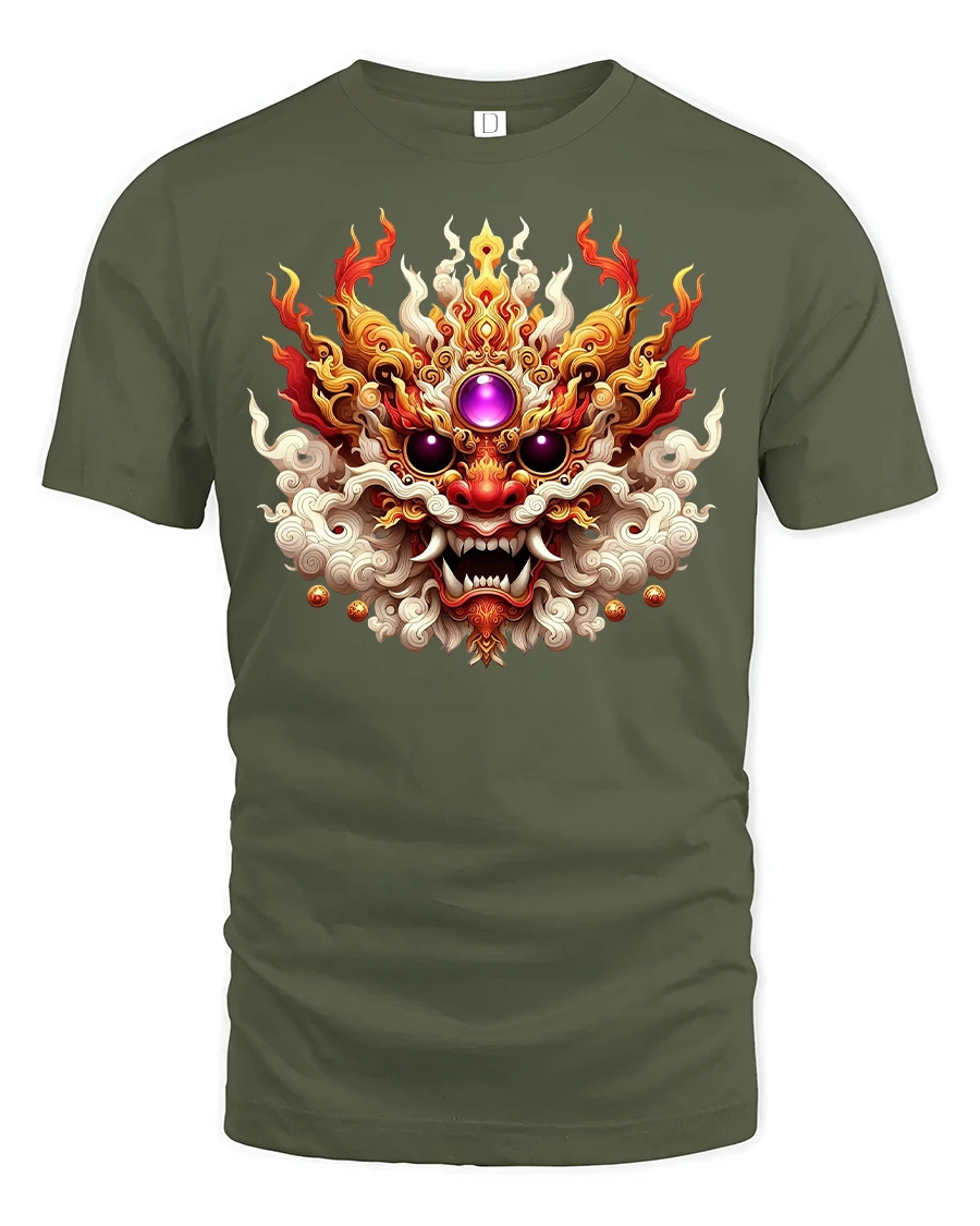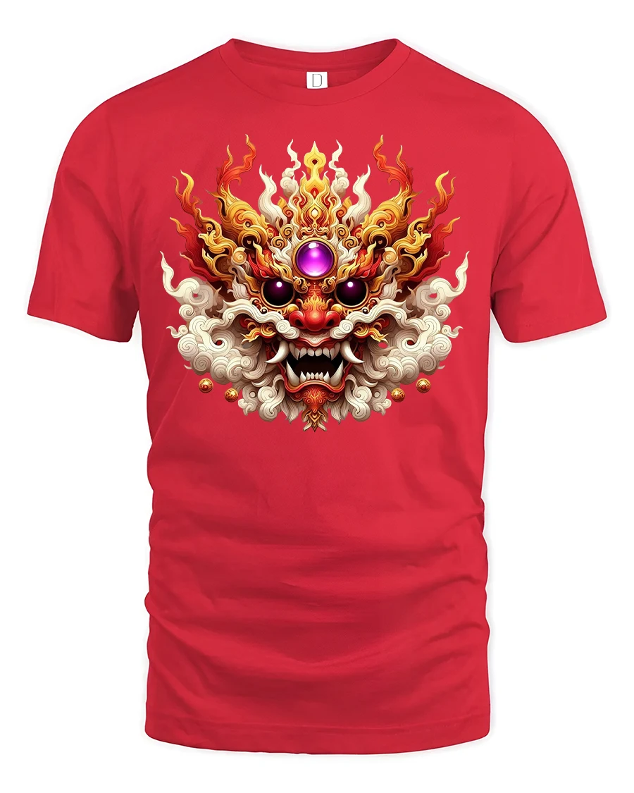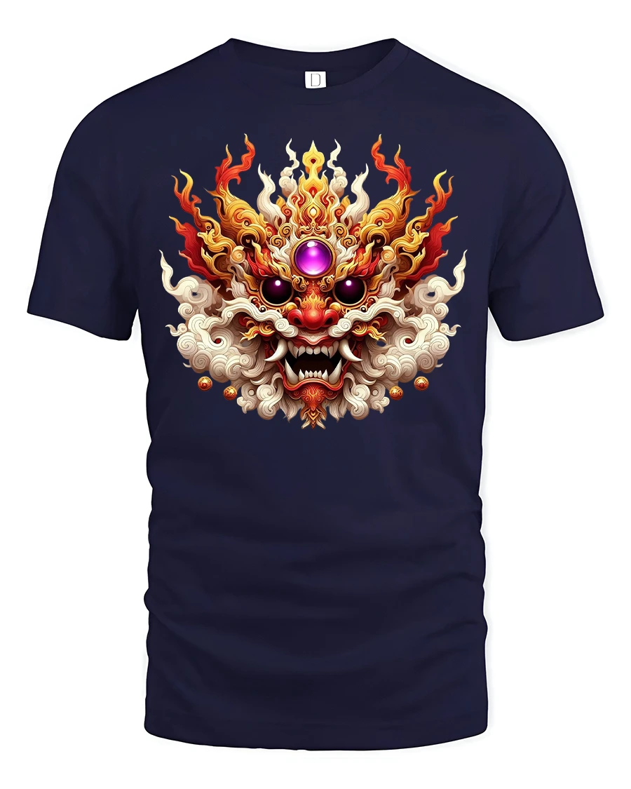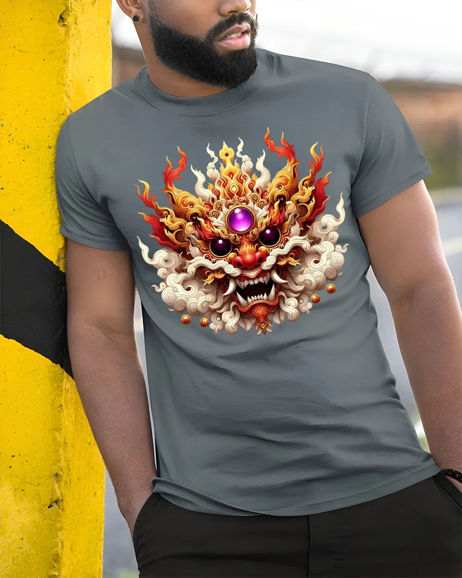 Fiery Dragon Mask Mythical Beast Power Graphic T-Shirt unleashes the spirit of fire, strength, and ancient power. The design features a detailed dragon mask engulfed in flames, with vivid colors and intricate textures that symbolize energy, protection, and courage. Perfect for those who love mythology, fantasy art, or bold statement fashion that stands out.