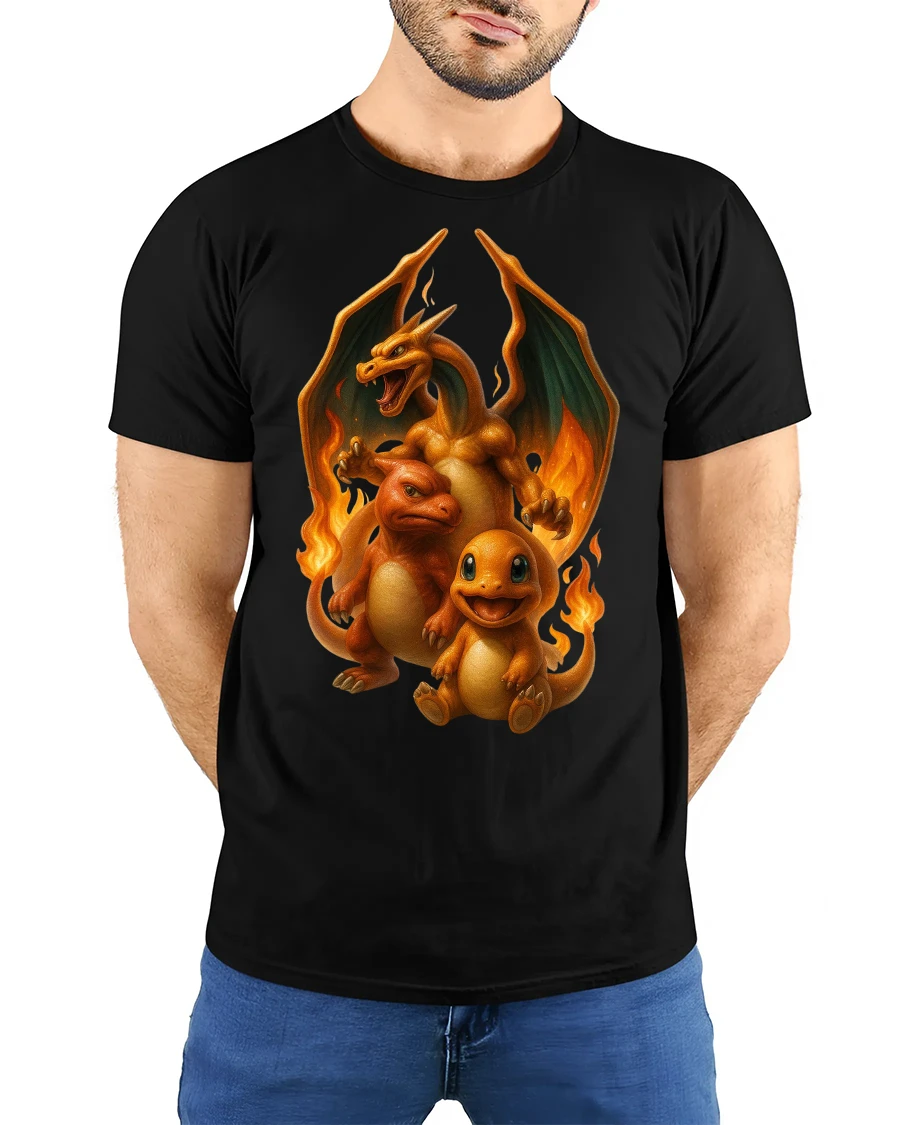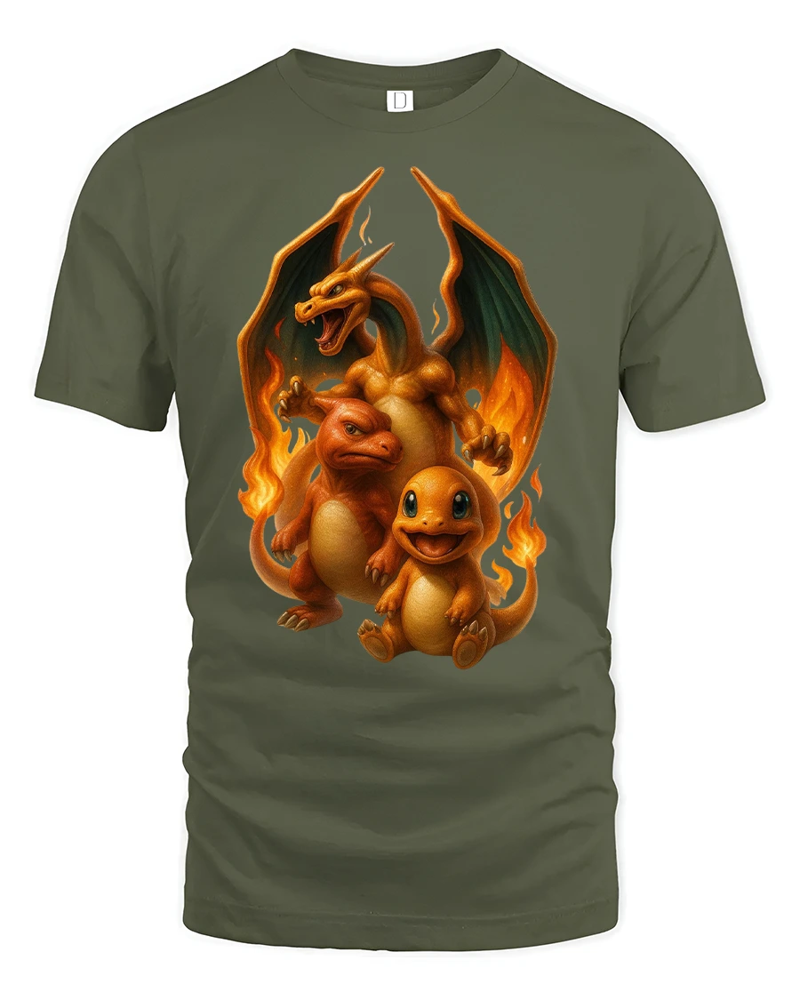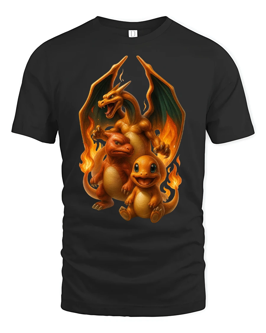 Featuring a trio of fiery creatures in different stages of evolution, this design bursts with energy, heat, and detail.