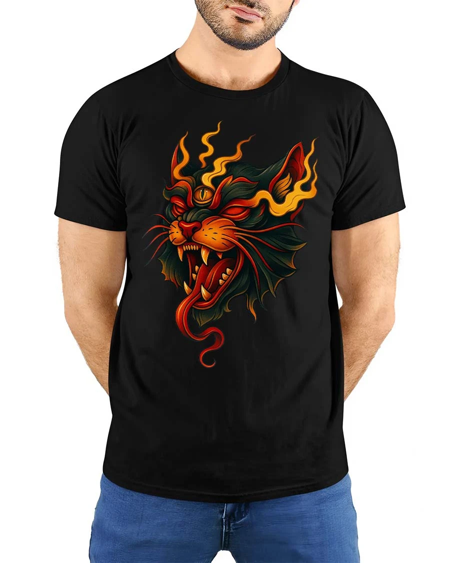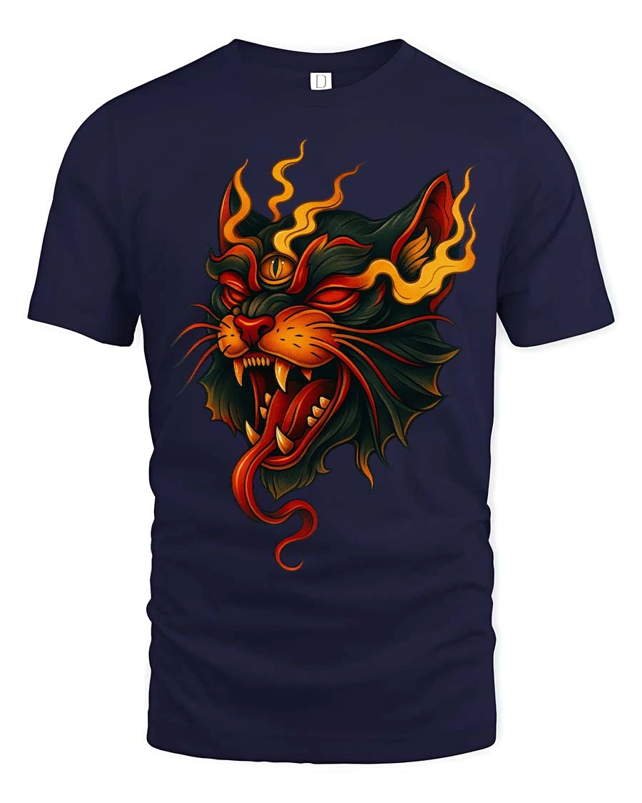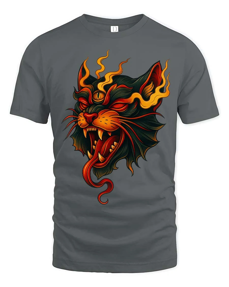Flaming Demon Cat T Shirt Fierce Gothic Streetwear Art delivers a striking blend of dark fantasy and bold attitude in one unforgettable design.