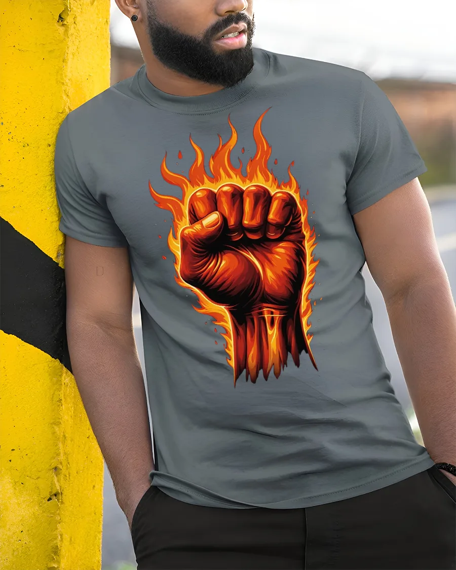 Made with high-quality fabric for comfort and durability, this fire fist graphic tee is perfect for casual wear, gym sessions, or making a bold fashion statement. The vivid fiery details combined with the powerful fist design make it a must-have for anyone who loves impactful graphic tees.