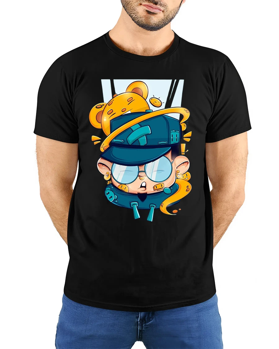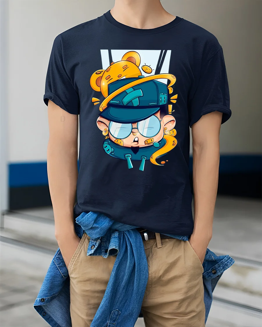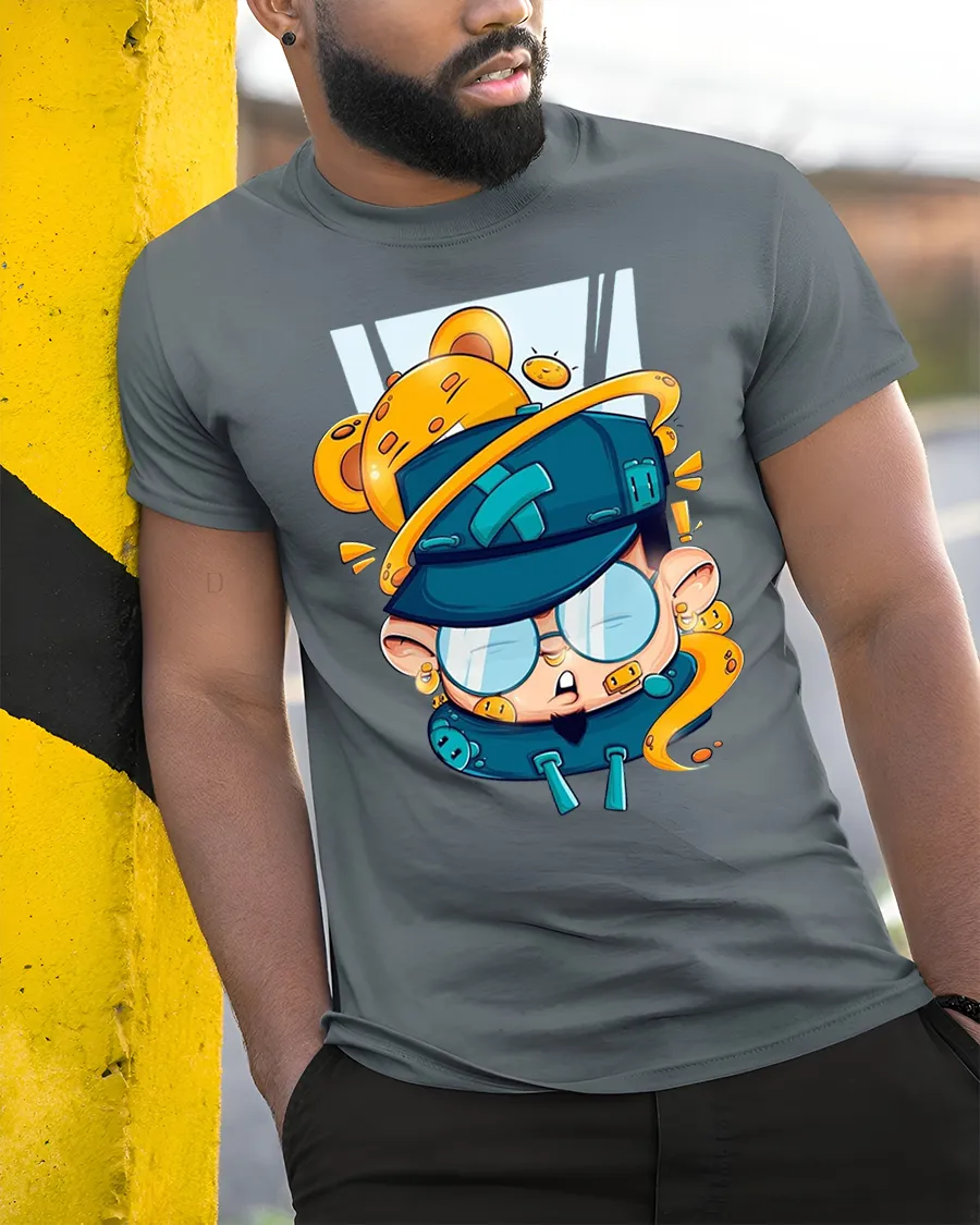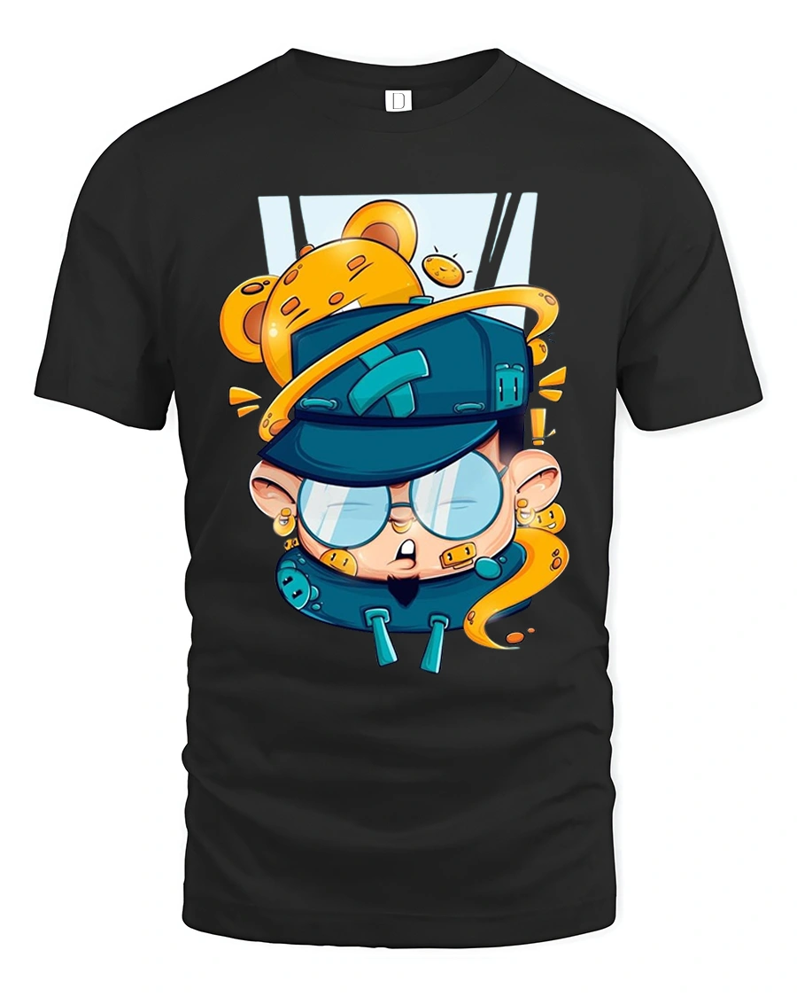 The illustration blends humor creativity and imagination making the tee feel fun energetic and full of character.