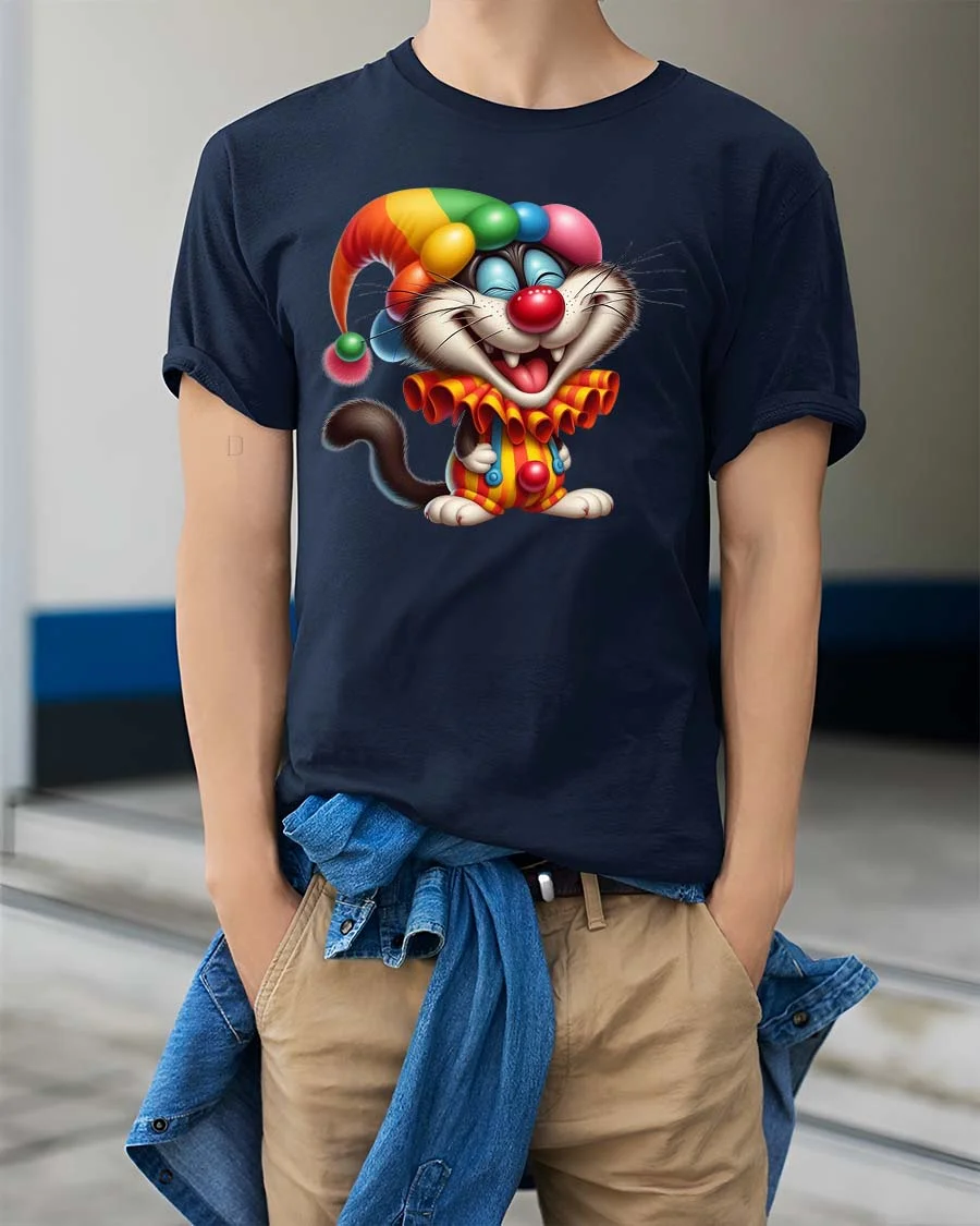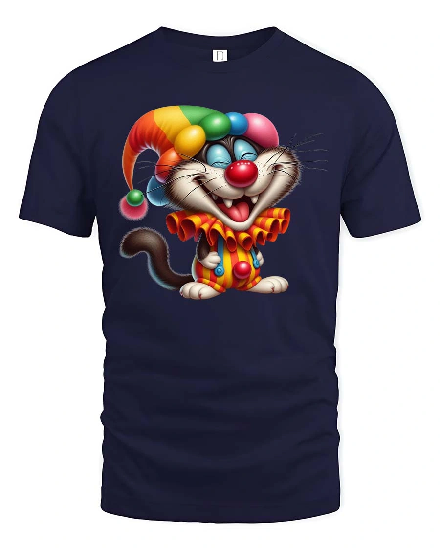 This charming clown cat design captures the spirit of circus fun and cartoon humor, making it perfect for anyone who enjoys cute animals and playful artwork. The smiling kitty and whimsical costume create a joyful visual that easily becomes a conversation starter and adds a cheerful touch to everyday style. The lively illustration feels energetic, friendly, and full of personality.
