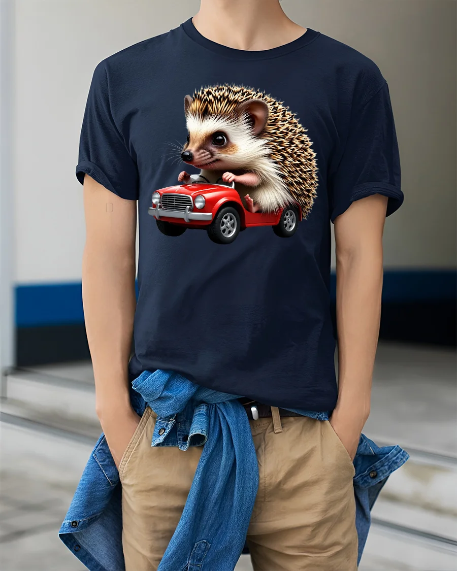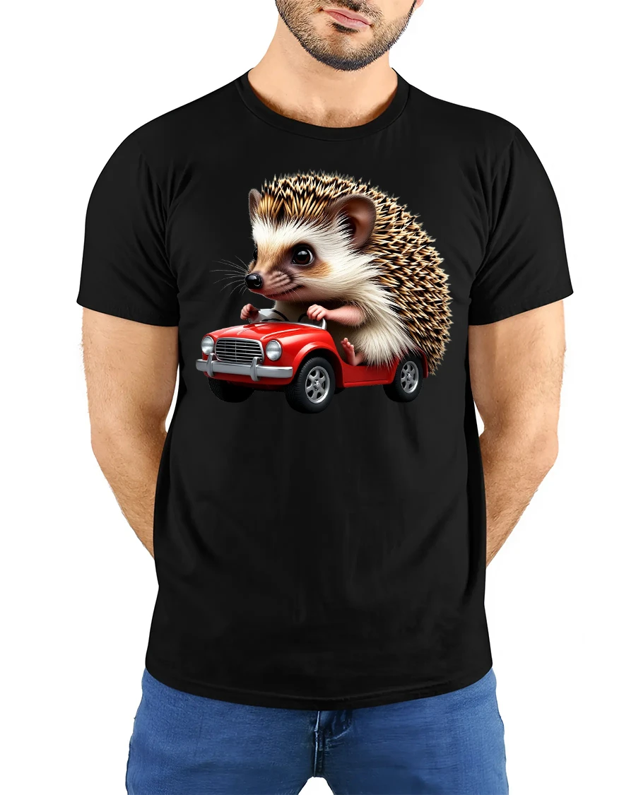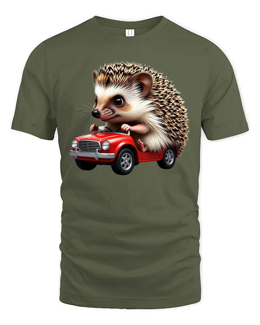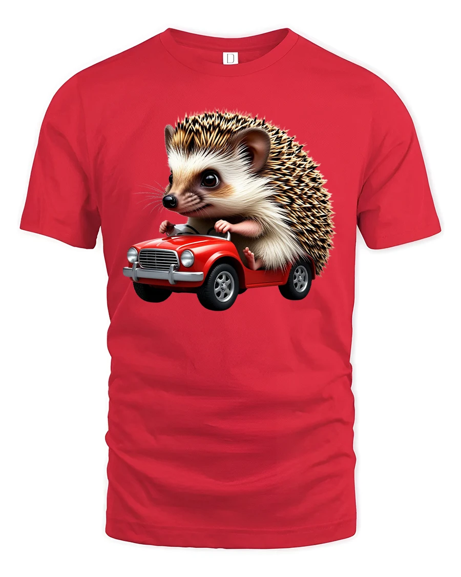 Funny Hedgehog Driving Red Car Cute Animal T-Shirt brings humor, charm, and creativity to your casual style.