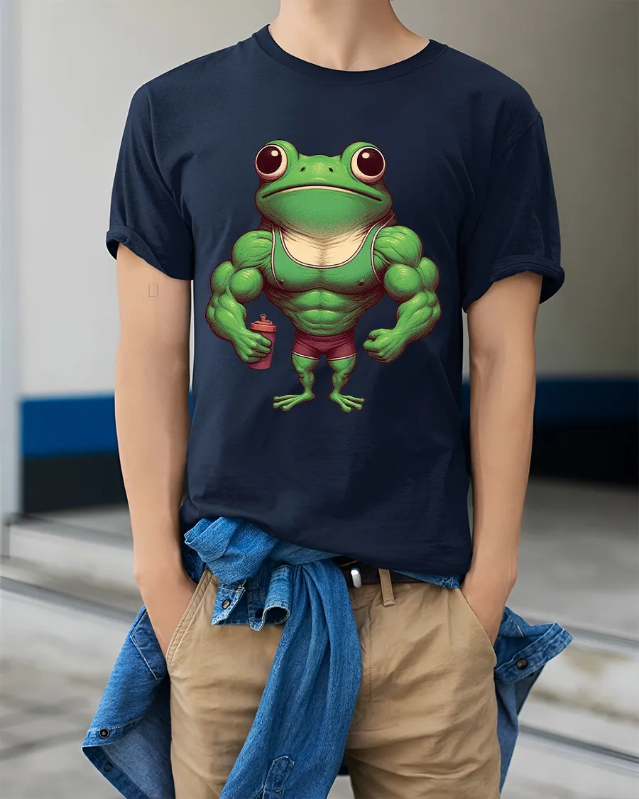 Funny Muscle Frog Tshirt With Bodybuilder Cartoon Design brings humor strength and confidence together in a bold eye catching illustration.