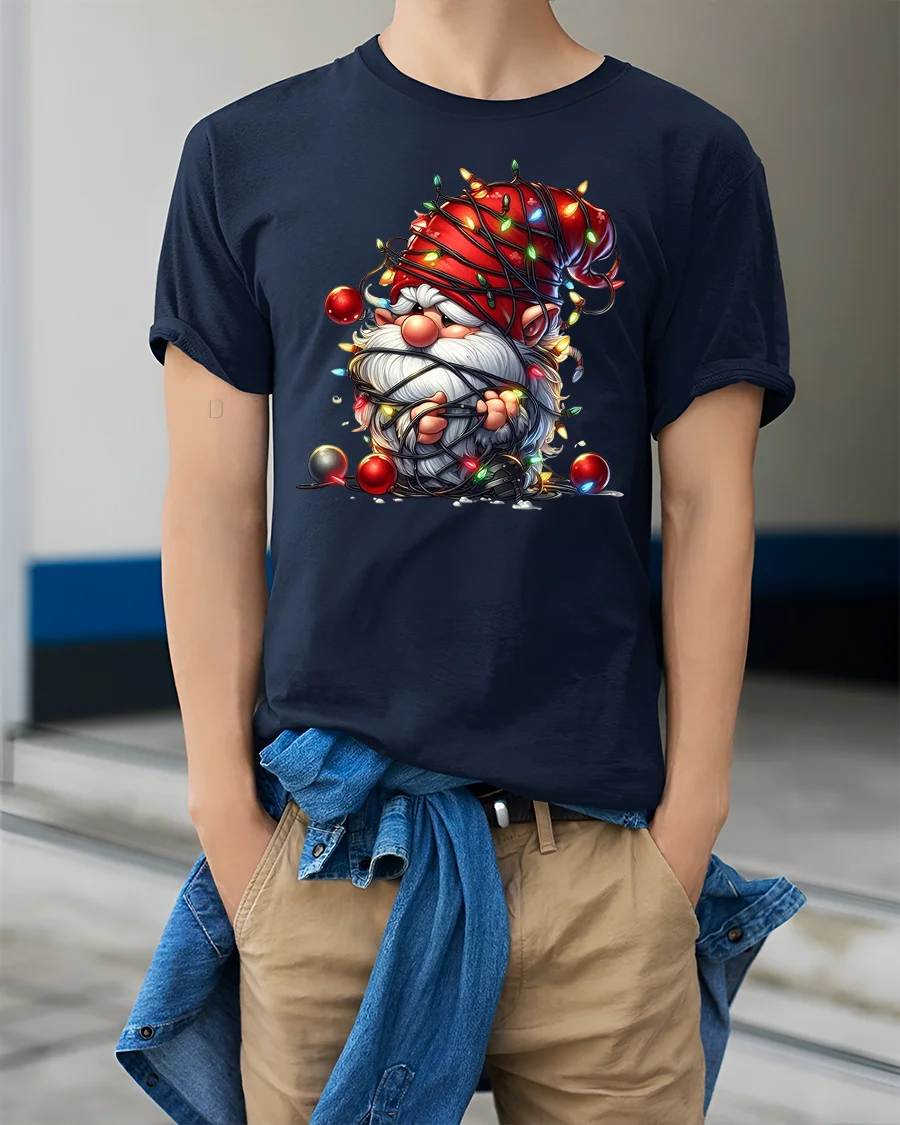 Funny Santa Gnome Tangled In Christmas Lights Graphic Tee also makes a fantastic seasonal gift idea.