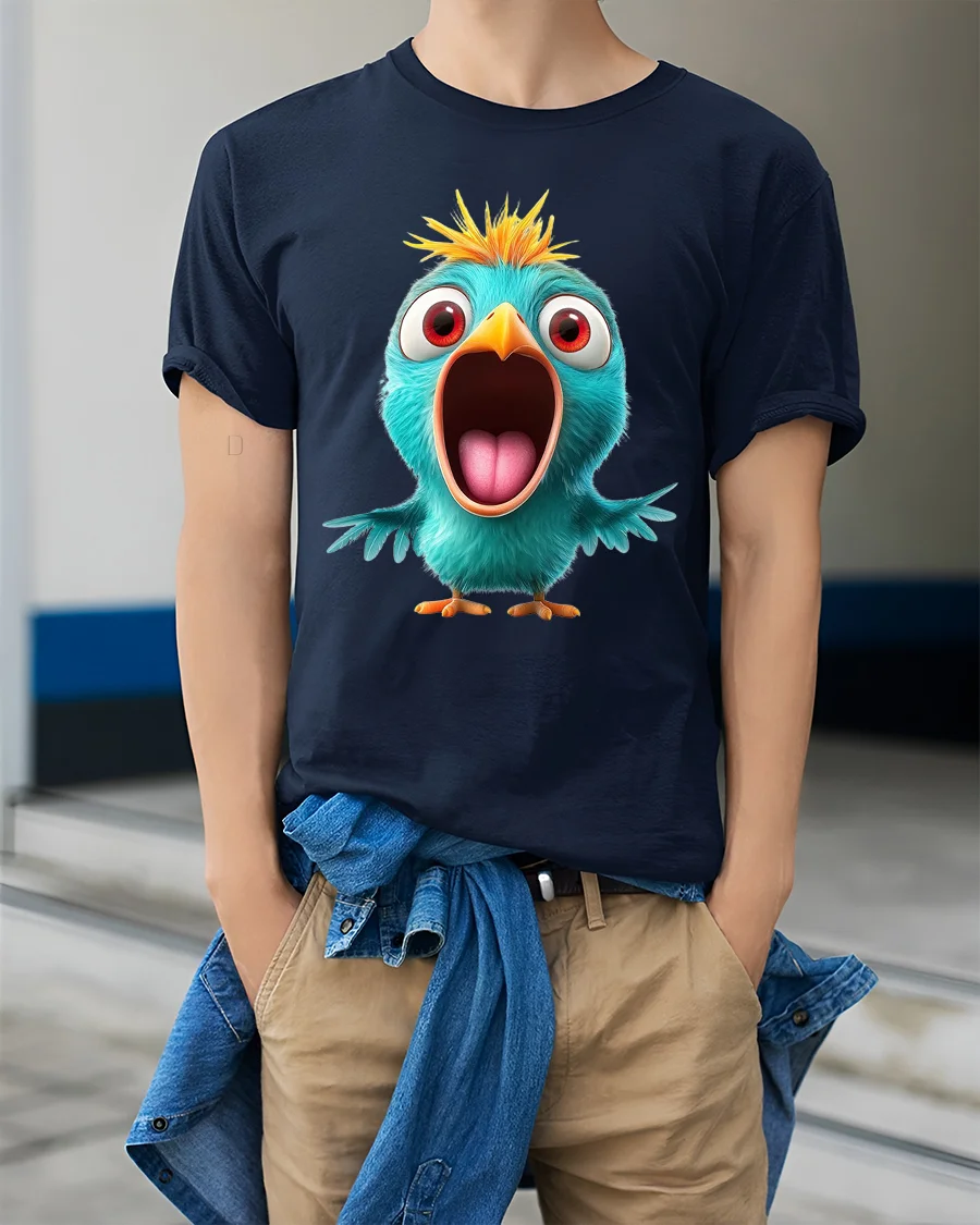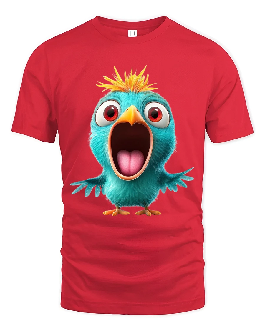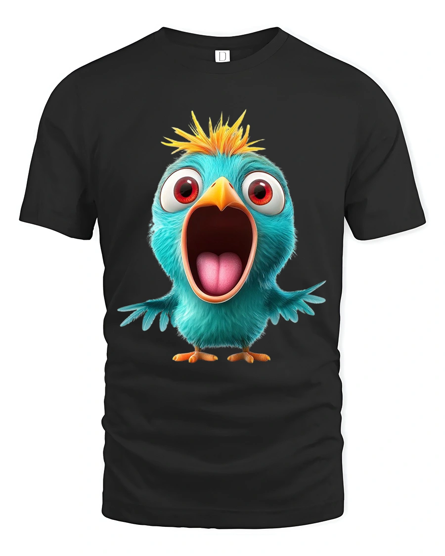The Funny Screaming Cartoon Bird Graphic Tee Shirt With Crazy Expression adds personality laughter and energy to any graphic tee collection.