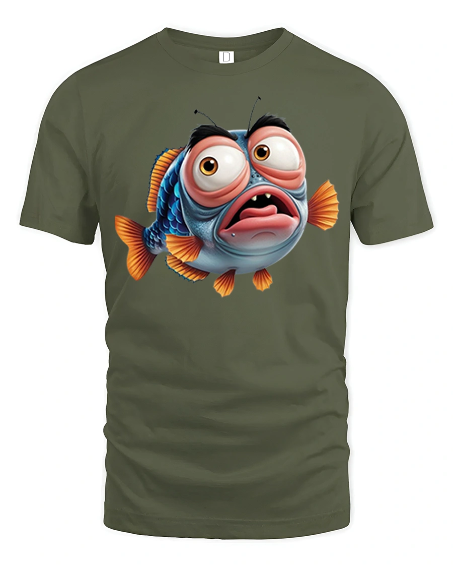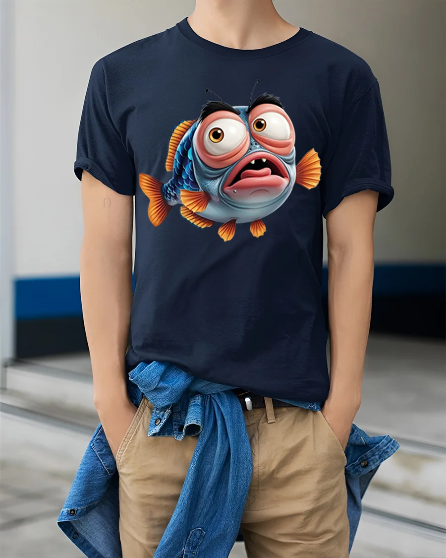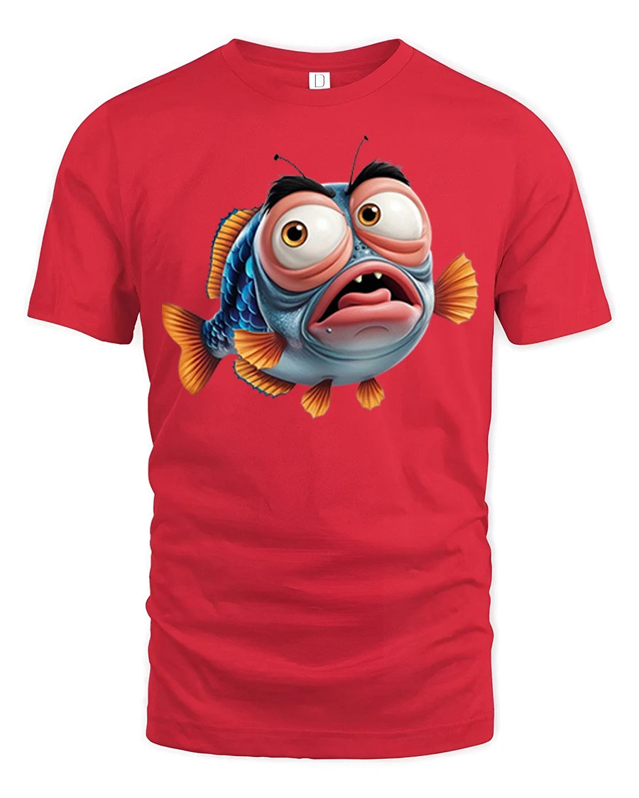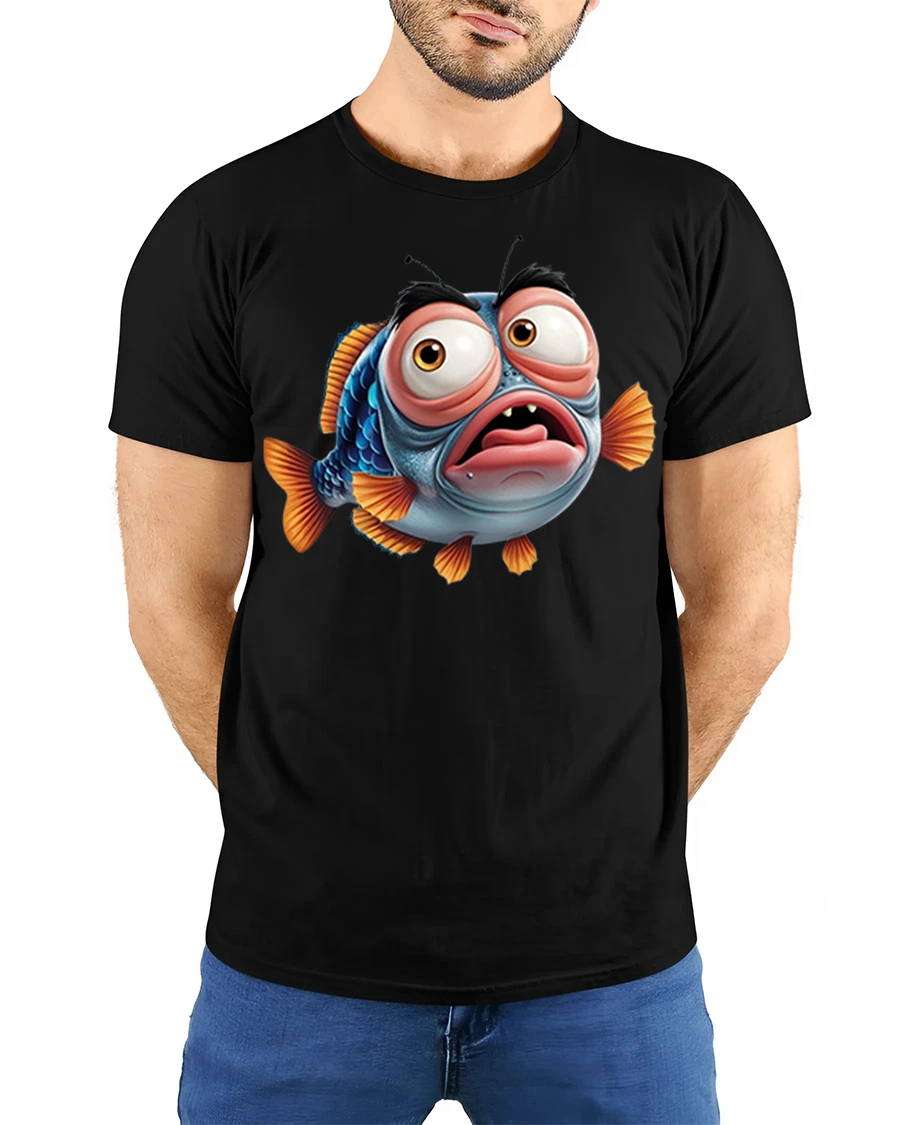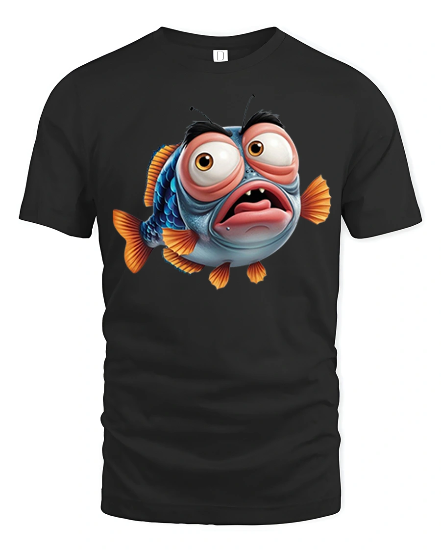Funny Shocked Fish Cartoon Graphic Tee With Soft Cotton Feel brings instant laughter and personality with a bold and expressive design.