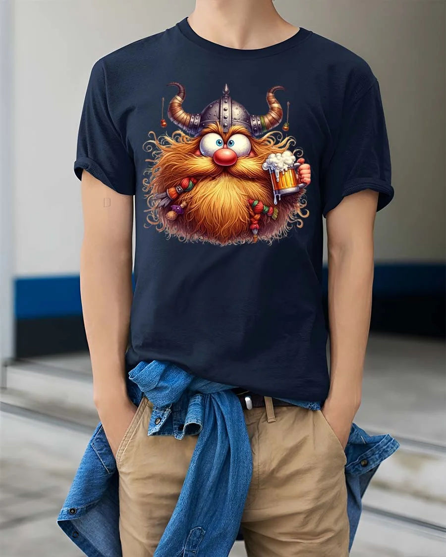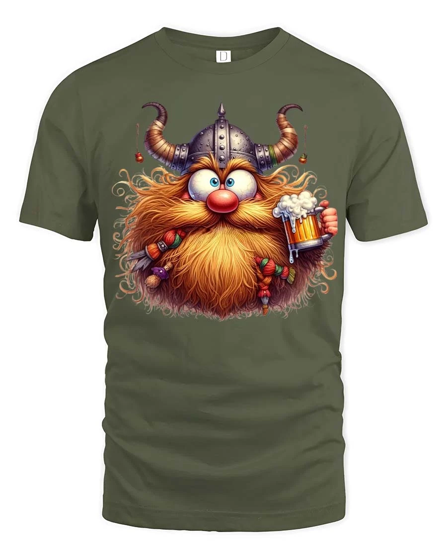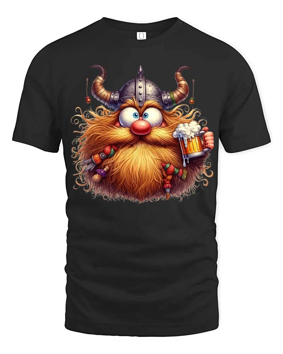Funny Viking Beard Beer Graphic T Shirt Cartoon Norse Style combines playful humor with bold nordic inspired character design.