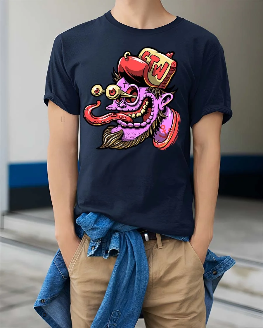 Funny Weird Cartoon Face Graphic Tshirt Colorful Crazy Art features a bold expressive character that instantly grabs attention with its playful exaggerated design.