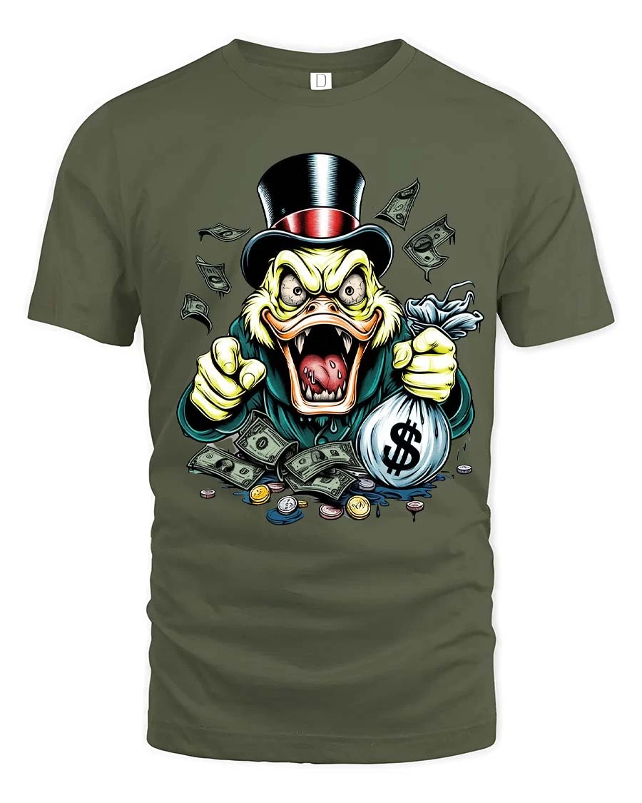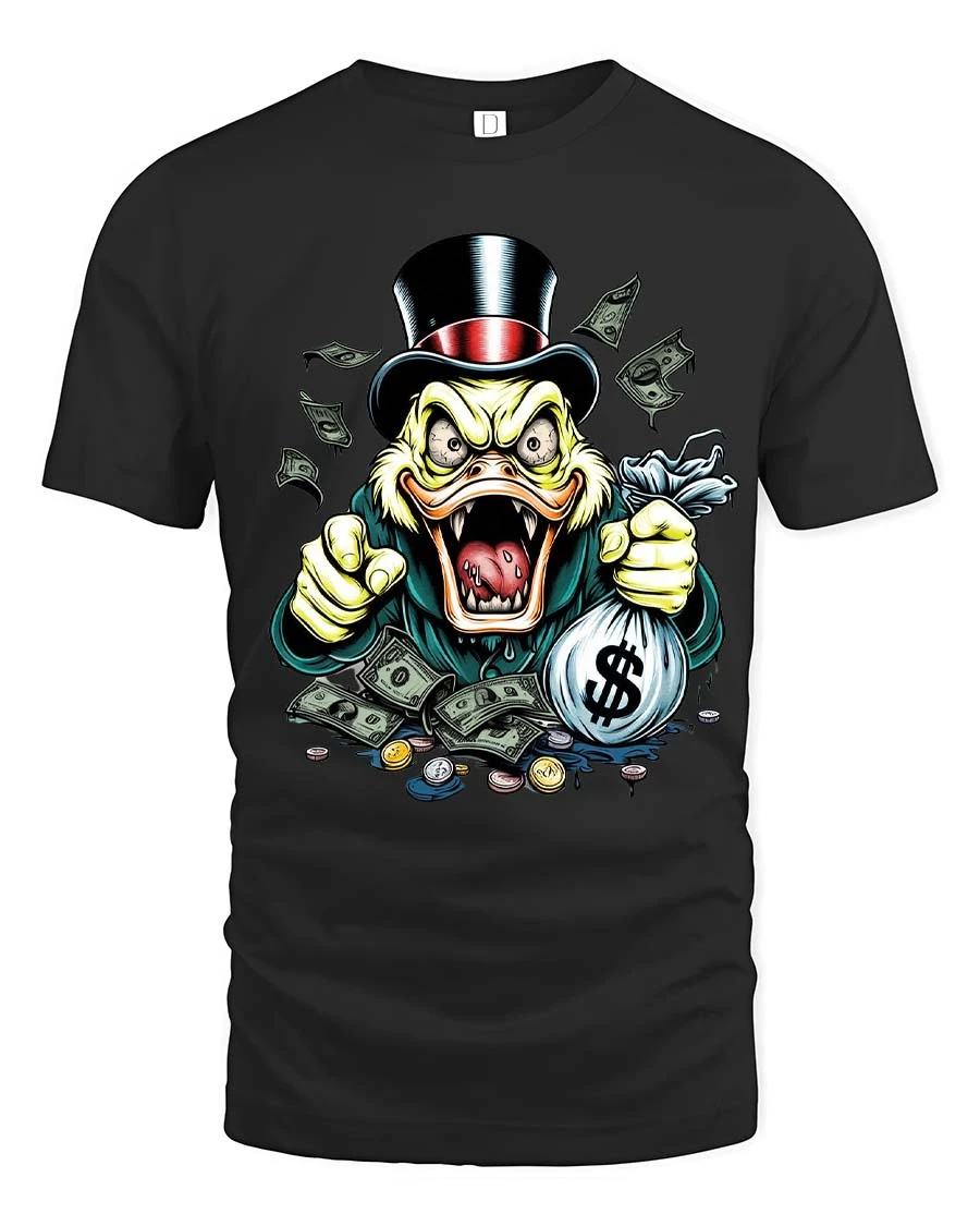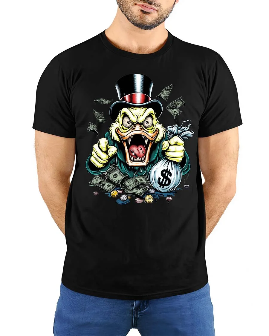 Greedy Money Duck Graphic T Shirt Funny Rich Style Design brings humor and bold attitude into one eye catching look.