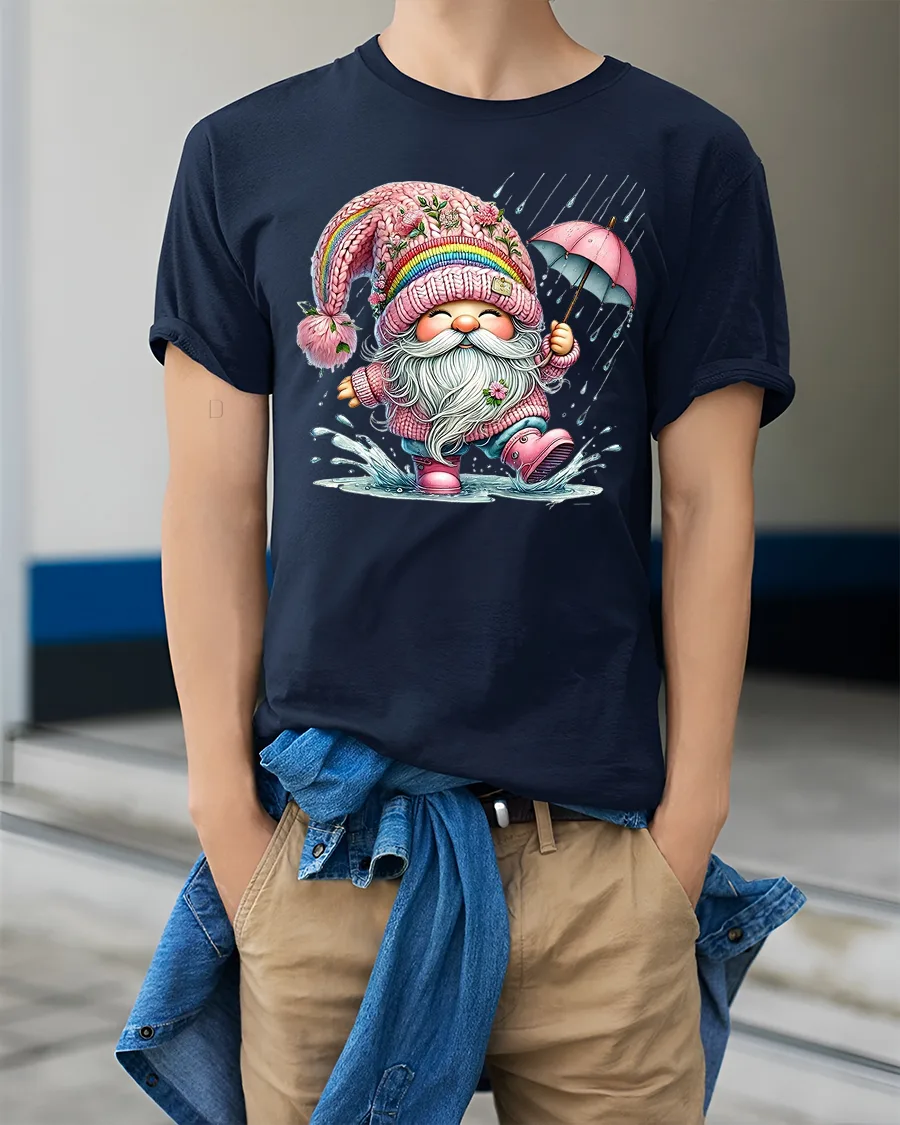 Happy Rainy Day Gnome Umbrella Cartoon Graphic Tee brings cheerful energy and playful charm to everyday outfits.