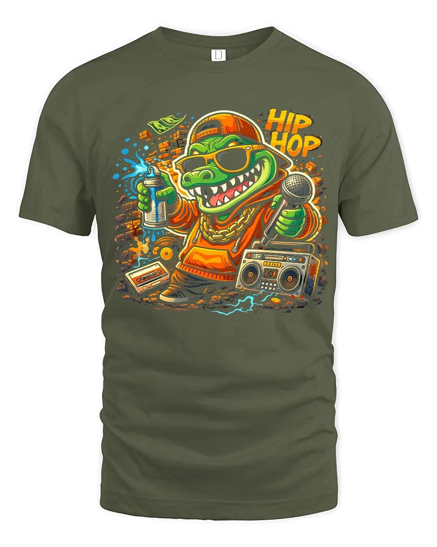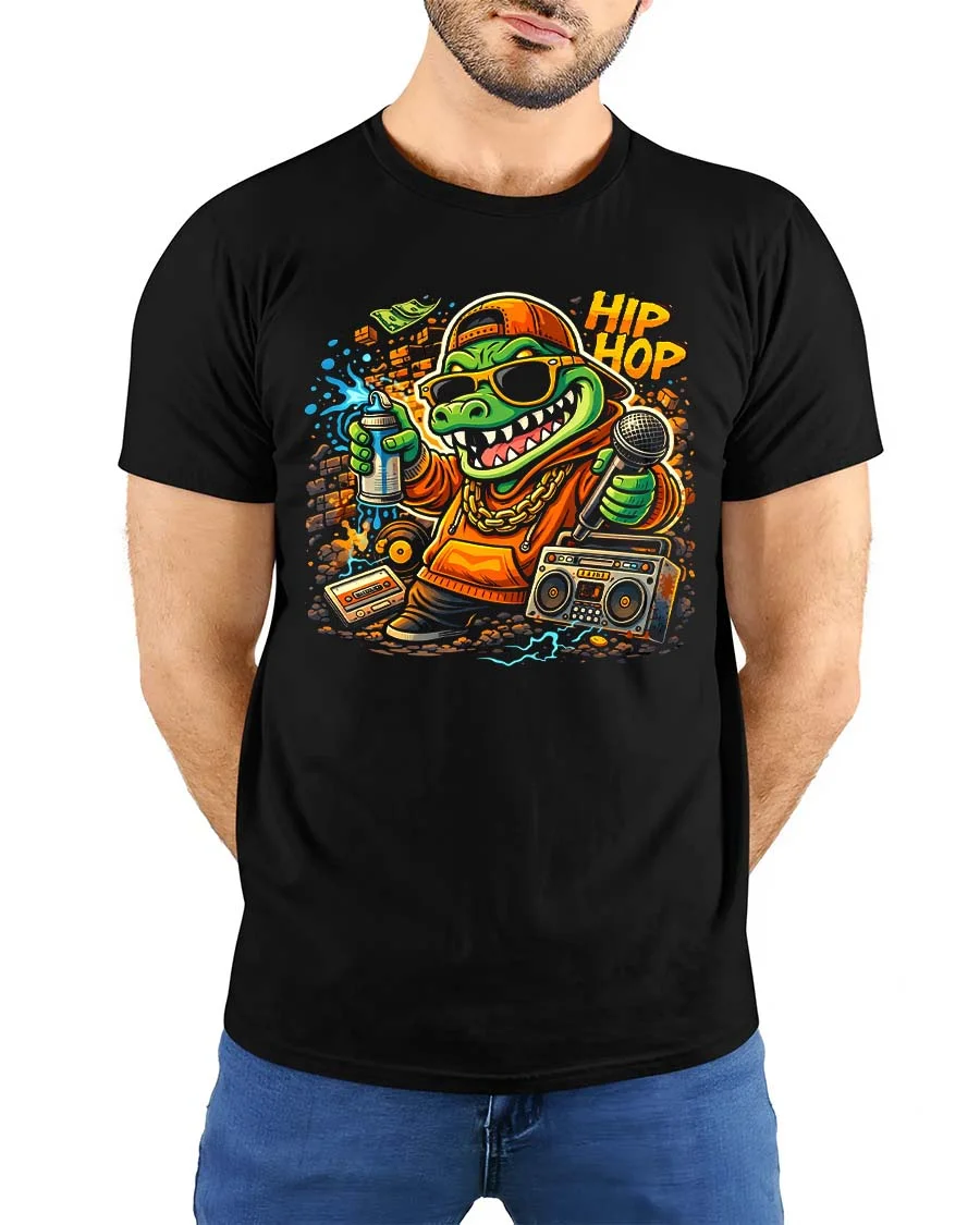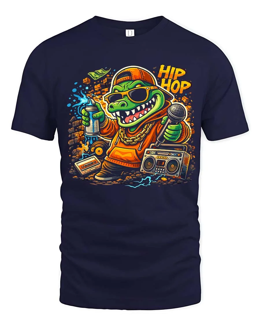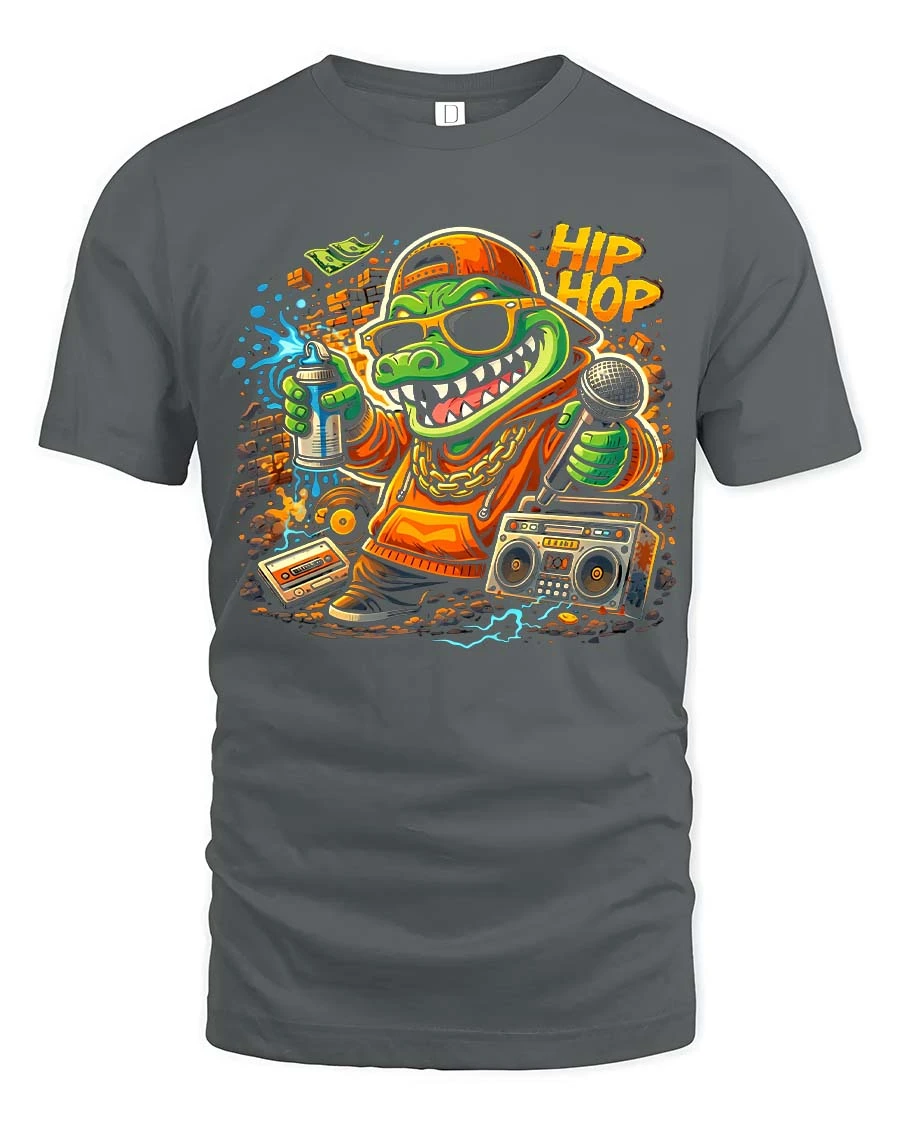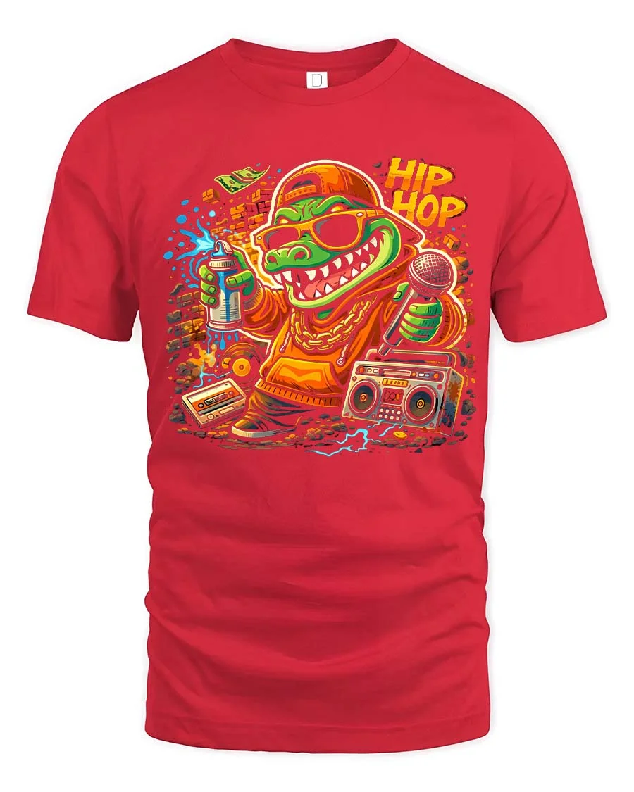 Hip Hop Crocodile T Shirt Graffiti Rap Streetwear Art blends urban music culture with bold street style in a vibrant eye catching design.